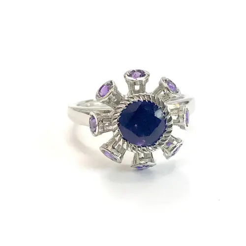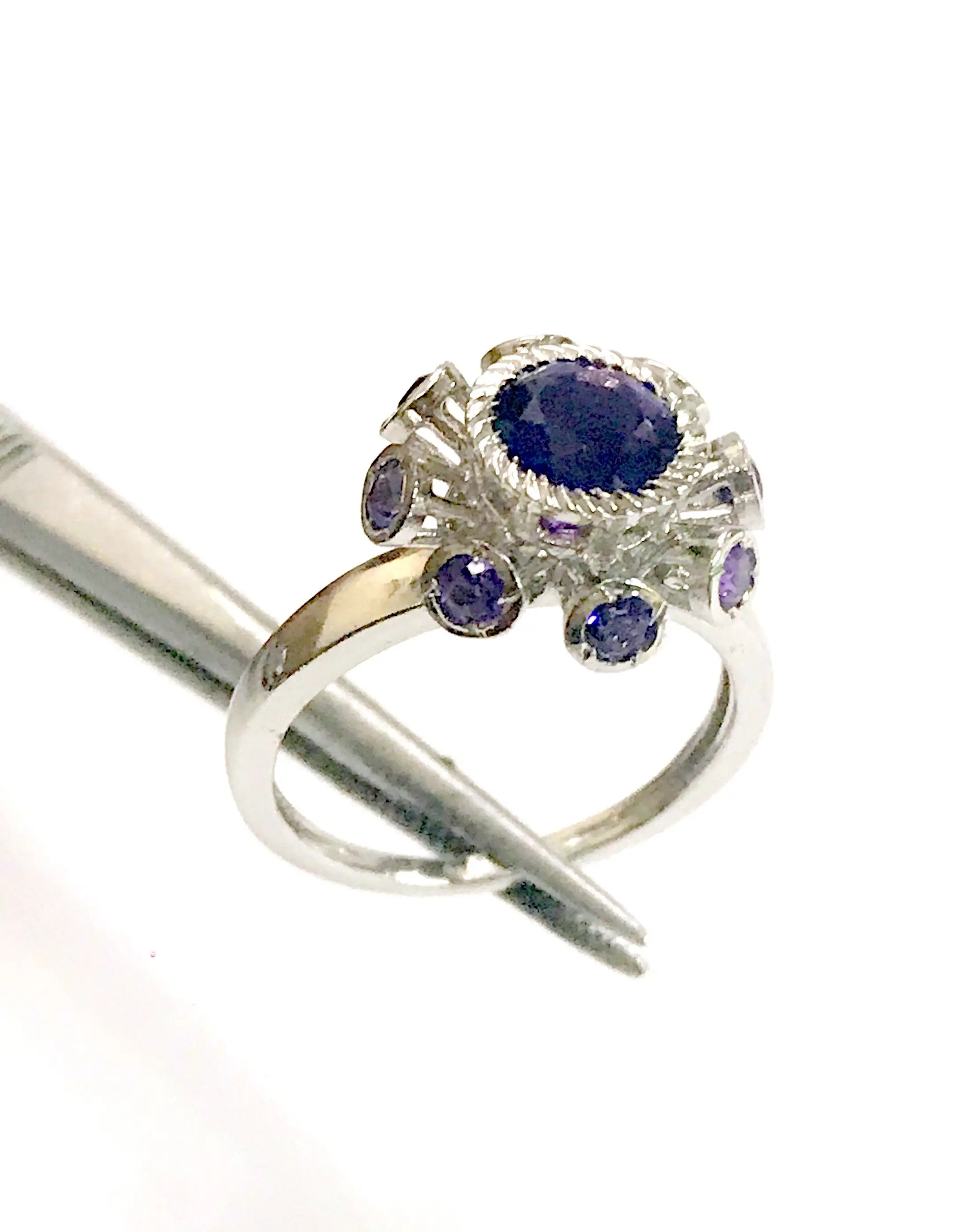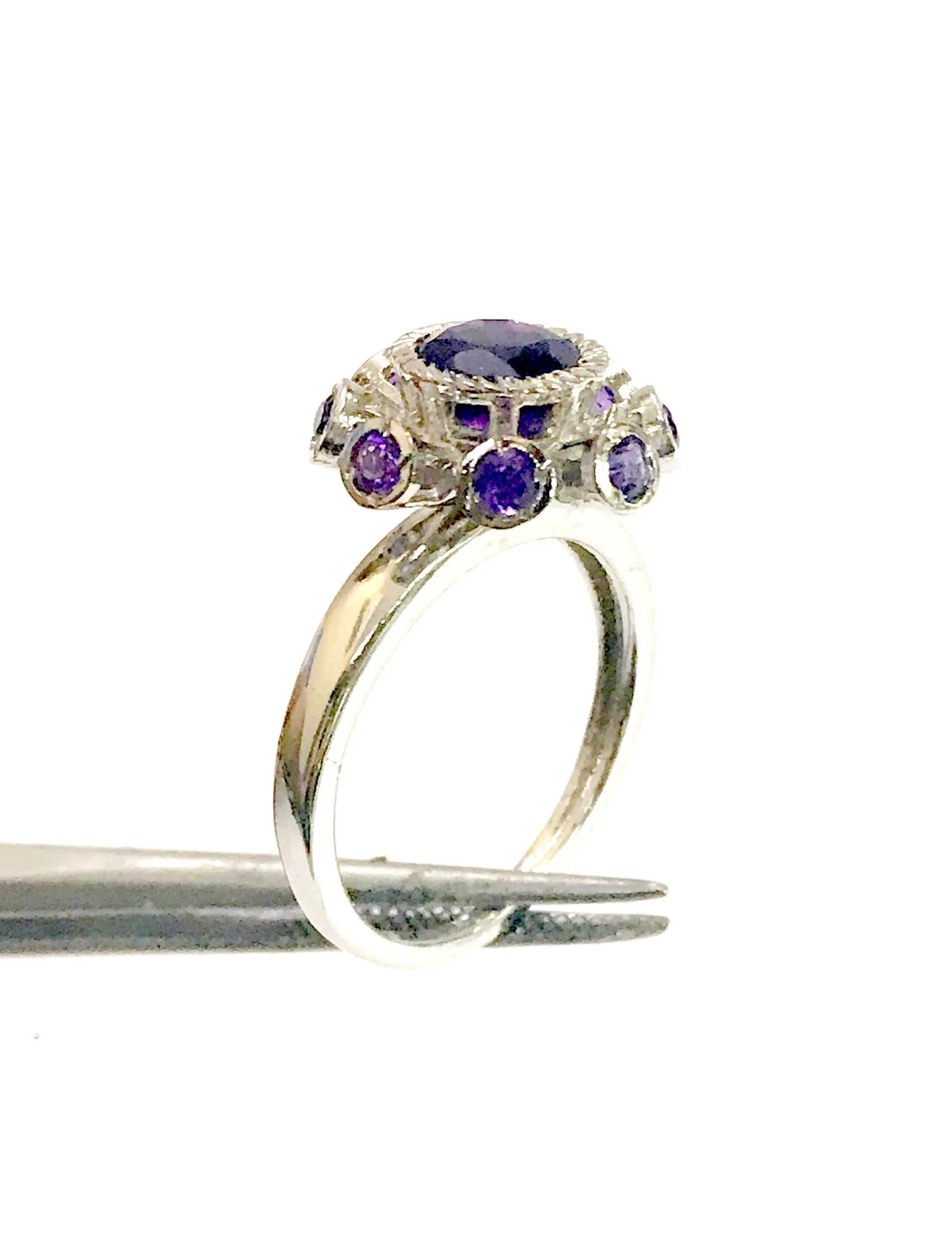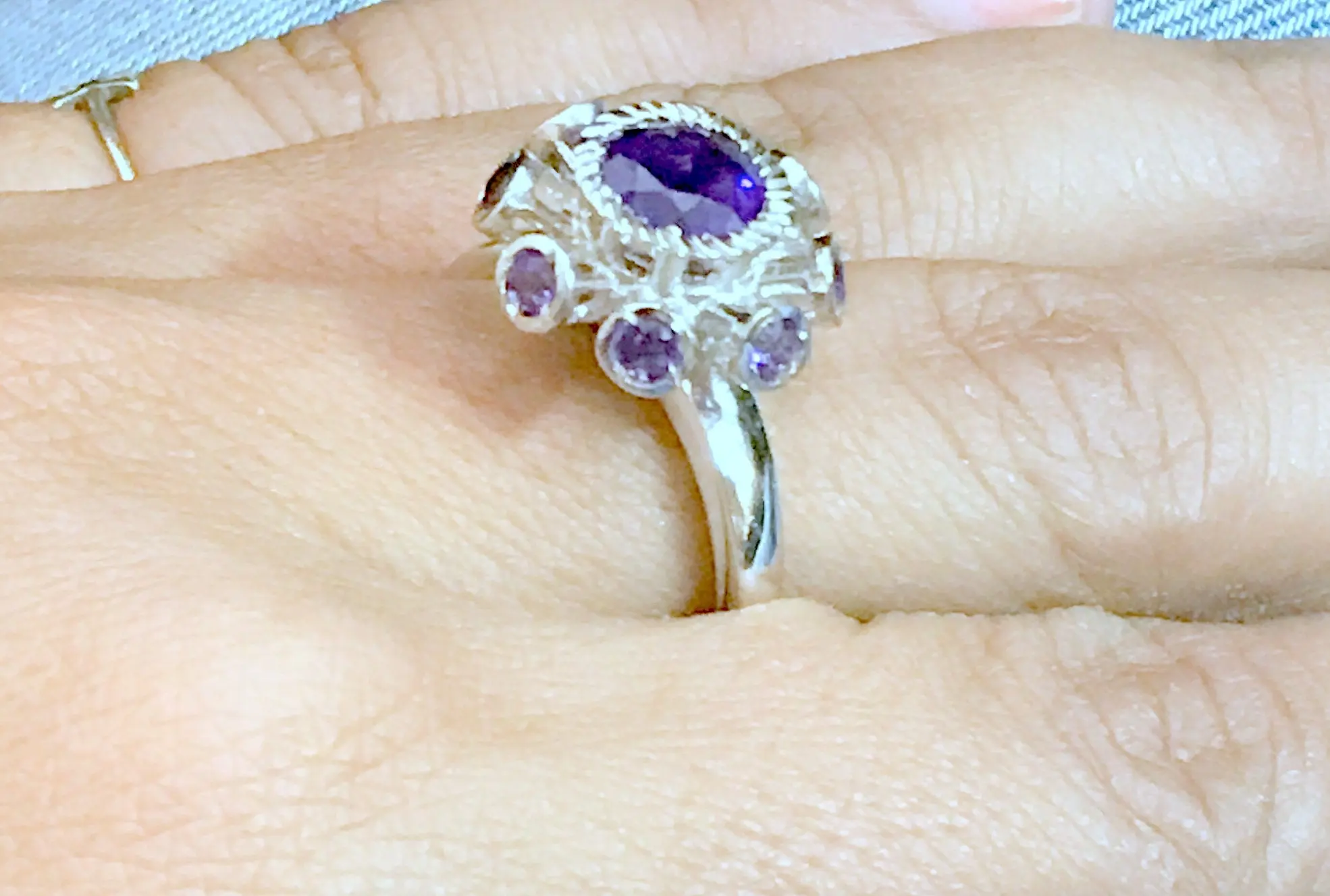 NATURAL AMETHYST FLOWER Ring ,February birthstone , purple amethyst , Flower Design ,Valentine's day Gift,