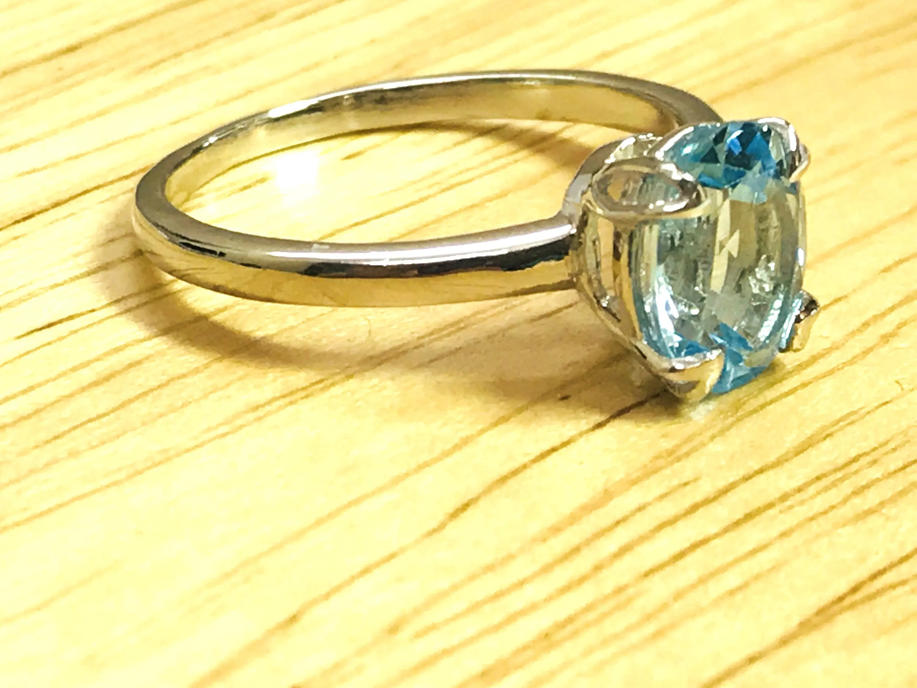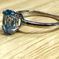 Super fine quality 925 silver ring studded with blue topaz and diamonds on prong...........with full light and energy.......in life !!!!!!!