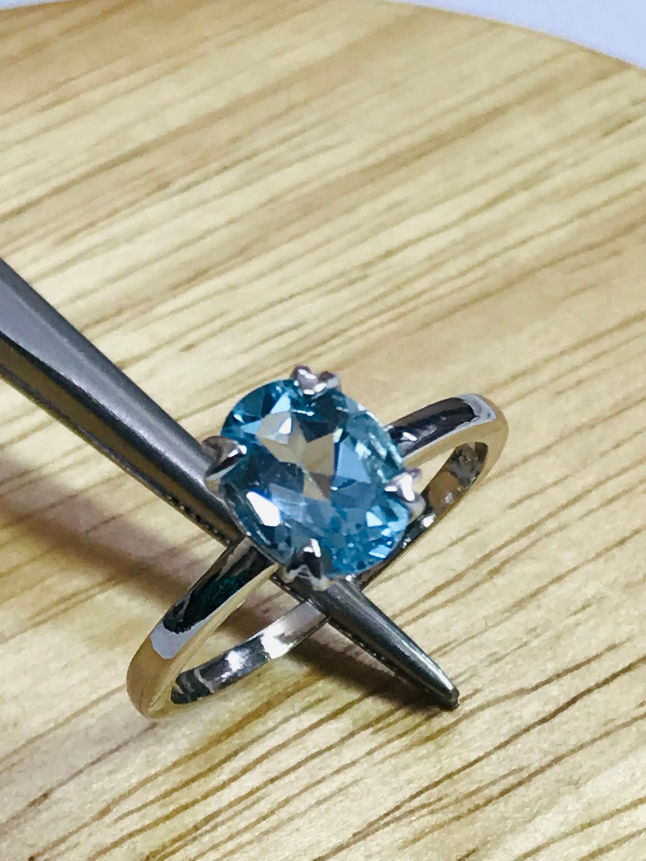 BLUE TOPAZ SILVER Ring ,Sky Color , Oval Shape Blue Topaz ,December Birthstone , Promise Ring , Hand Forged Ring , Valentine Gift...