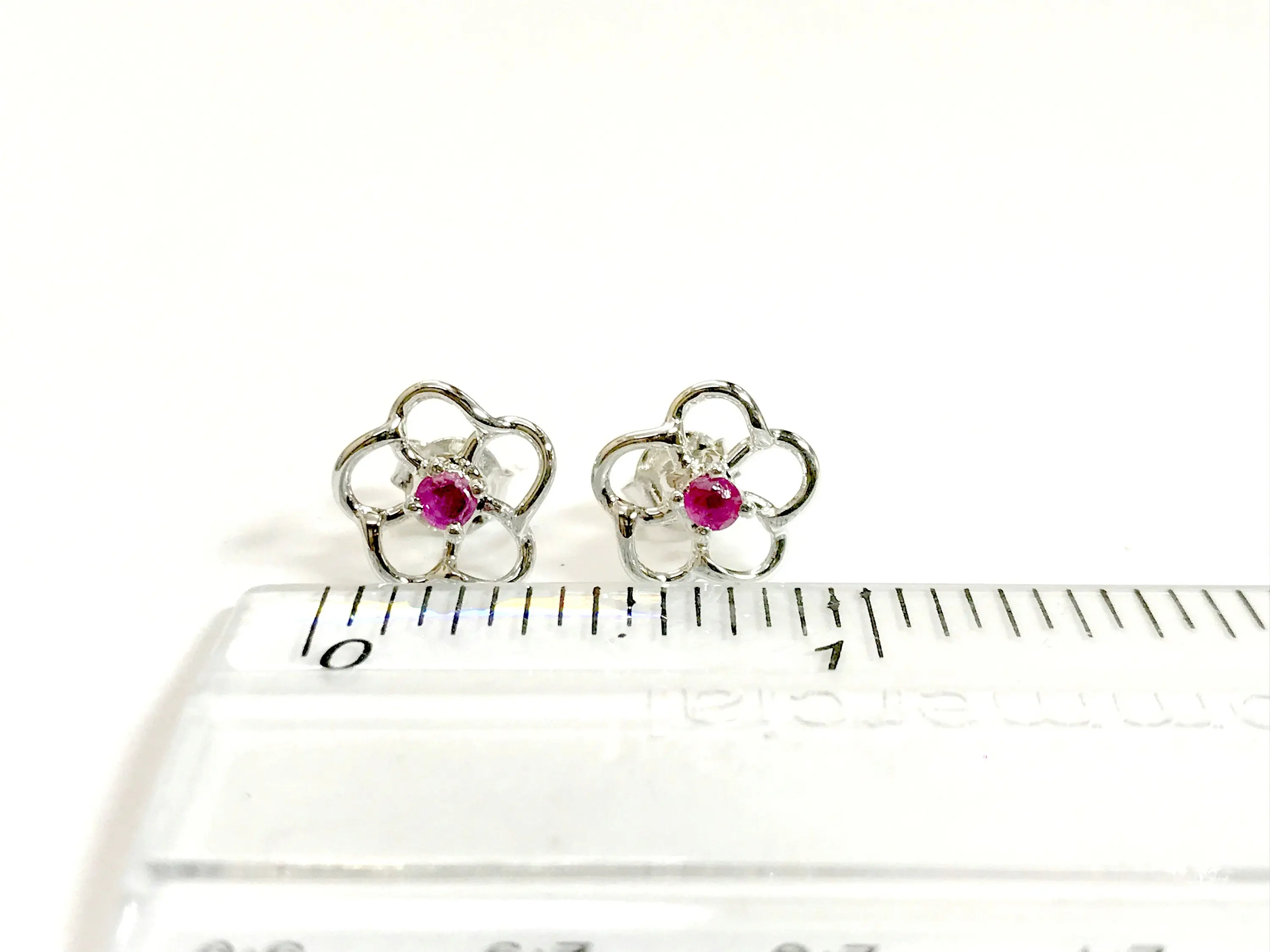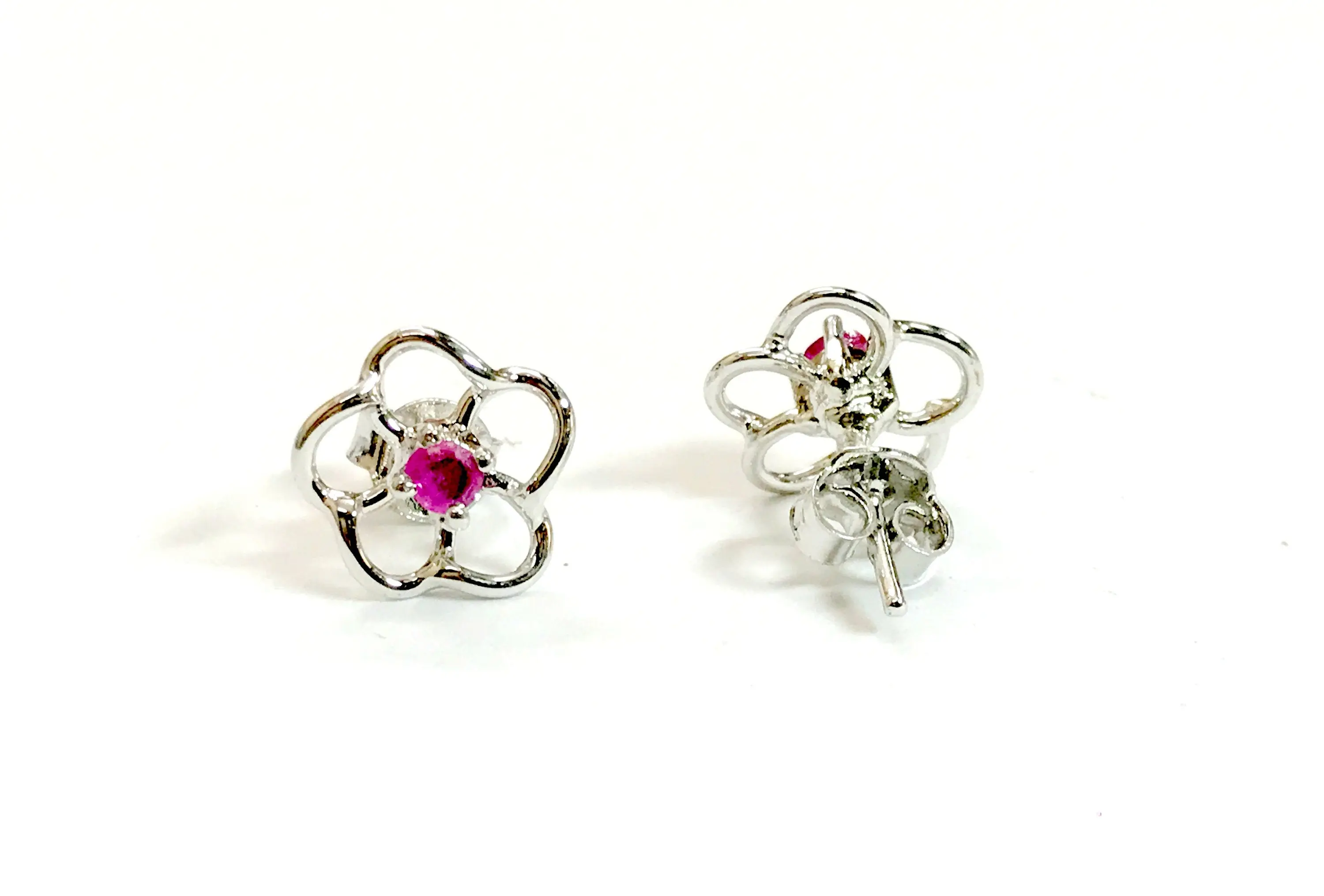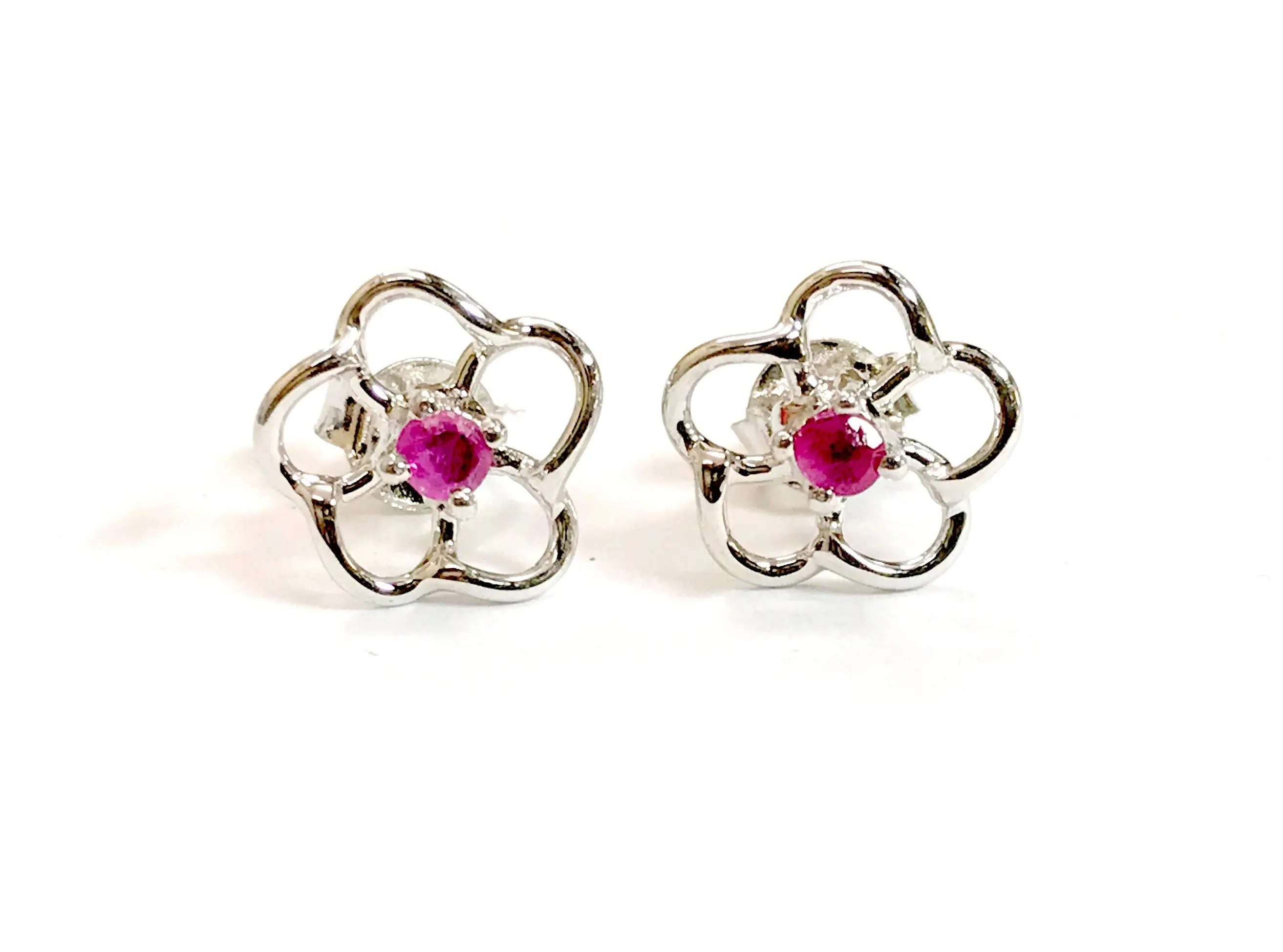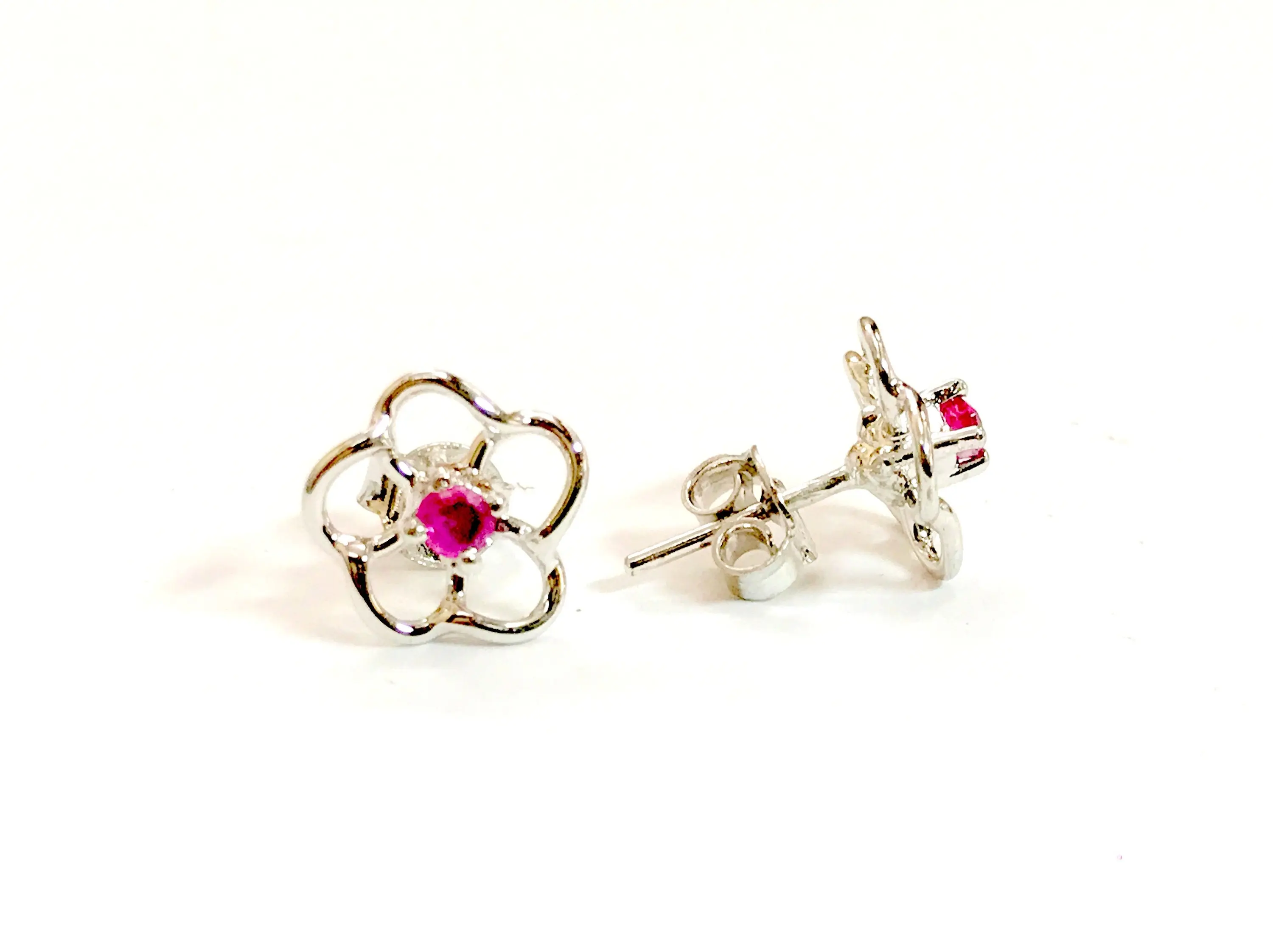 A 92.5 sterling silver super fine quality of precious stud earrings with ruby ..... rhodium plated........super fine quality........handmade jewelry.........high finishing work......