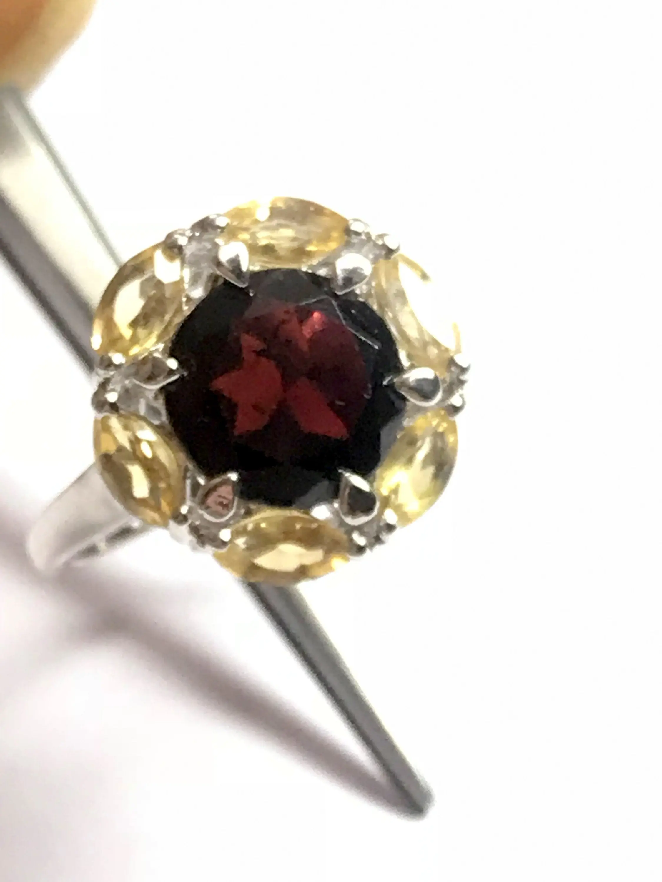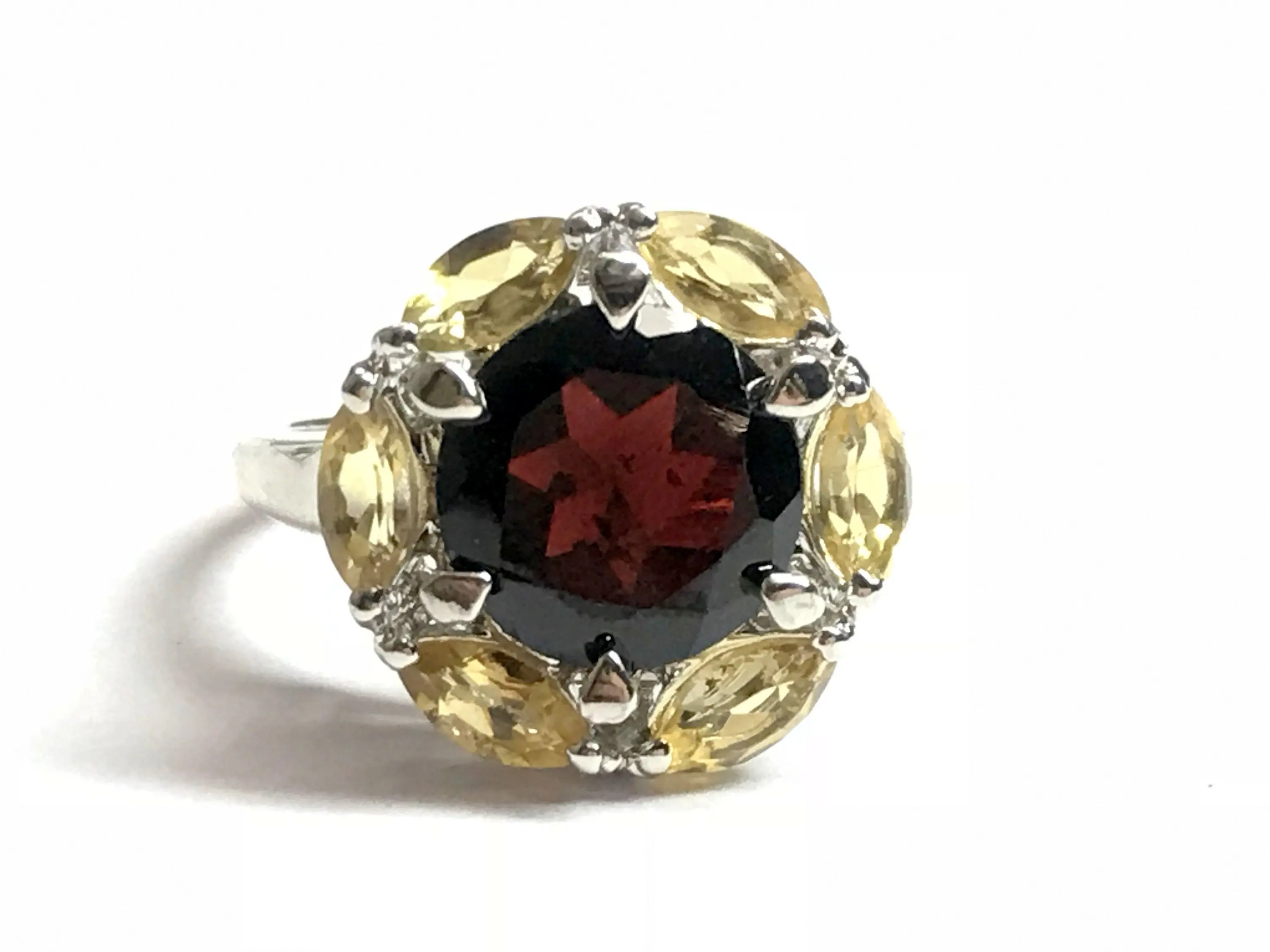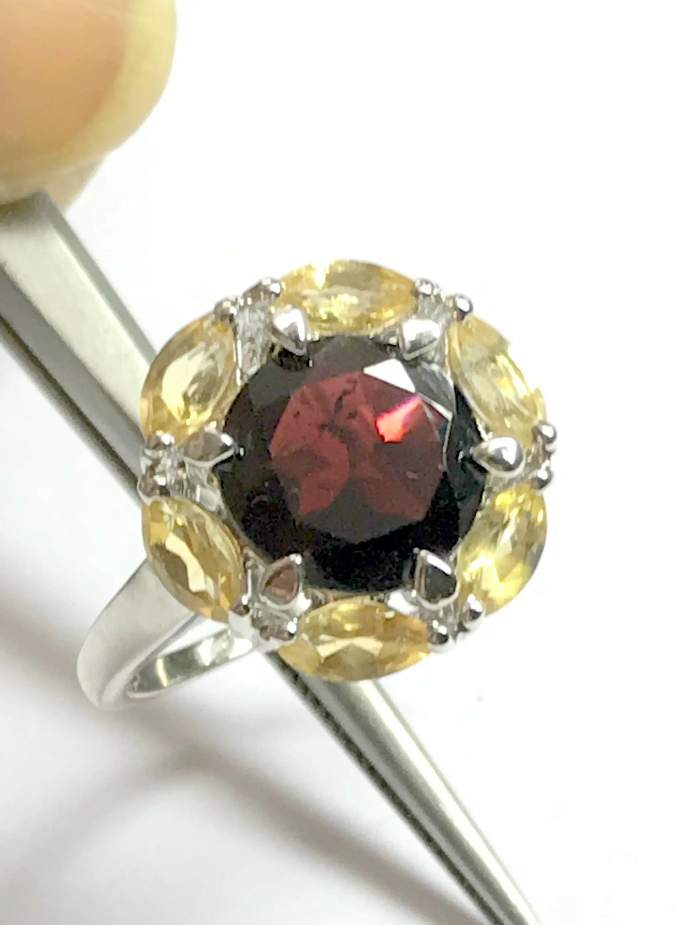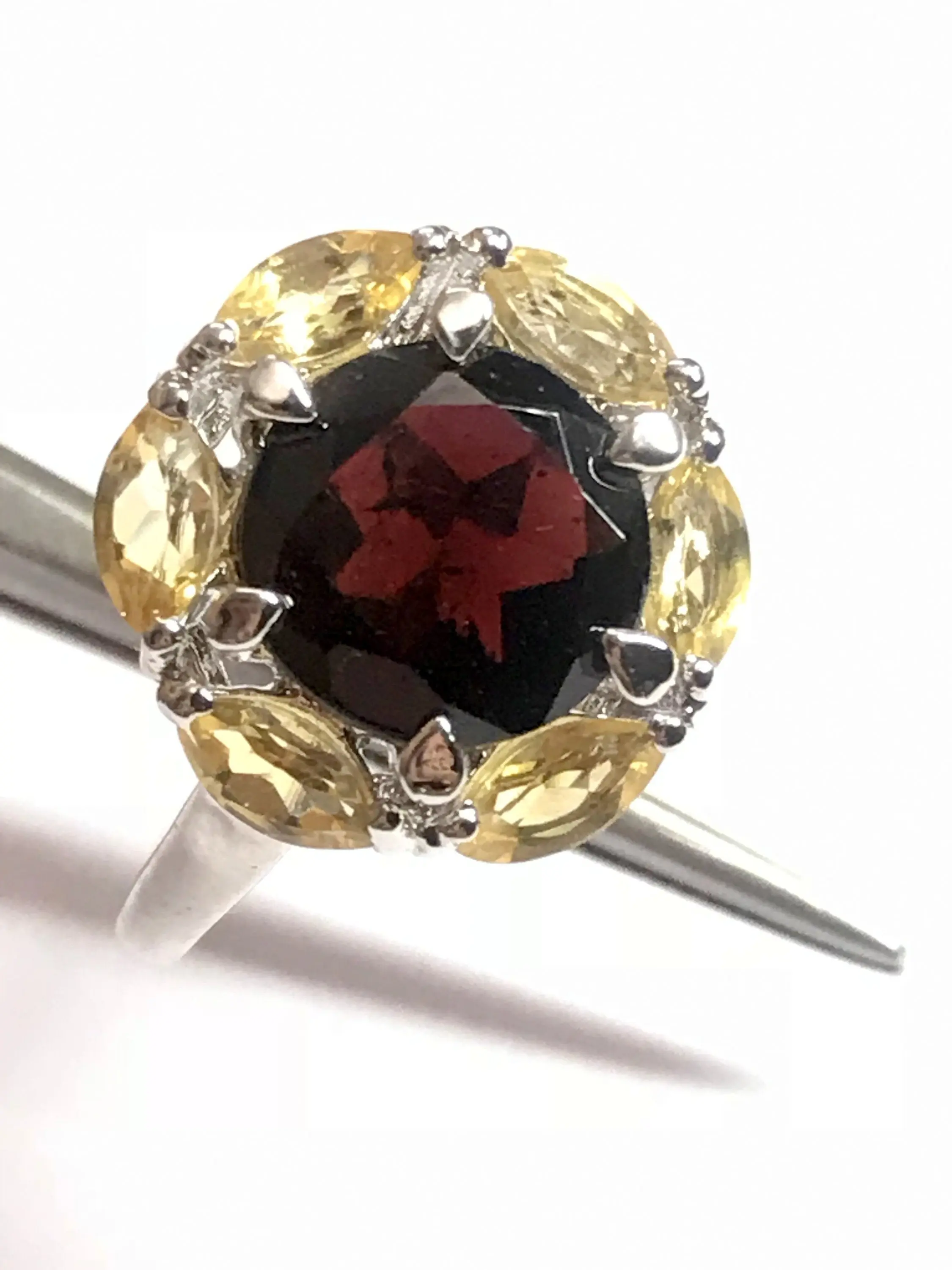GARNET CITRINE RING ,January-November birthstone, Red garnet round,Genuine Garnet,gift for her,Valentine's day Gift