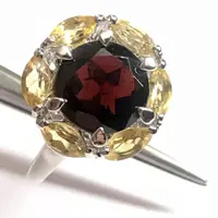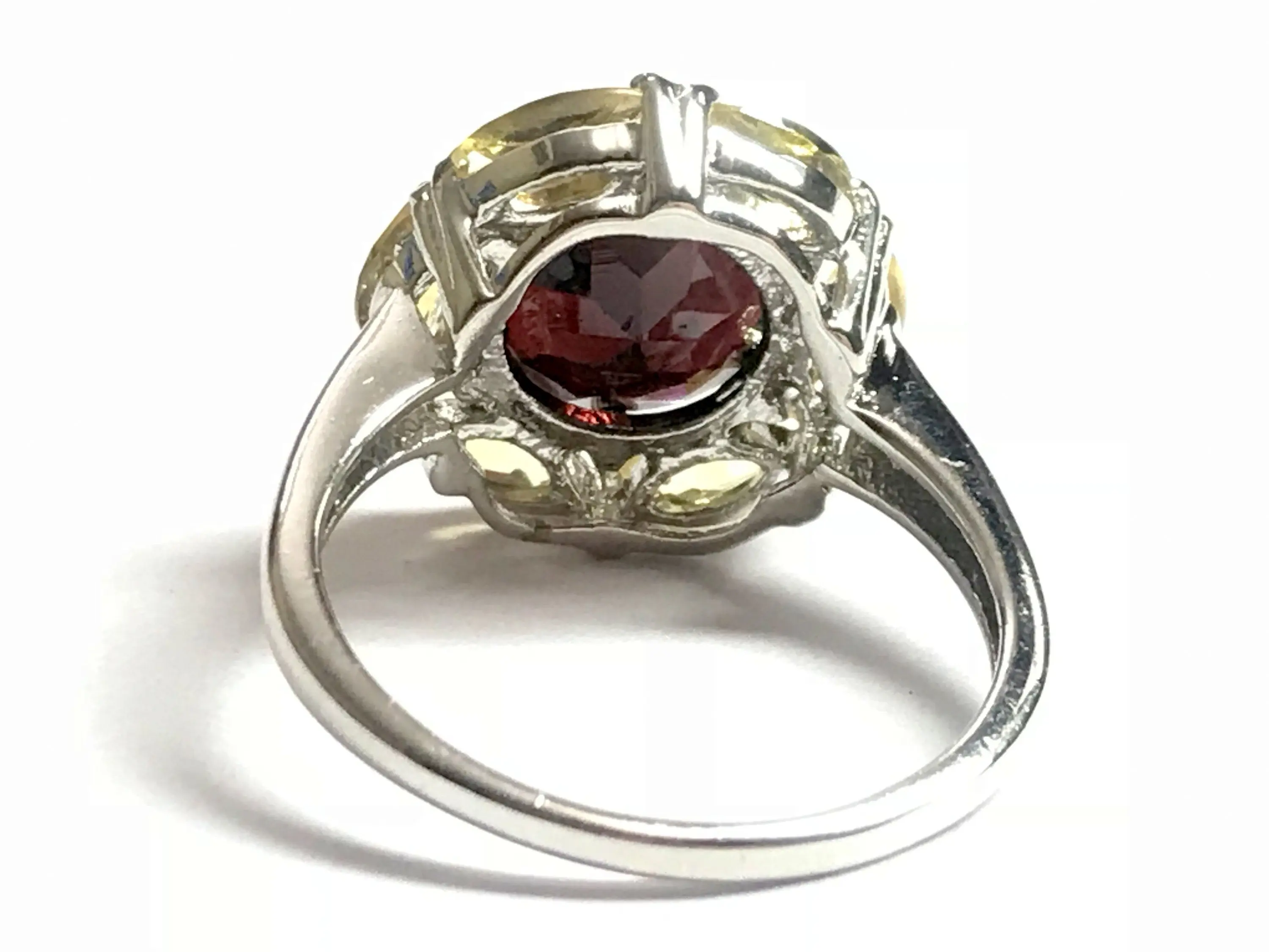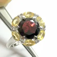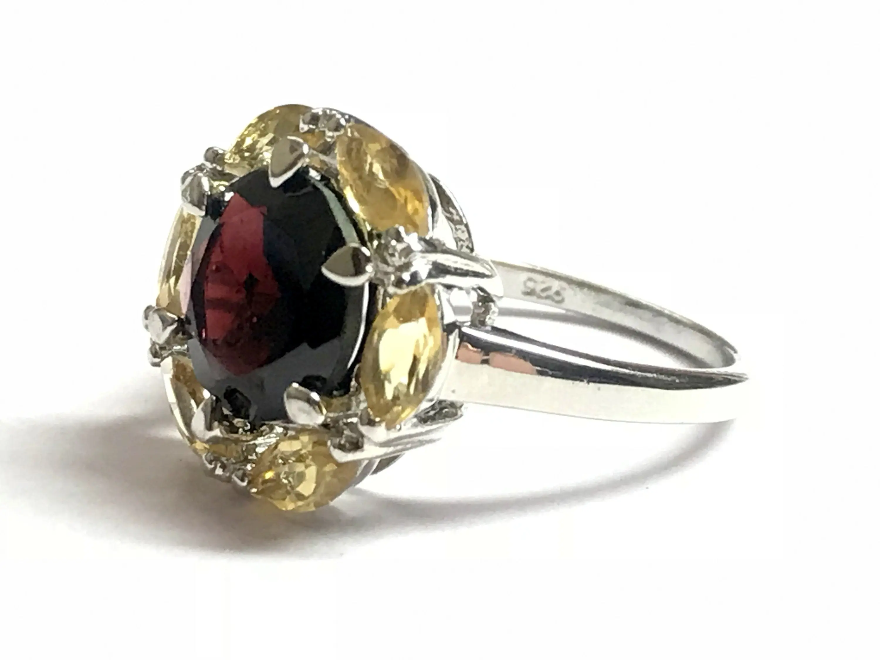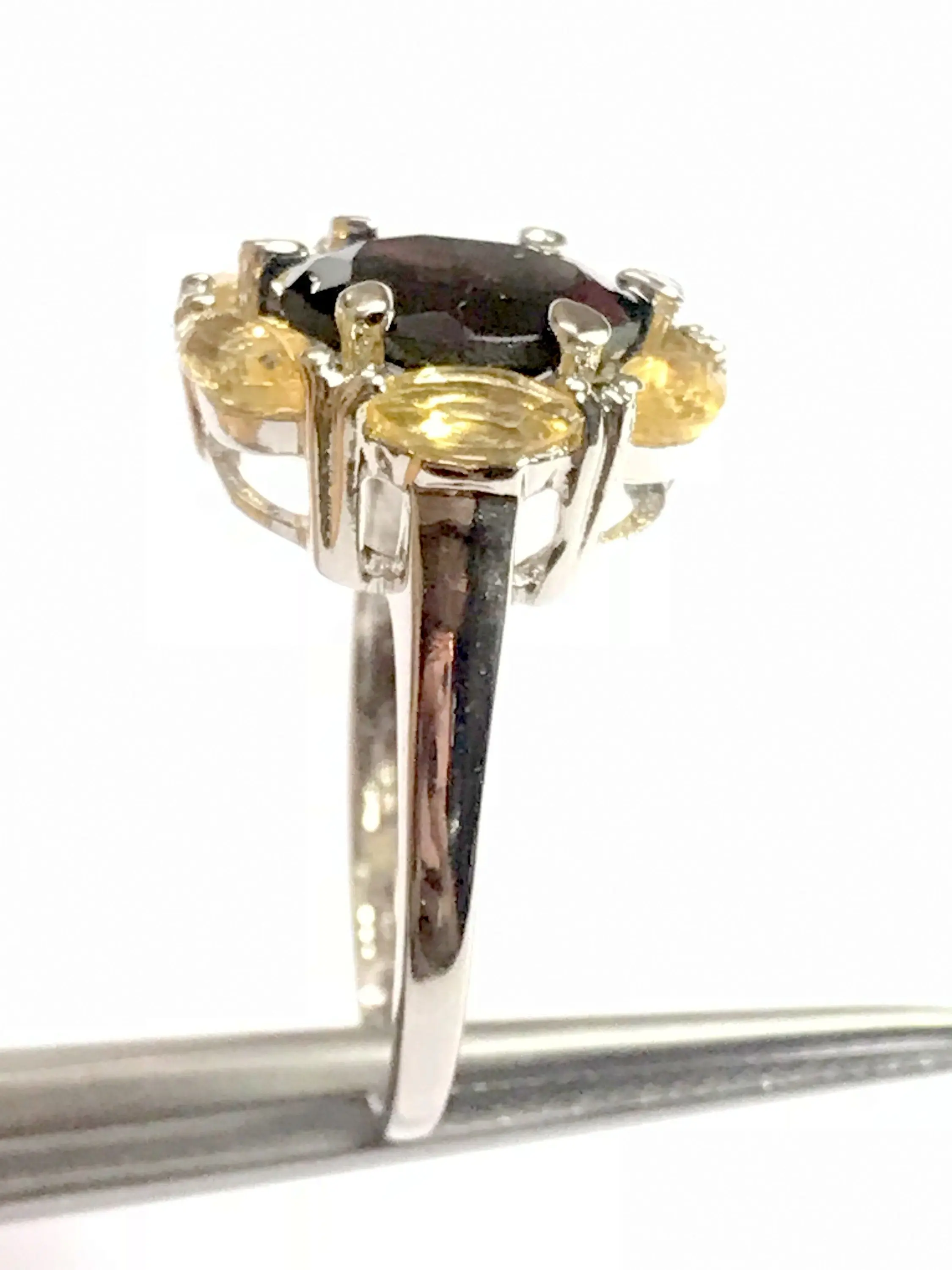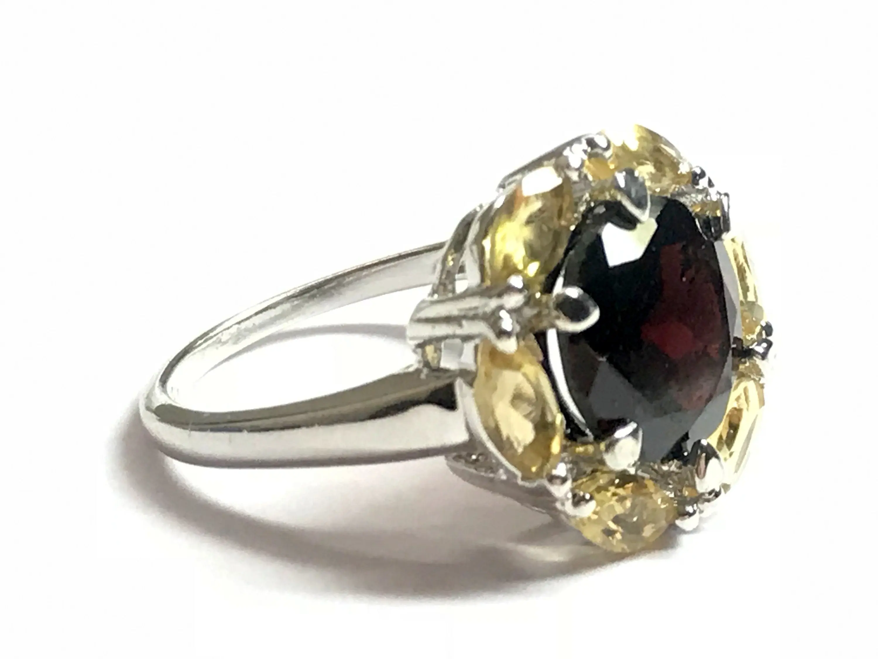 GARNET CITRINE RING ,January-November birthstone, Red garnet round,Genuine Garnet,gift for her,Valentine's day Gift