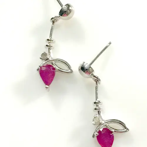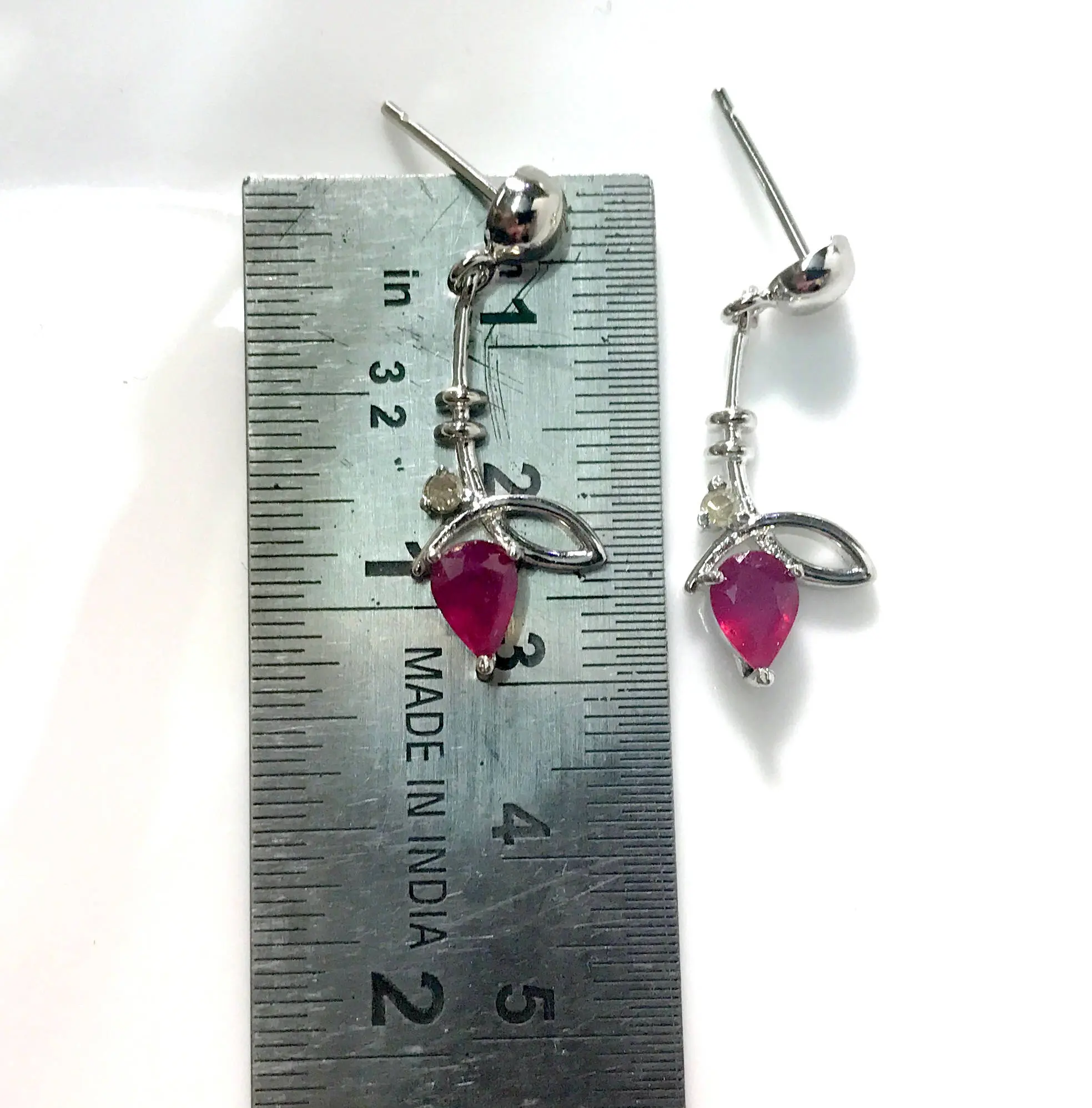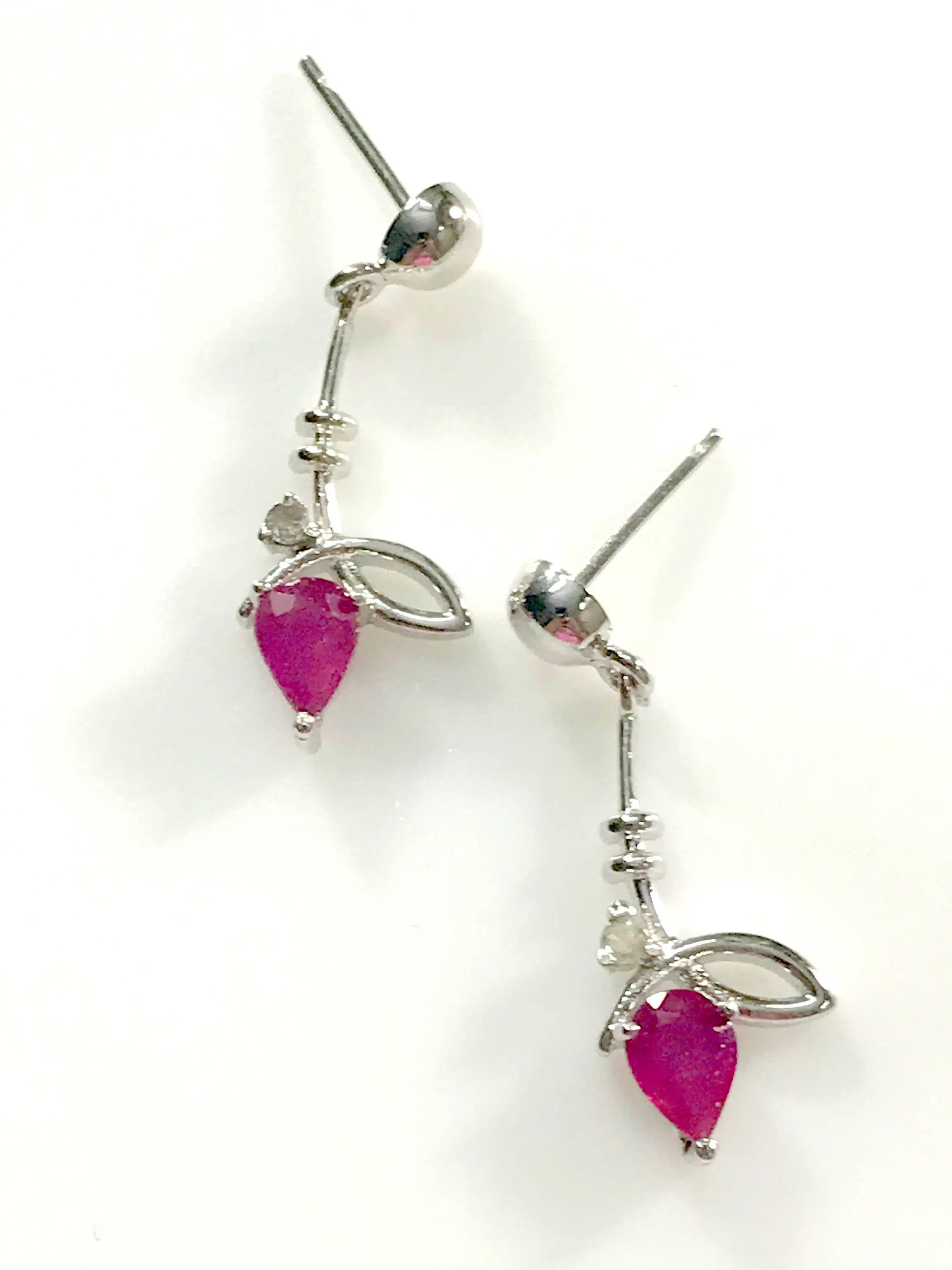 A 92.5 sterling silver super fine quality of precious dangle earrings with ruby..... rhodium plated........super fine quality........handmade jewelry.........high finishing work......