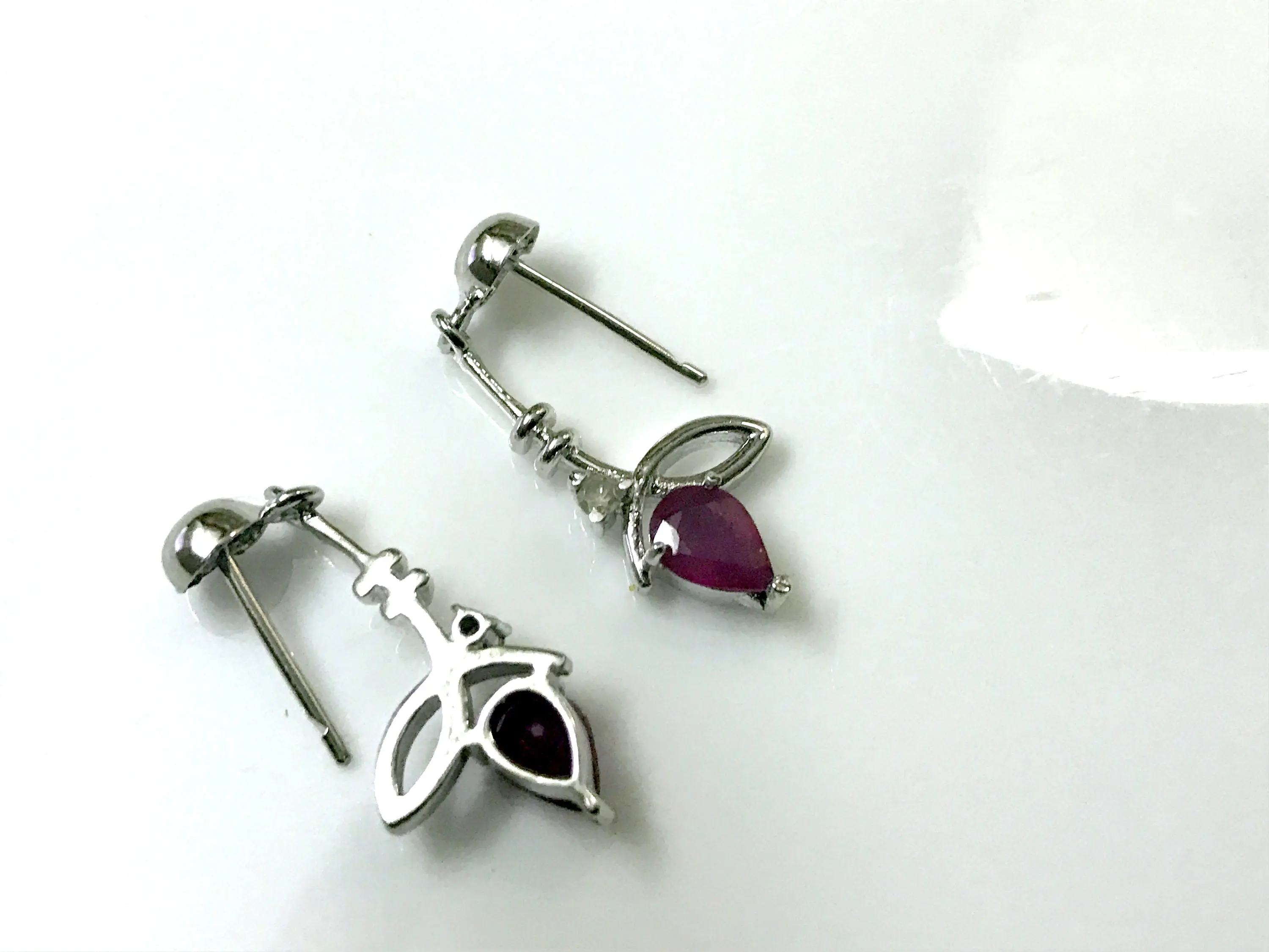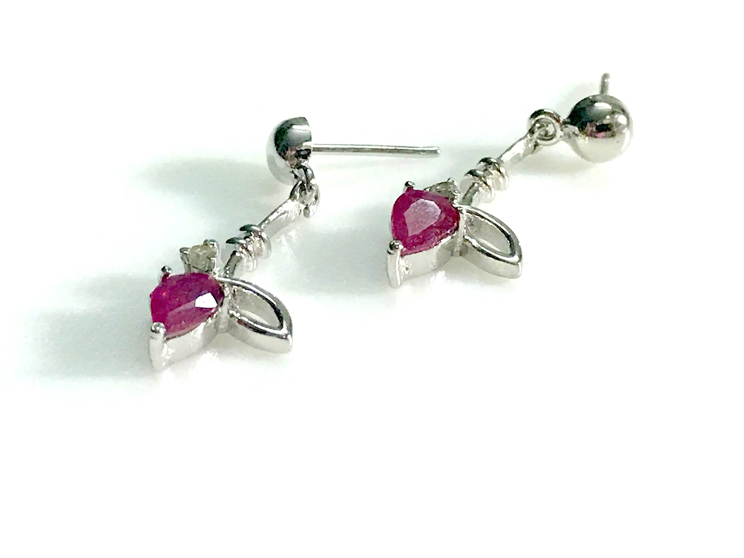 RUBY DIAMOND EARRINGS ,ruby dangle earrings, ruby pear shape gemstone ,Ruby drop earrings ,gift for her, July birthstone
