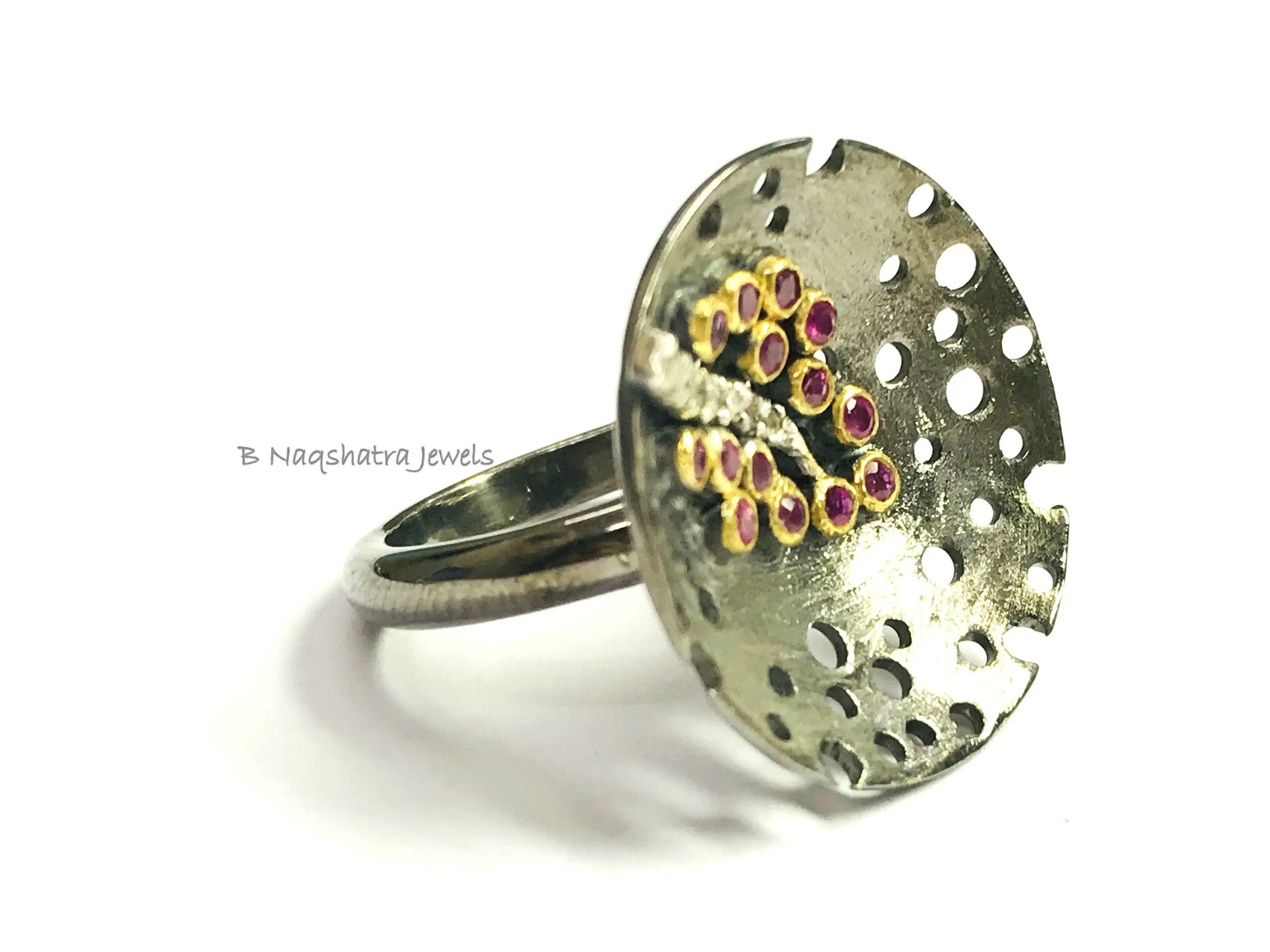 RUBY RING Antique Finish,Cocktail ring ,925 sterling silver ring,Inspired Cherry Basket, Gift for Her,Christmas Surprise.