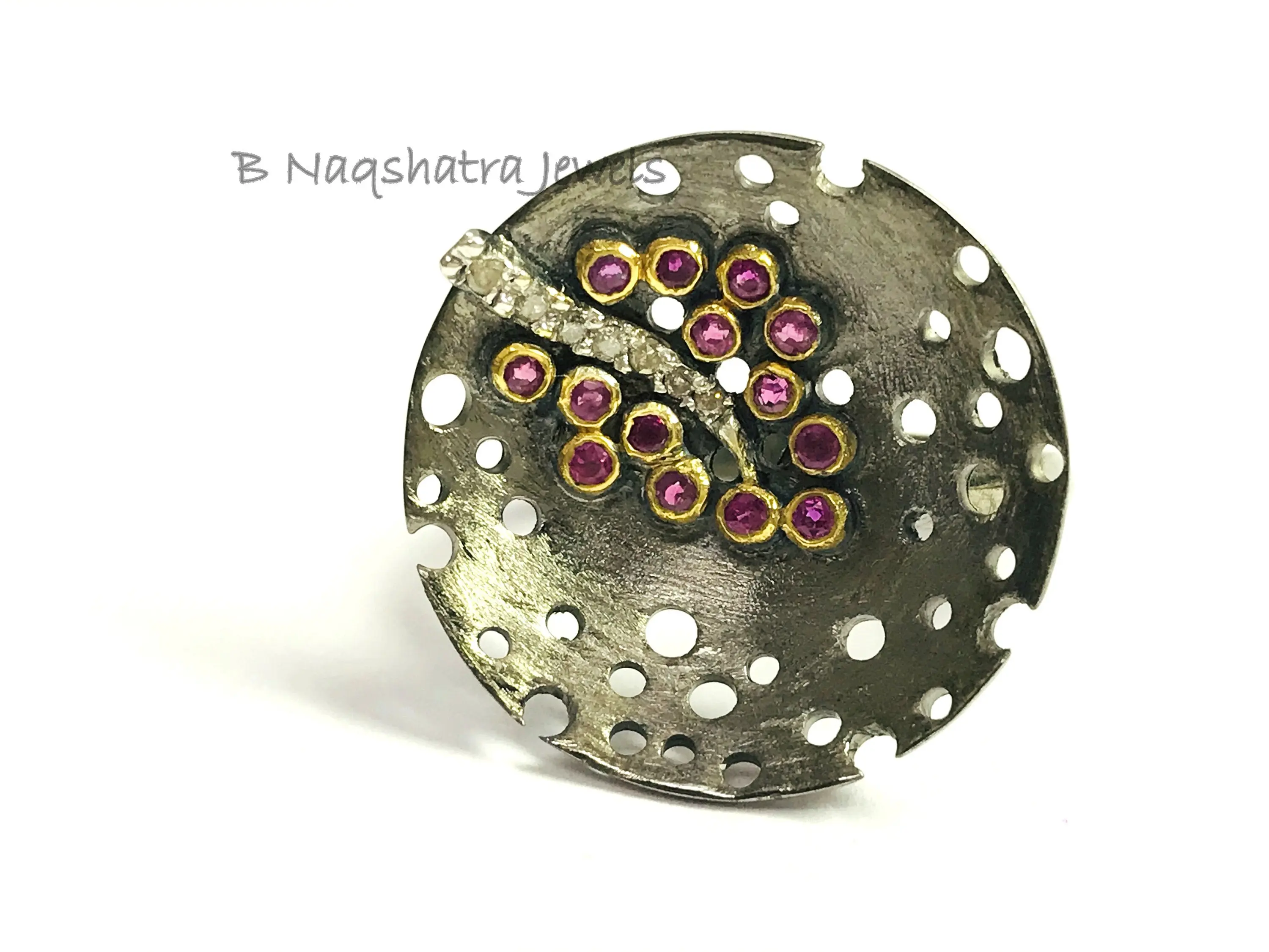 Ethinic and Antique look ring studded with a lovely round cut natural RUBY DIAMOND RING........