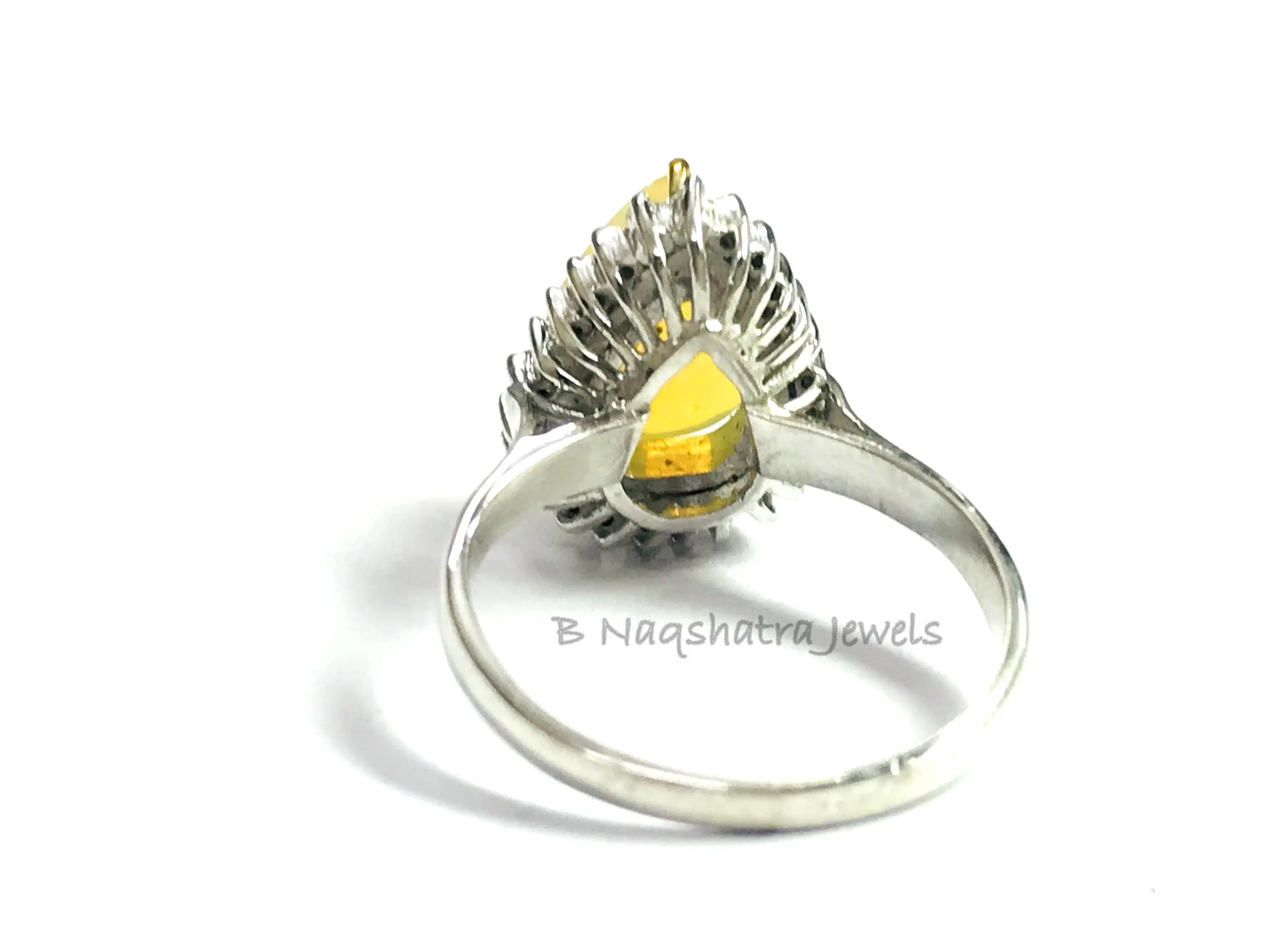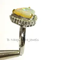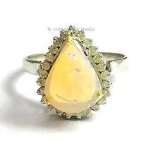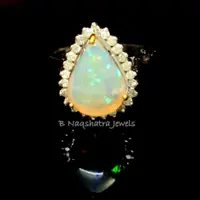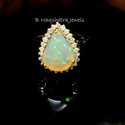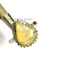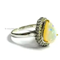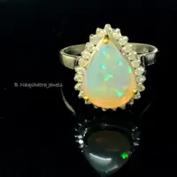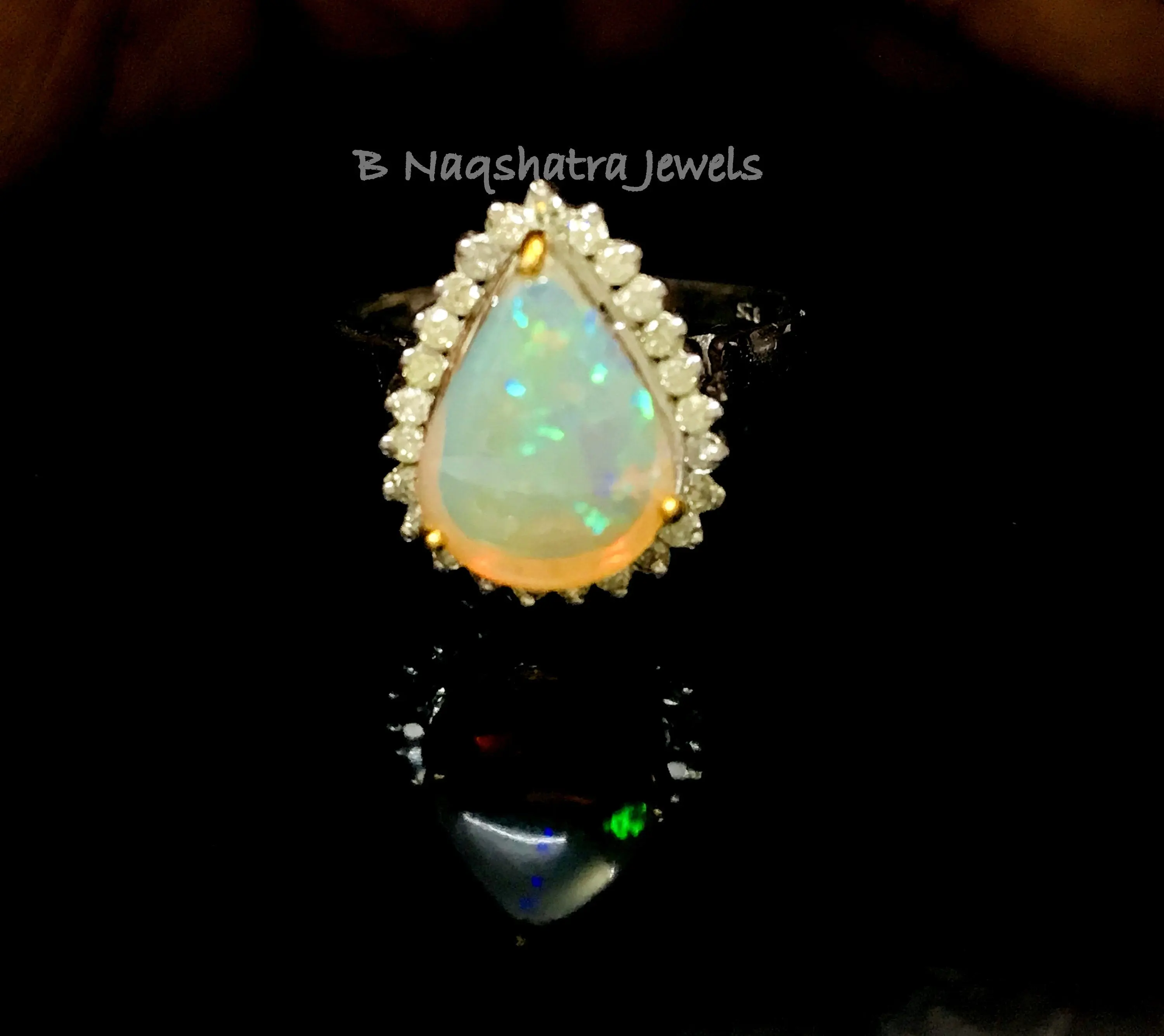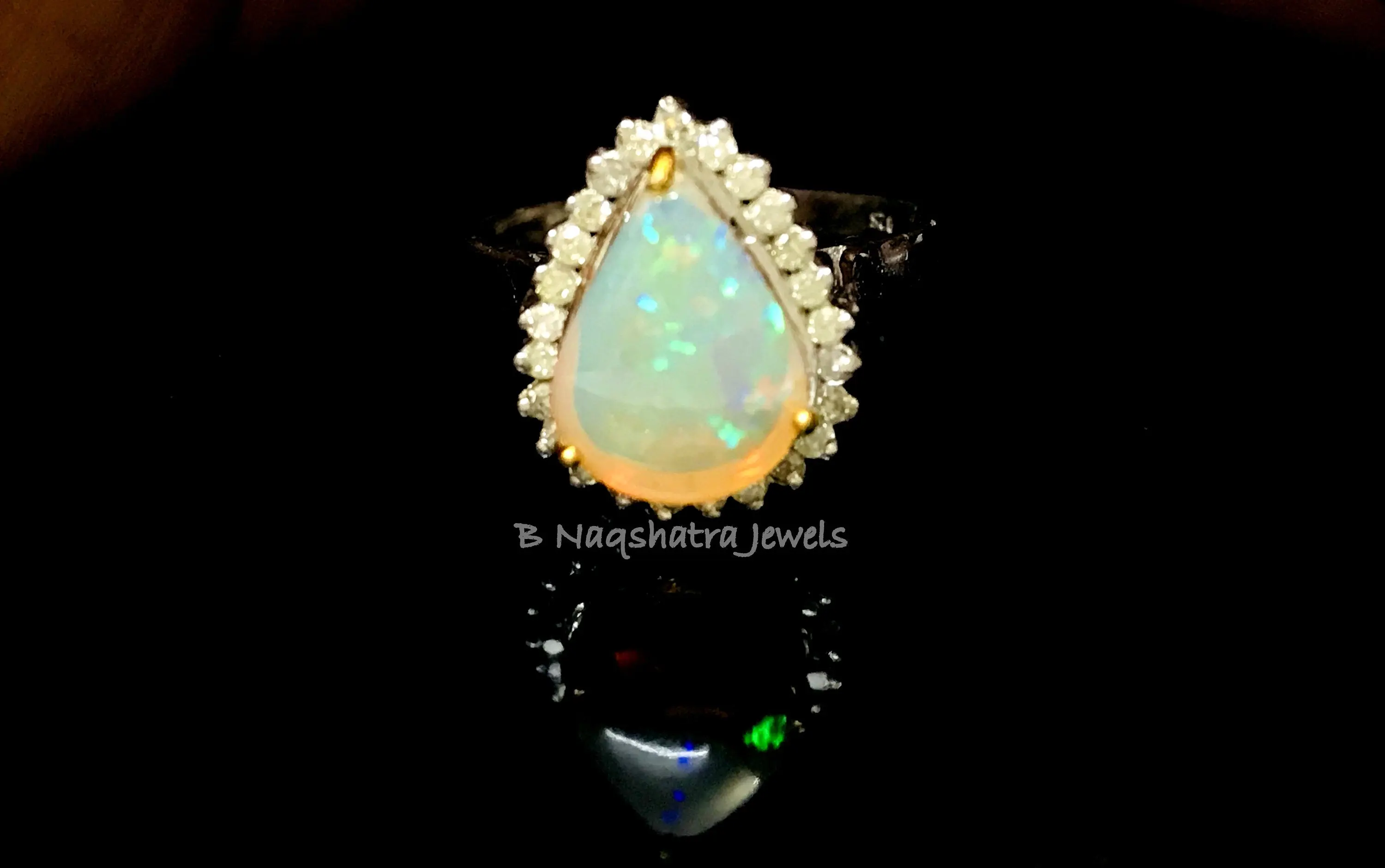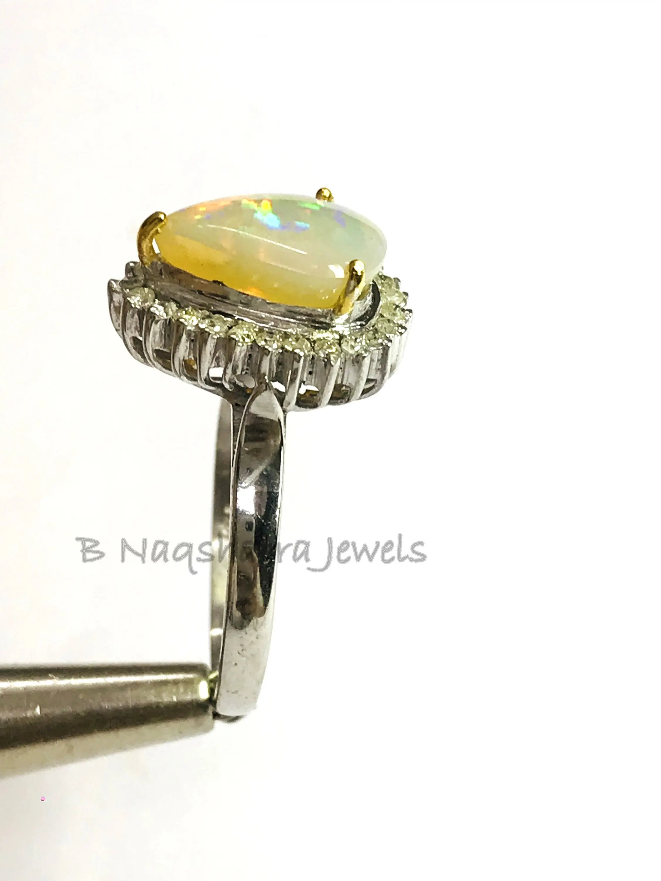 FIRE OPAL DIAMOND Ring,October birthstone ,Welo Opal,Pear Cabochon shape,Promise Ring For Her,Wedding Gift.
