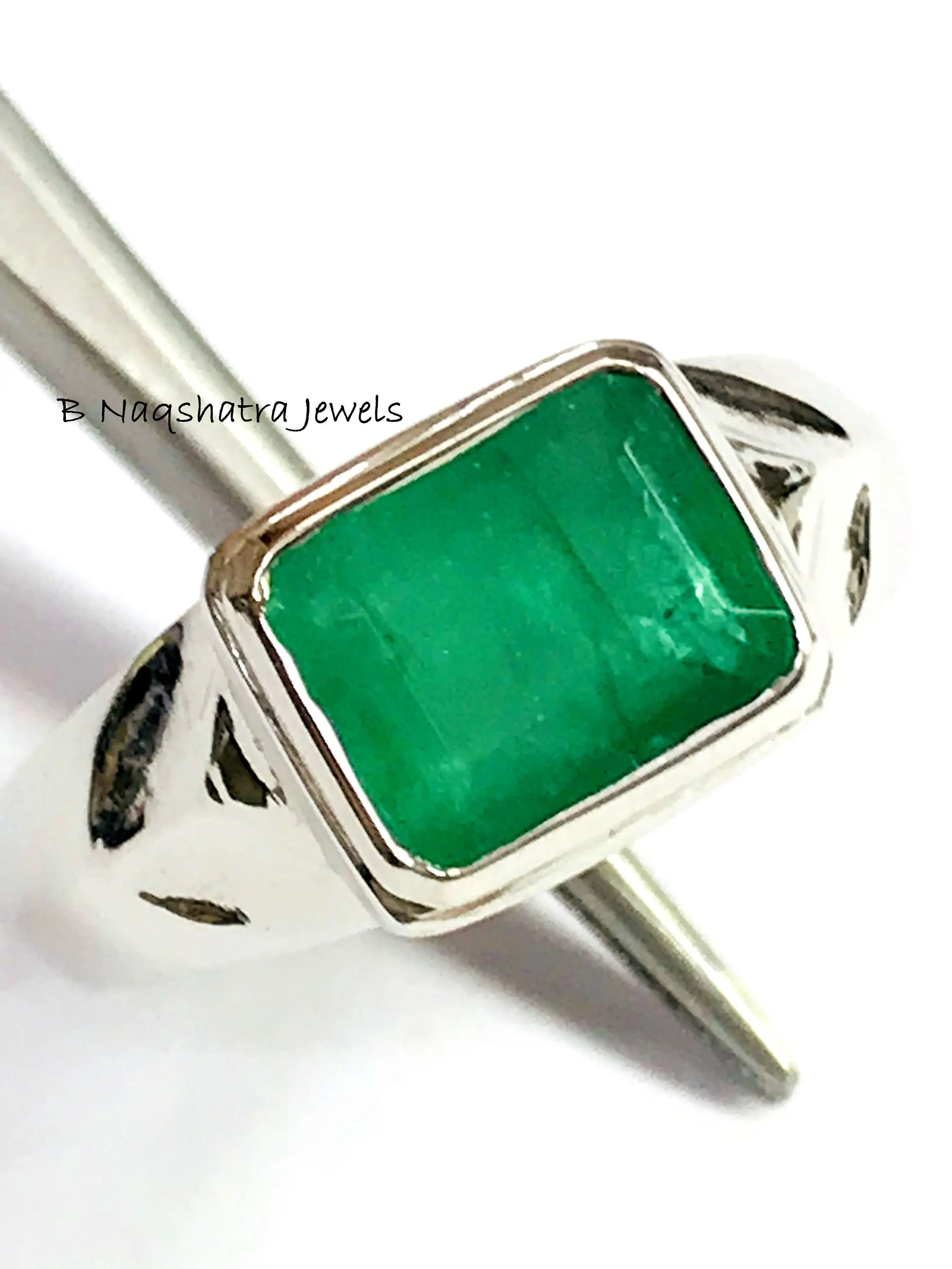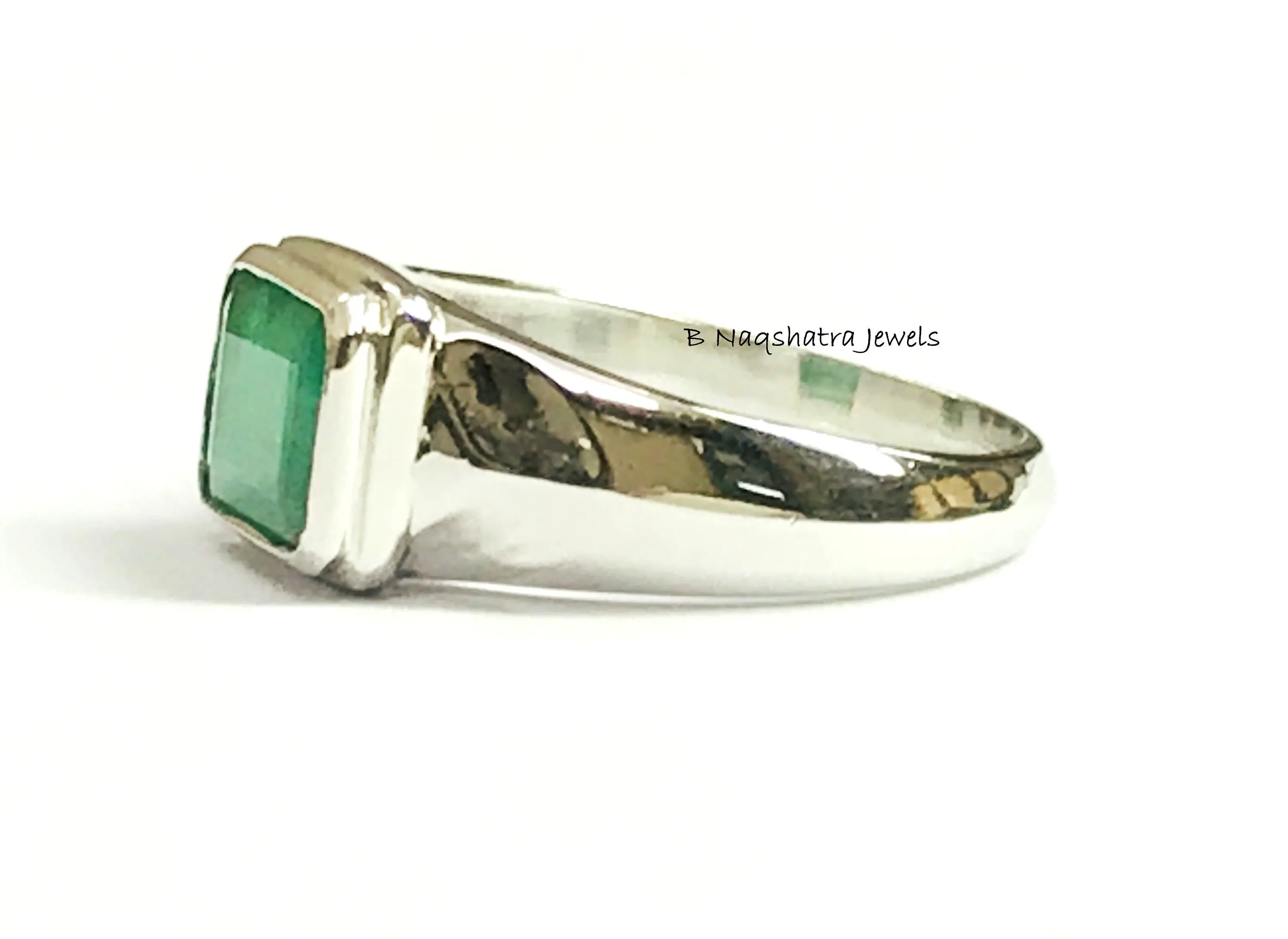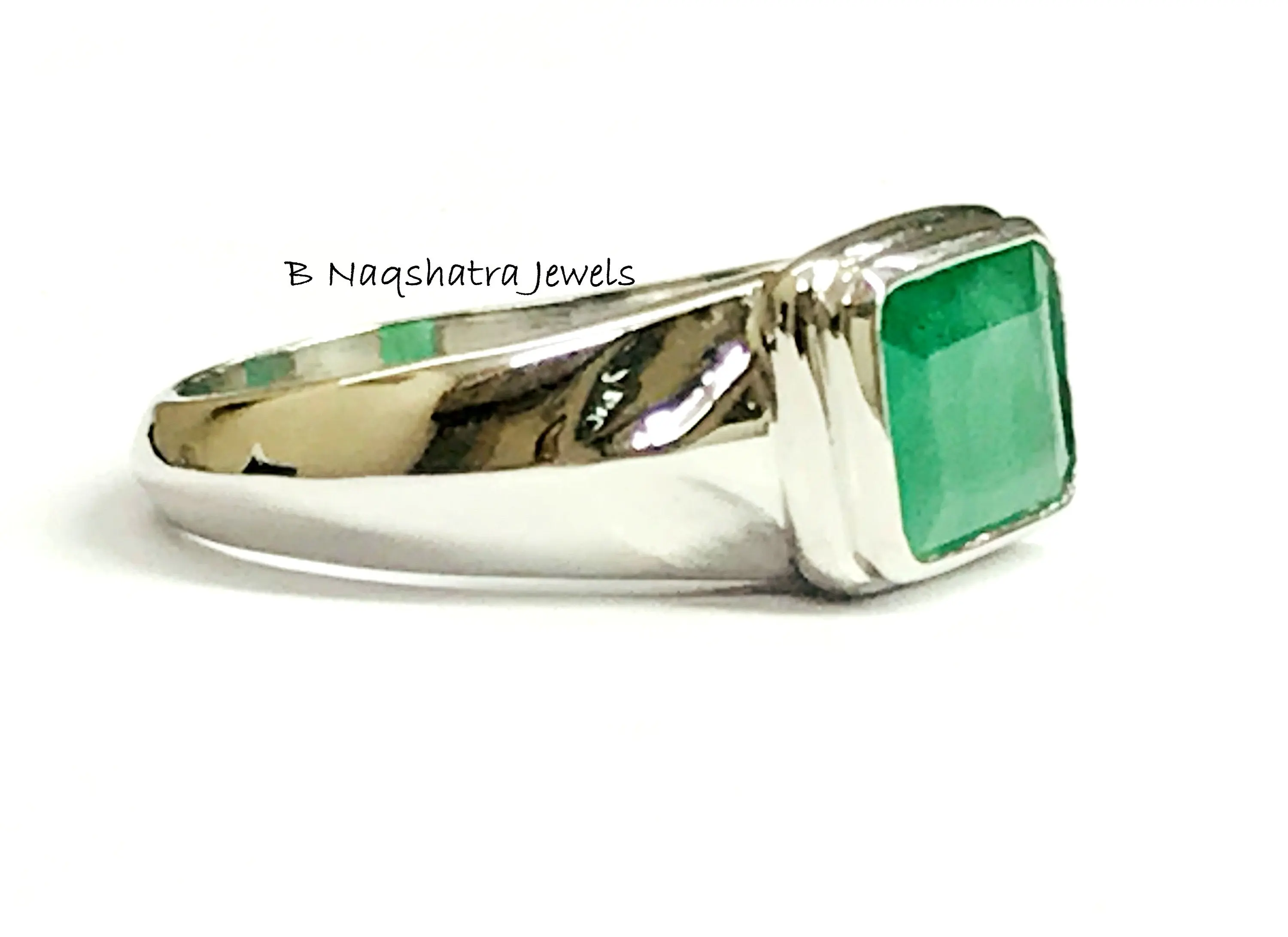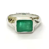 This is a beautifully designed Men's fantasy ring with Natural Genuine Emerald Gemstone in 925 sterling silver