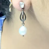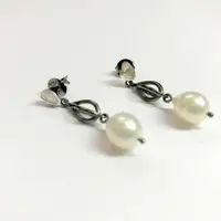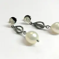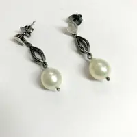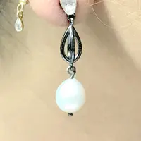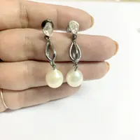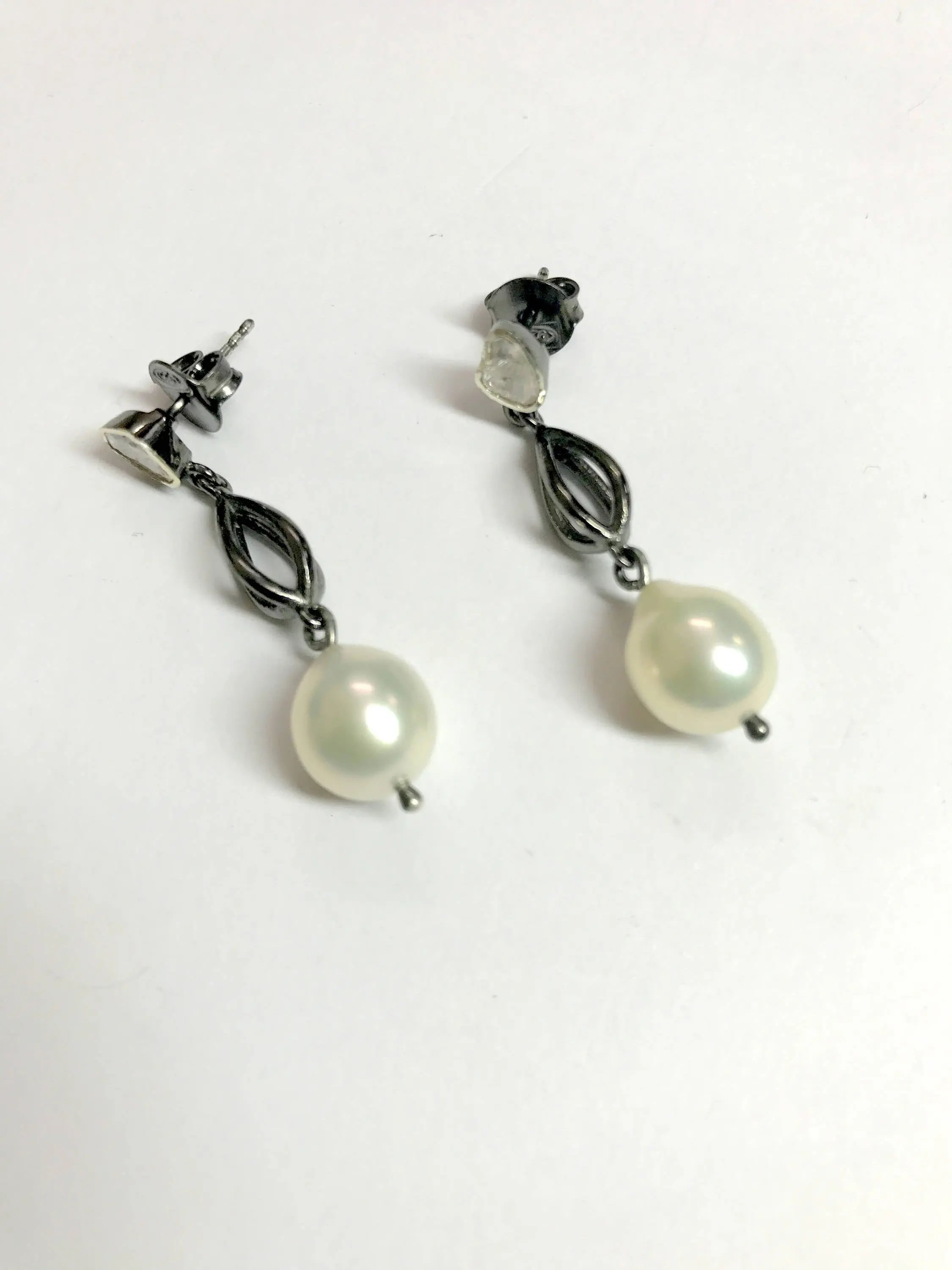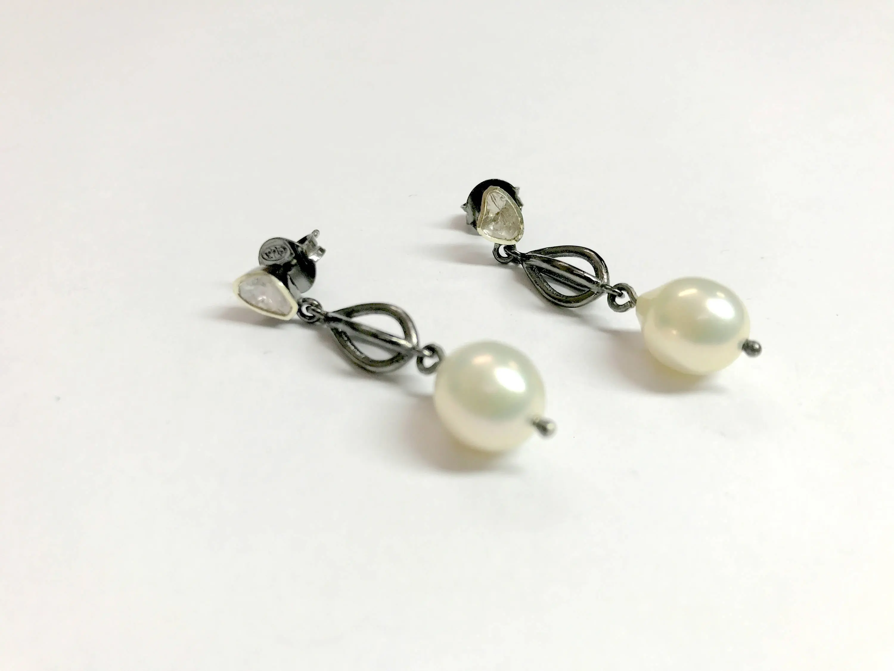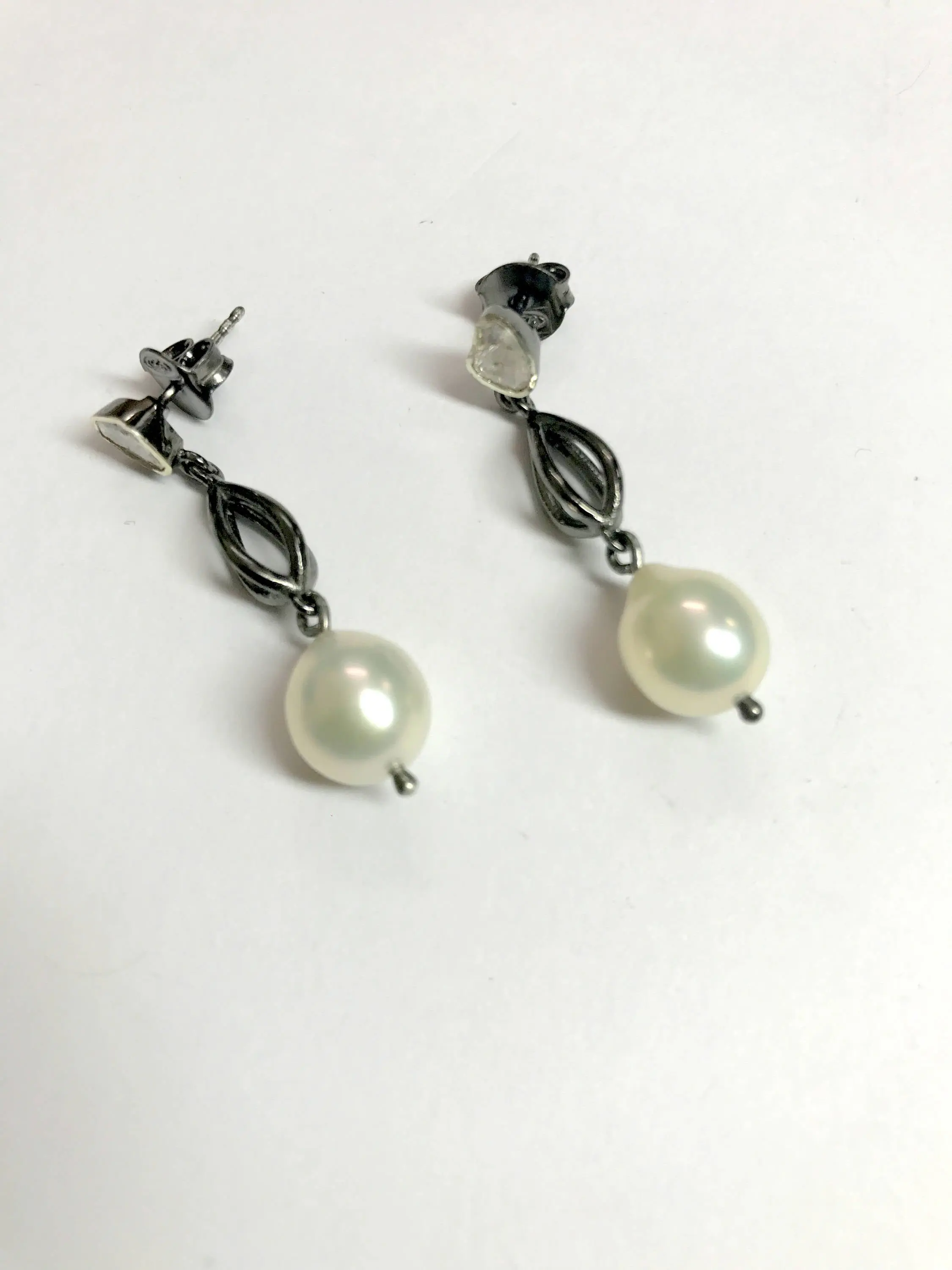 DIAMONDS PEARL EARRINGS in sterling silver,chandeliers,diamond antique earring , drop earrings , pearl earrings