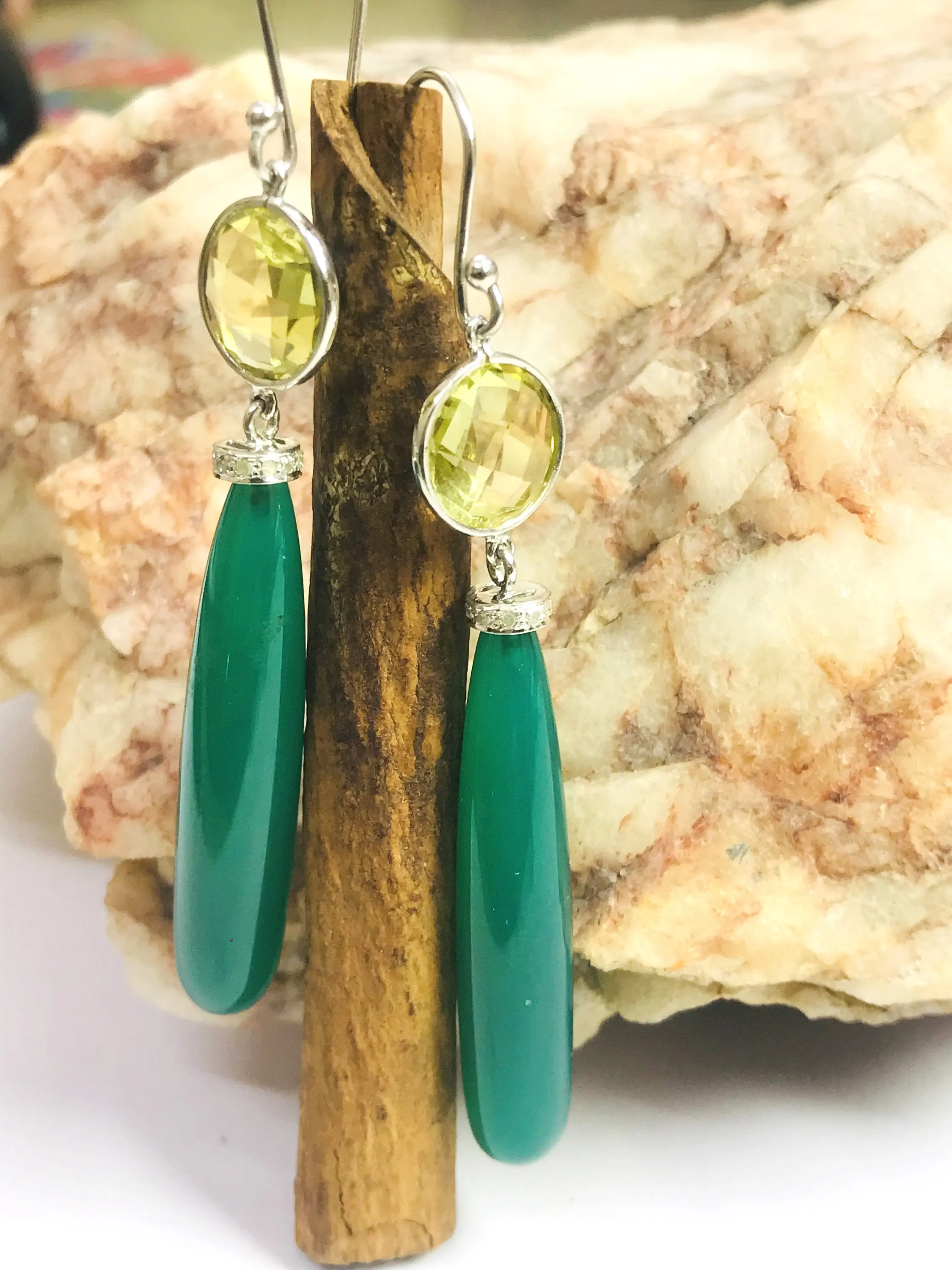 Gemstone = Green Onyx , Lemon Topaz and Natural Diamonds