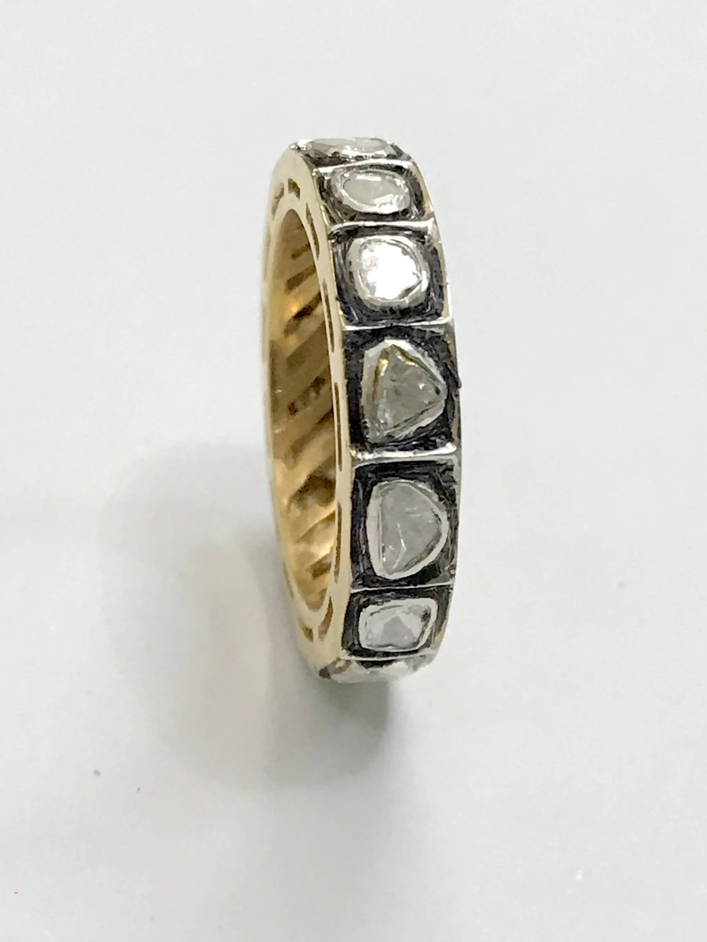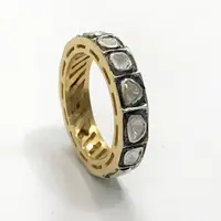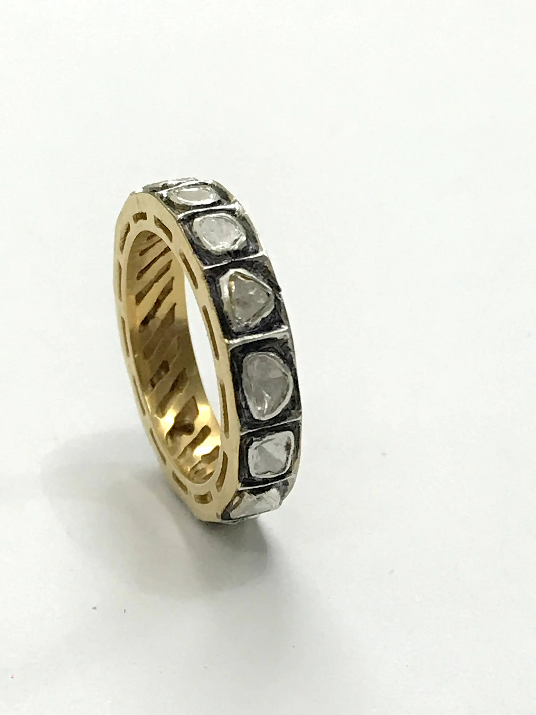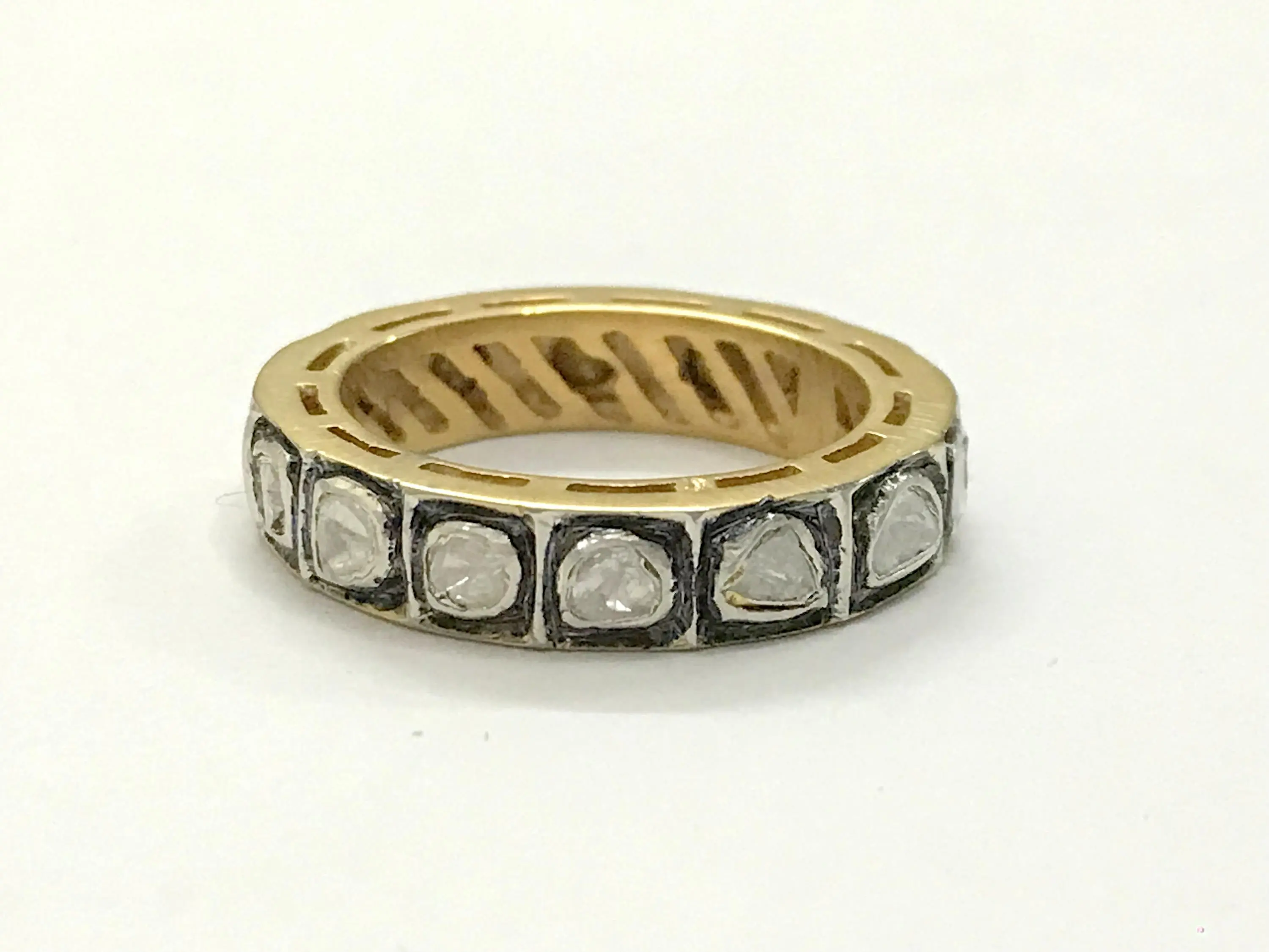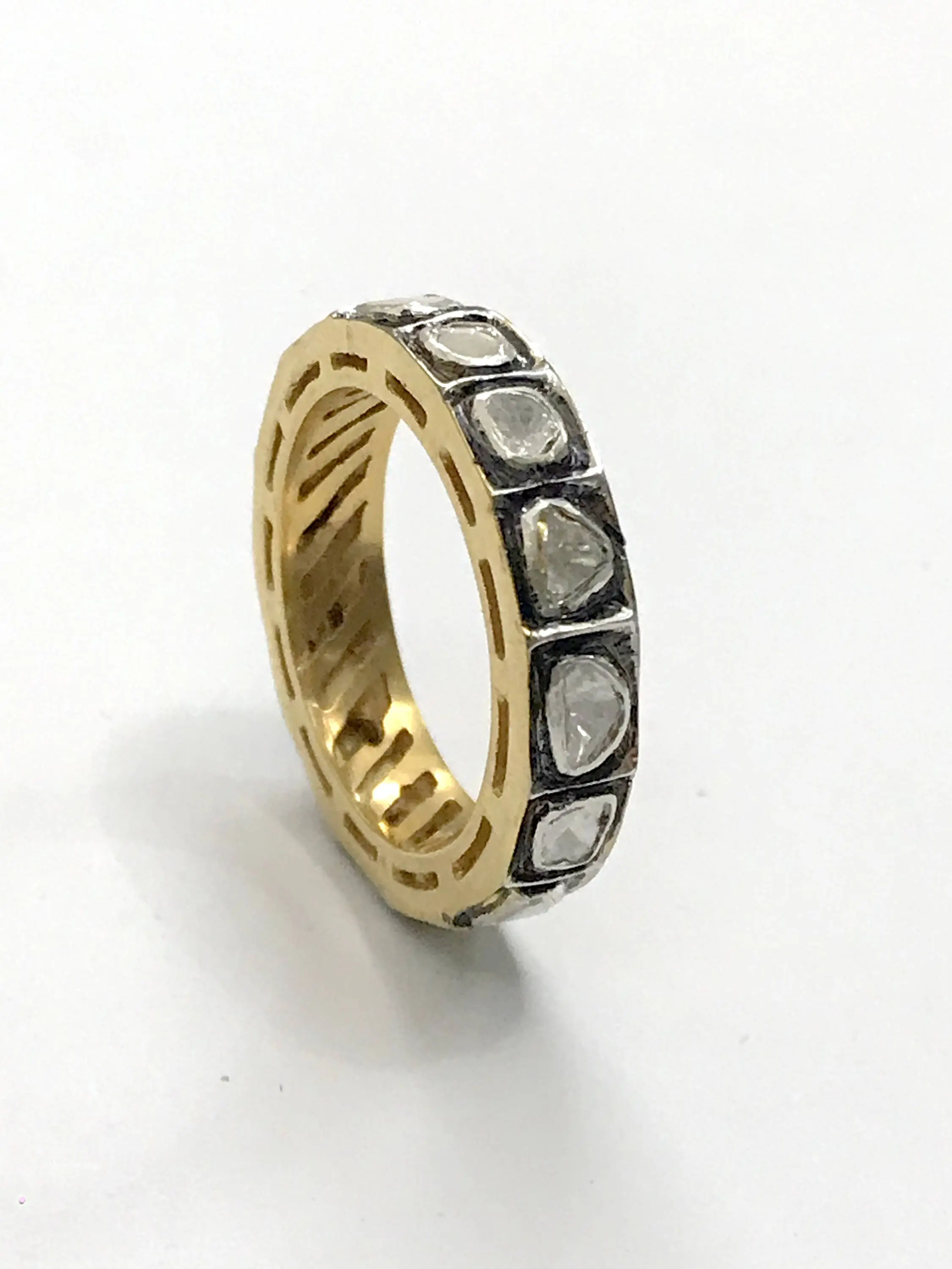 hand cut diamond Eternity band ring studded with 100% natural Rose cut diamonds in bezel set......and black rhodium and gold plated plated......................