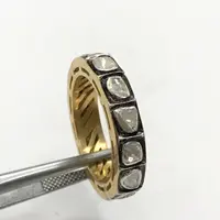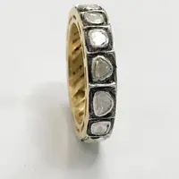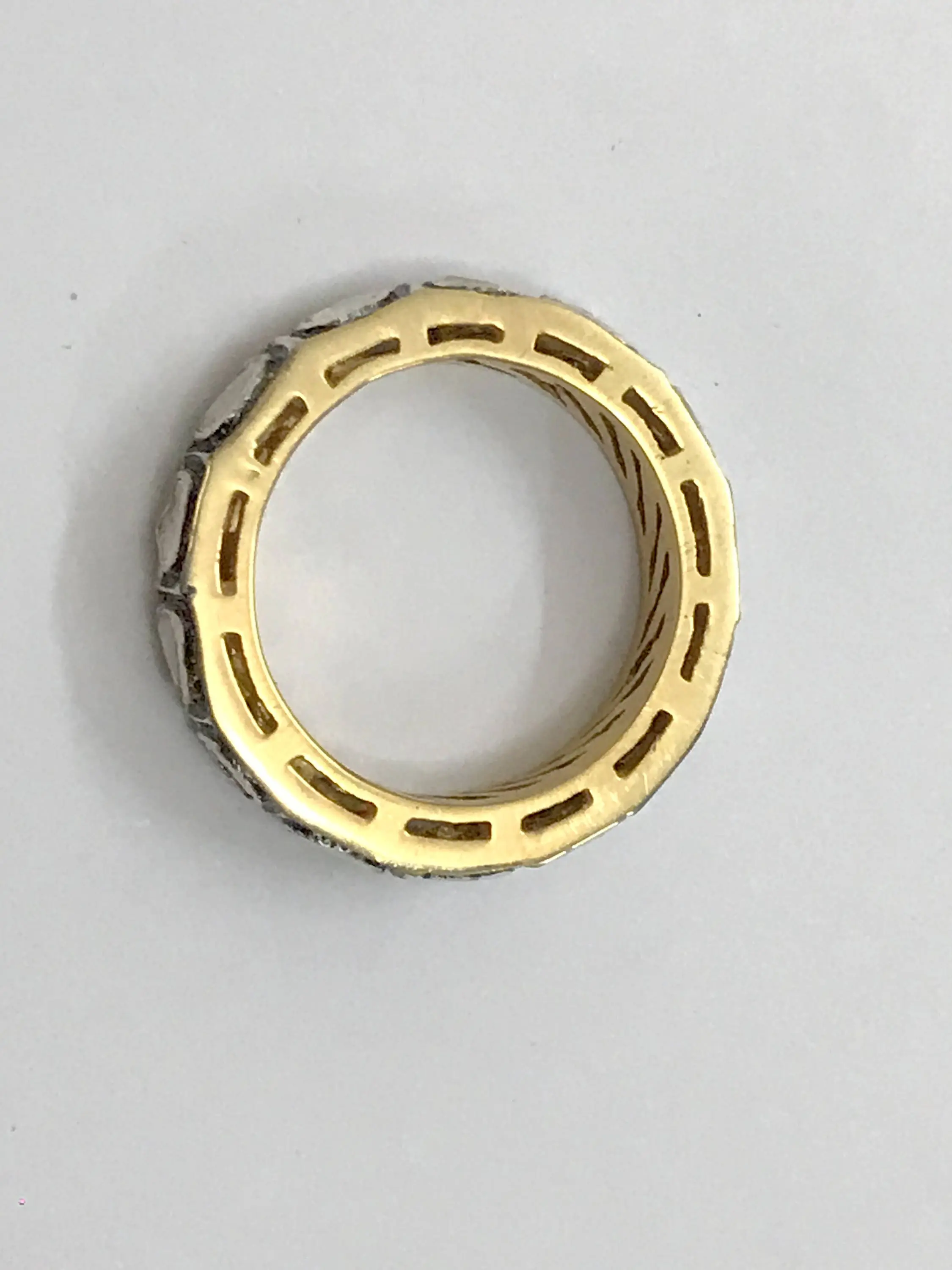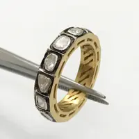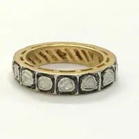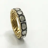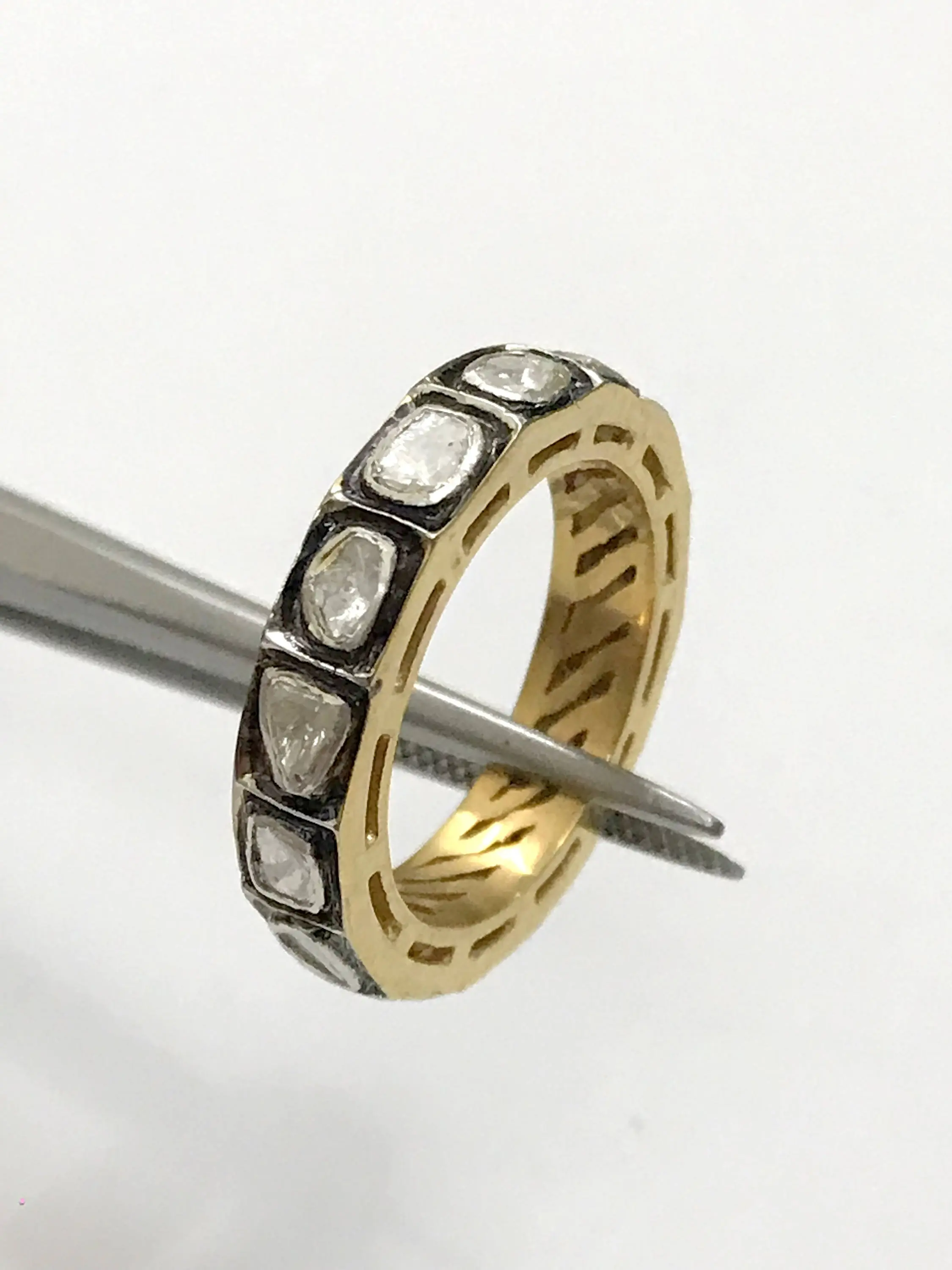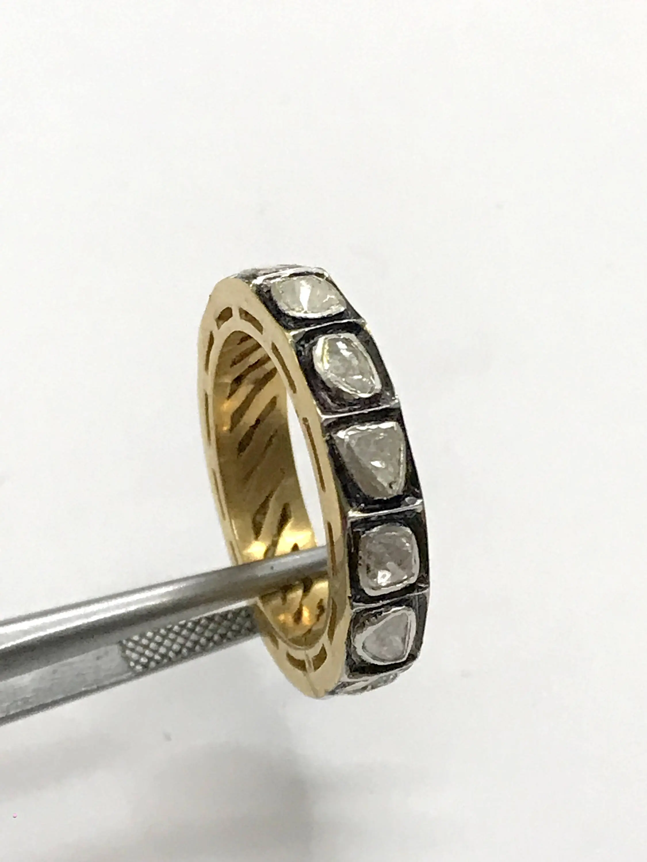 hand cut diamond Eternity band ring studded with 100% natural Rose cut diamonds in bezel set......and black rhodium and gold plated plated......................