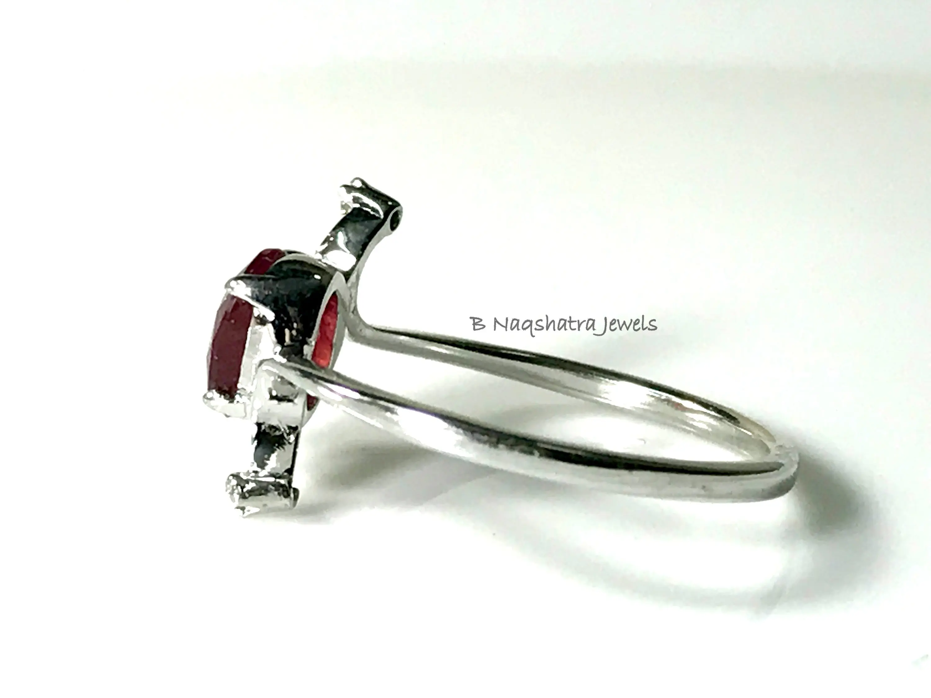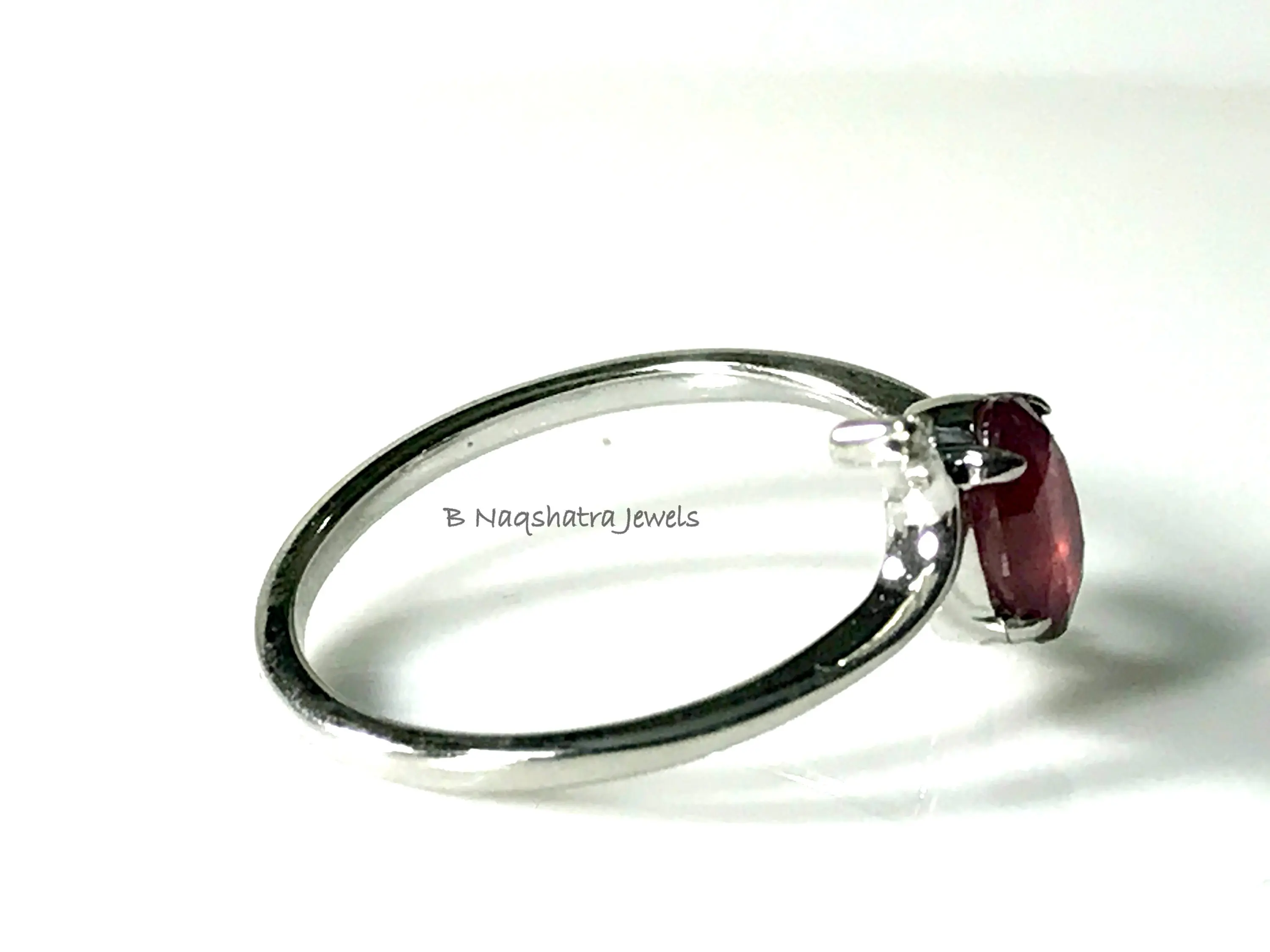 RUBY DIAMOND RING , sterling silver ruby diamonds ring ,Gold ruby anniversary ring, blood red ruby rings, July birthstone