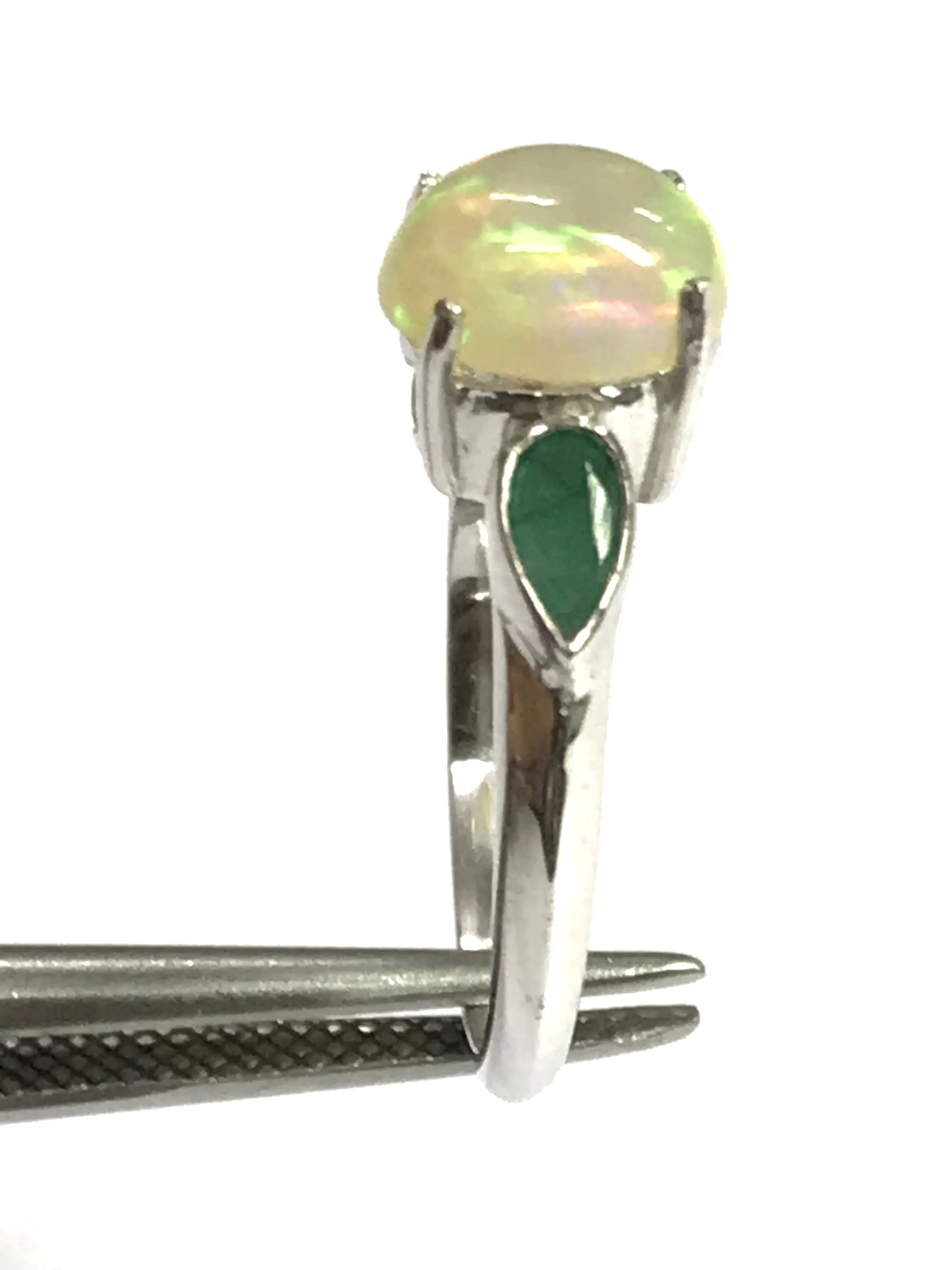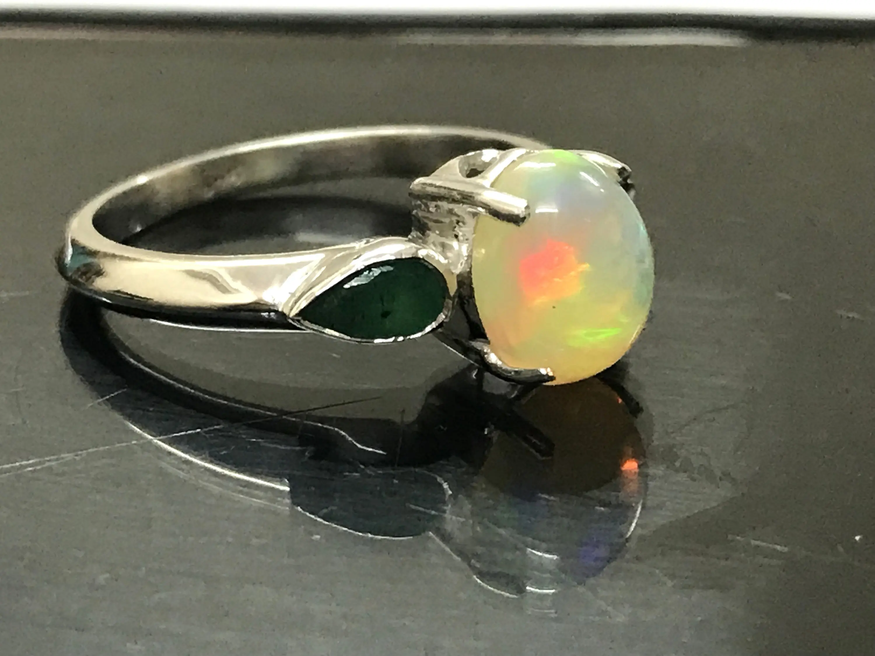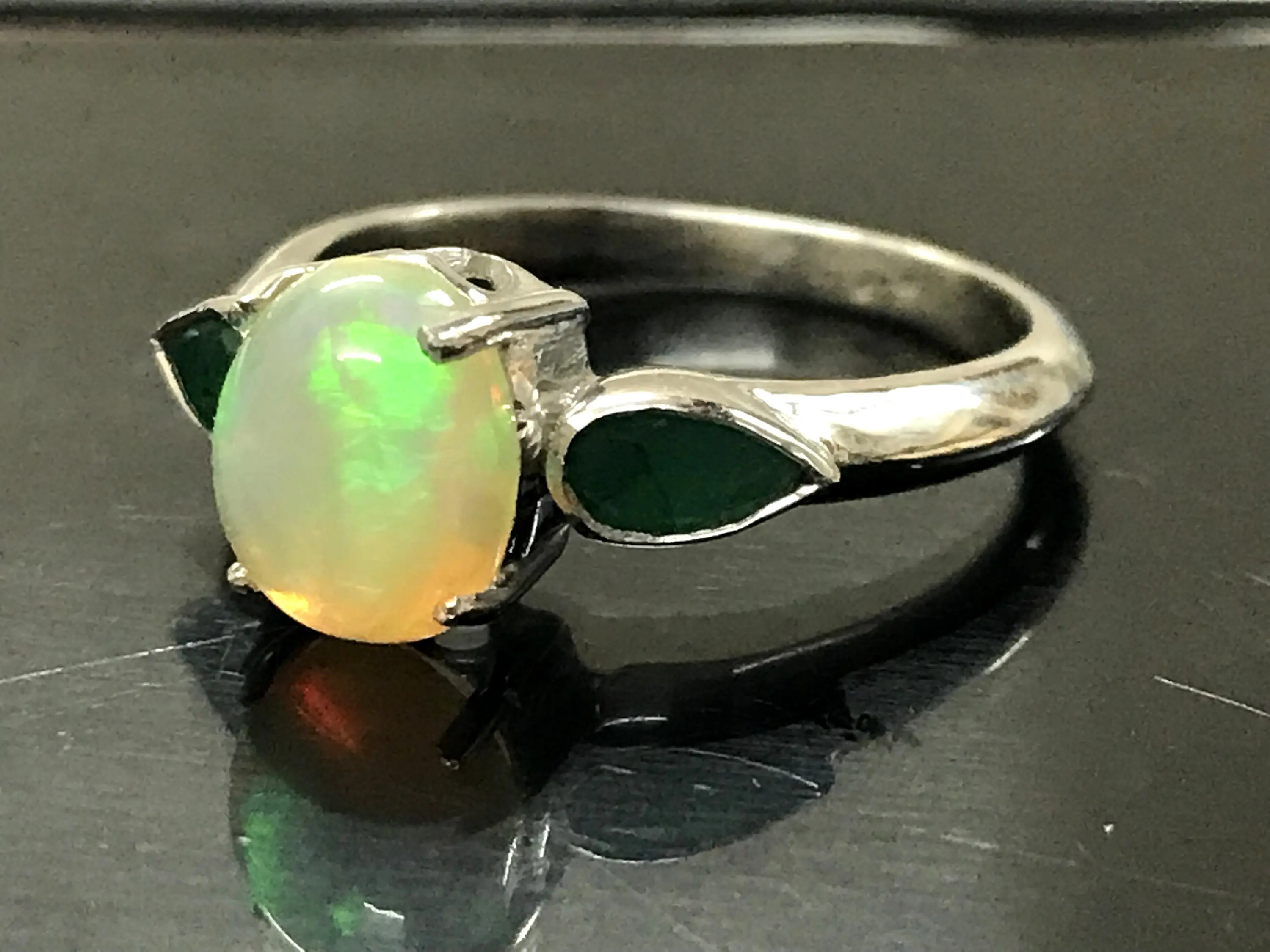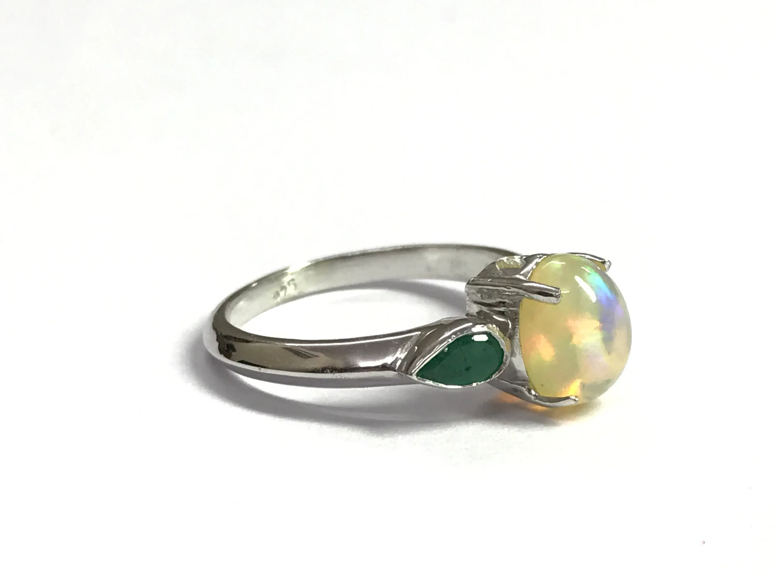FIRE OPAL EMERALD Ring,Ethiopian Opal,Green Emerald , Pear shape ,October-May birthstone ,Promise Ring For Her ,Wedding Band ....