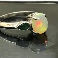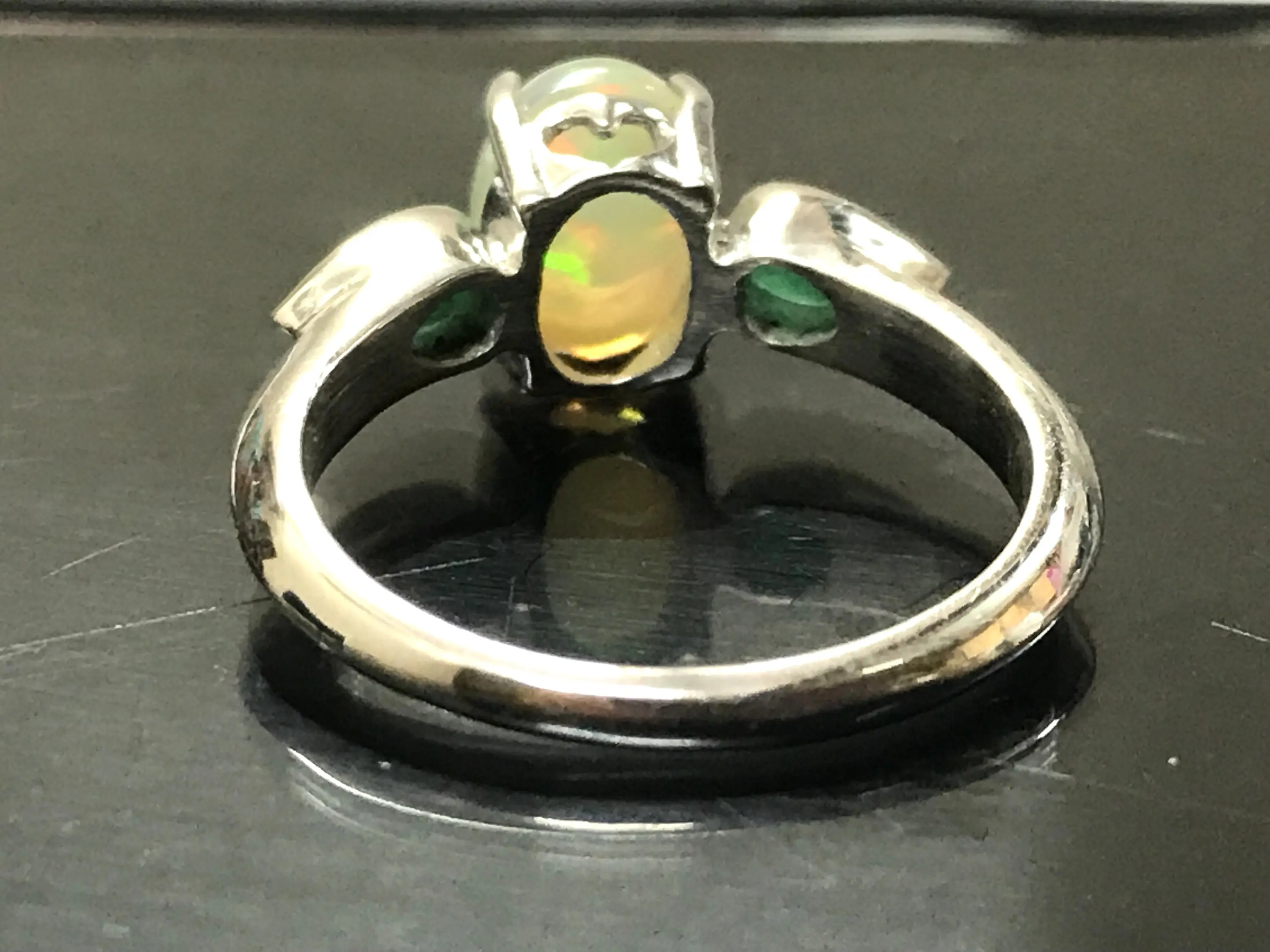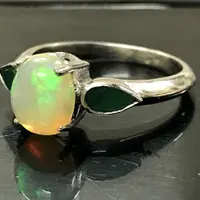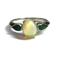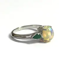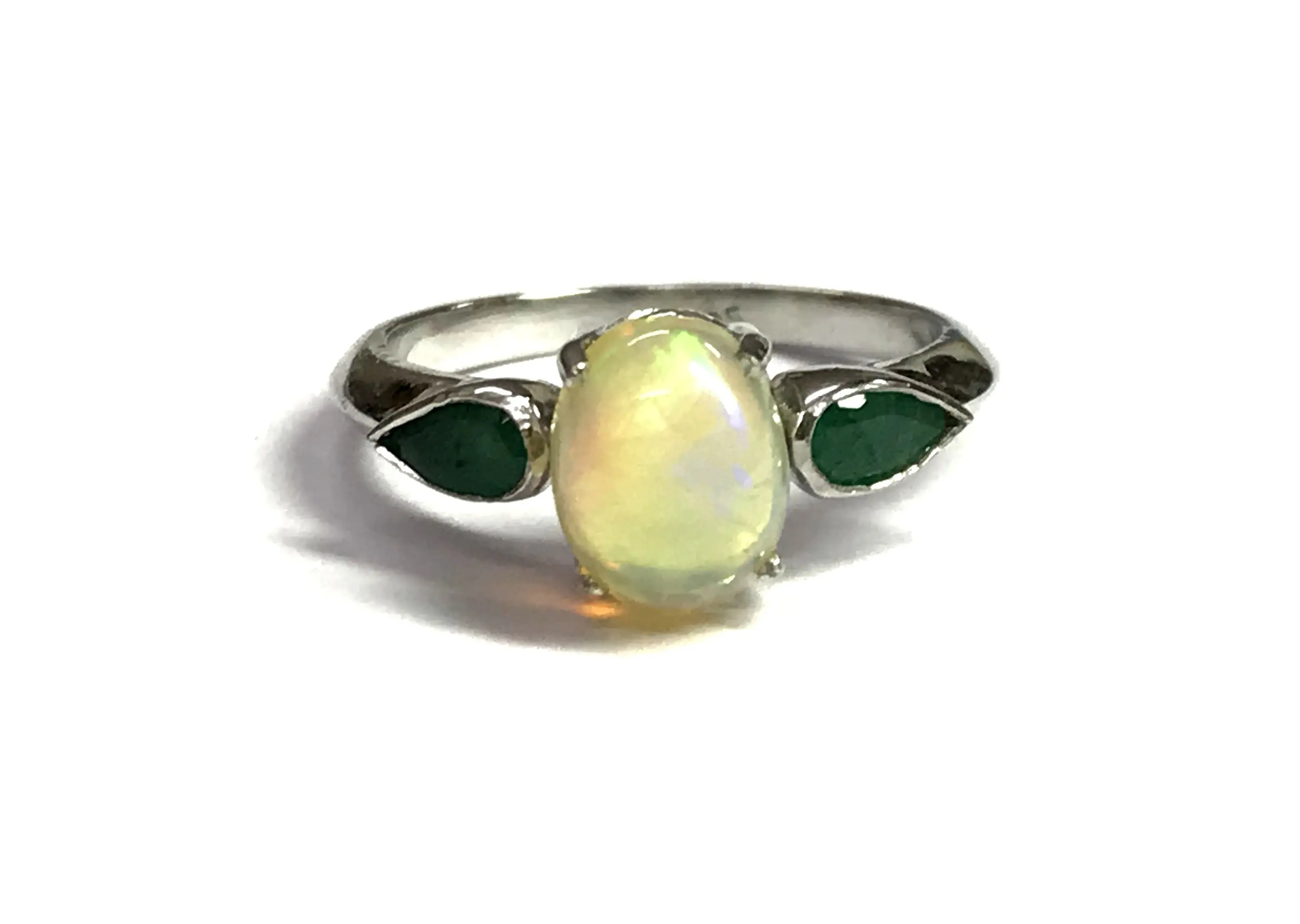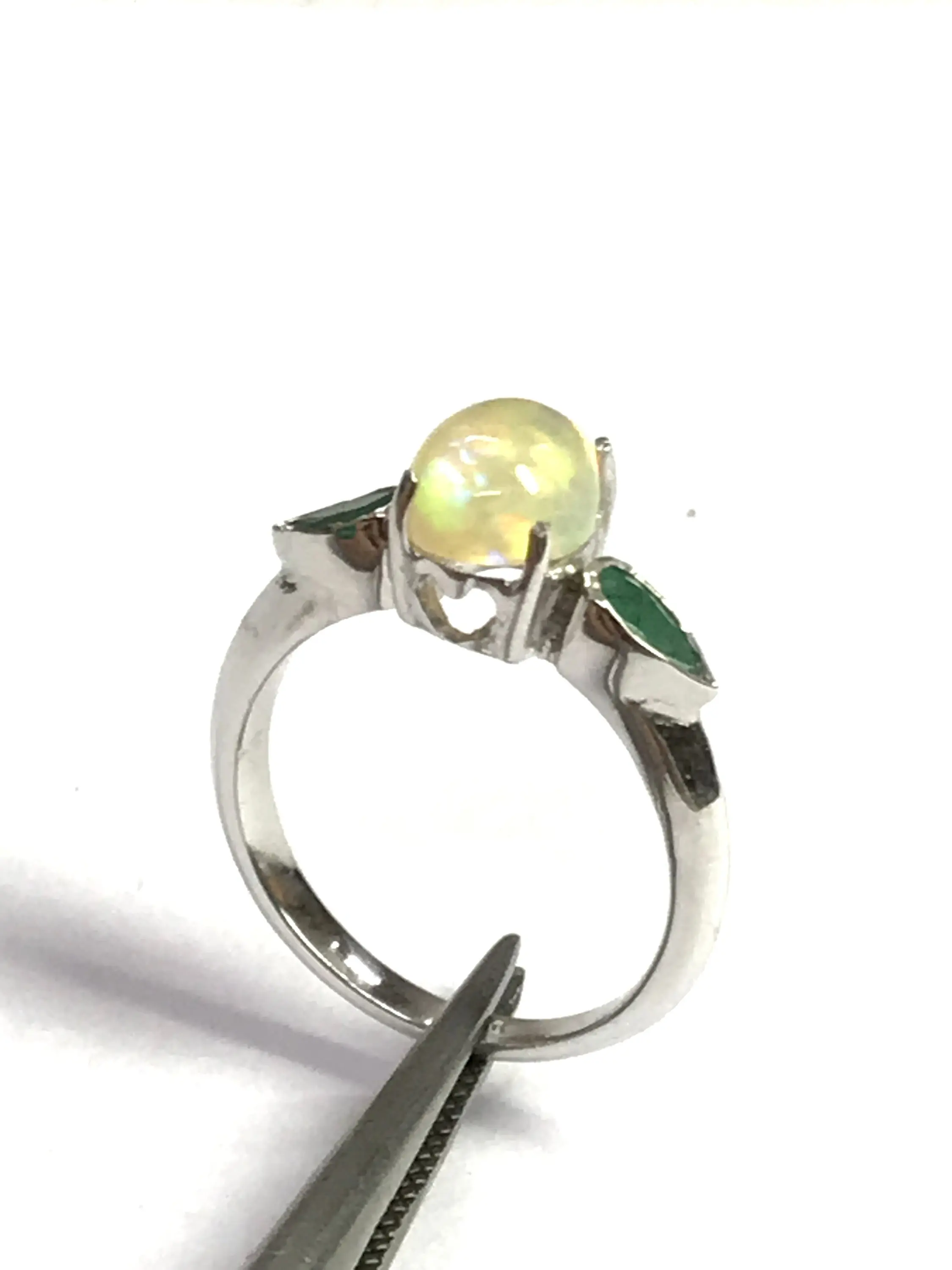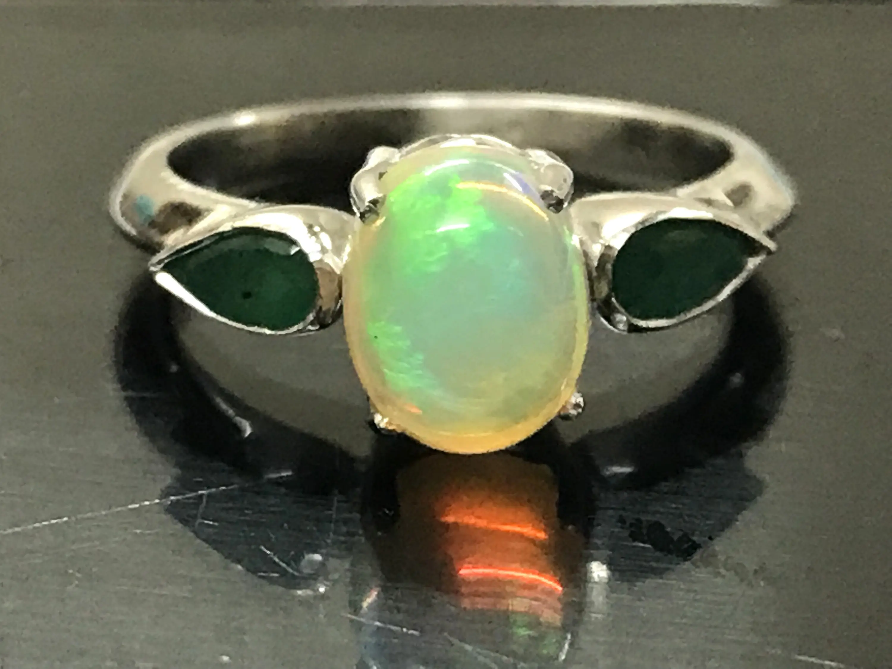 FIRE OPAL EMERALD Ring,Ethiopian Opal,Green Emerald , Pear shape ,October-May birthstone ,Promise Ring For Her ,Wedding Band ....