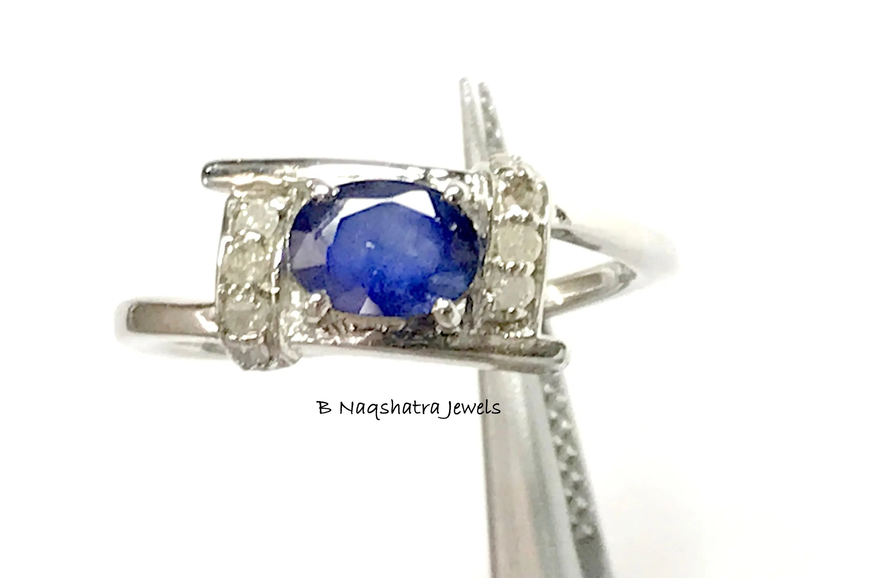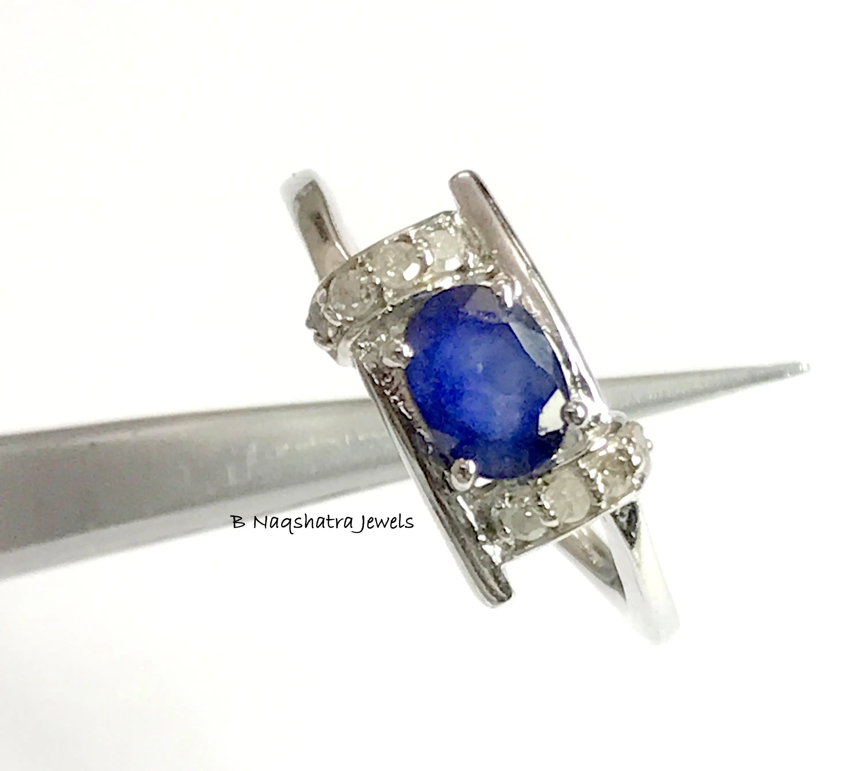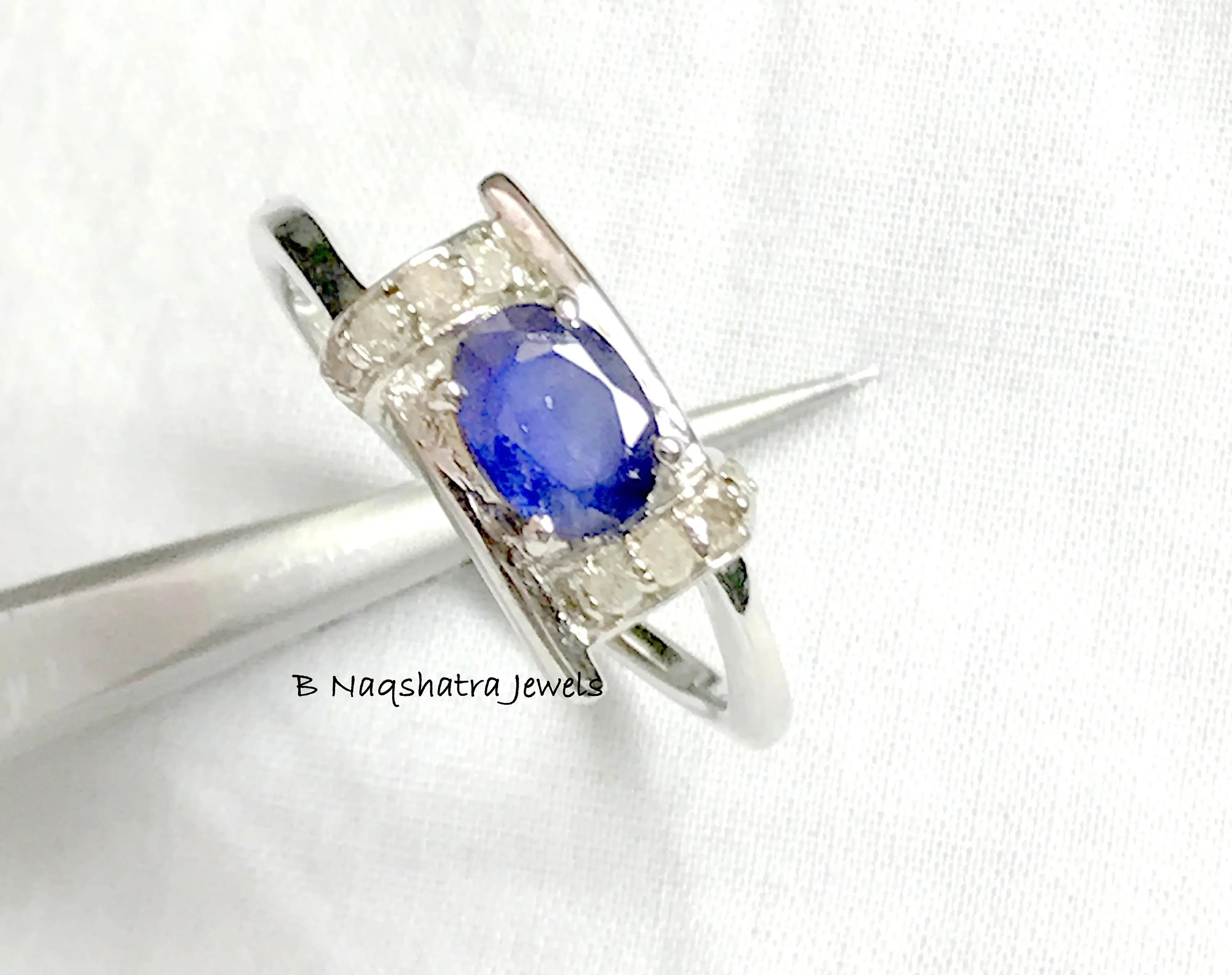BLUE SAPPHIRE RING -Natural Diamonds ,Birthstone Ring, Blue Birthstone, September Birthstone,Statement Ring.