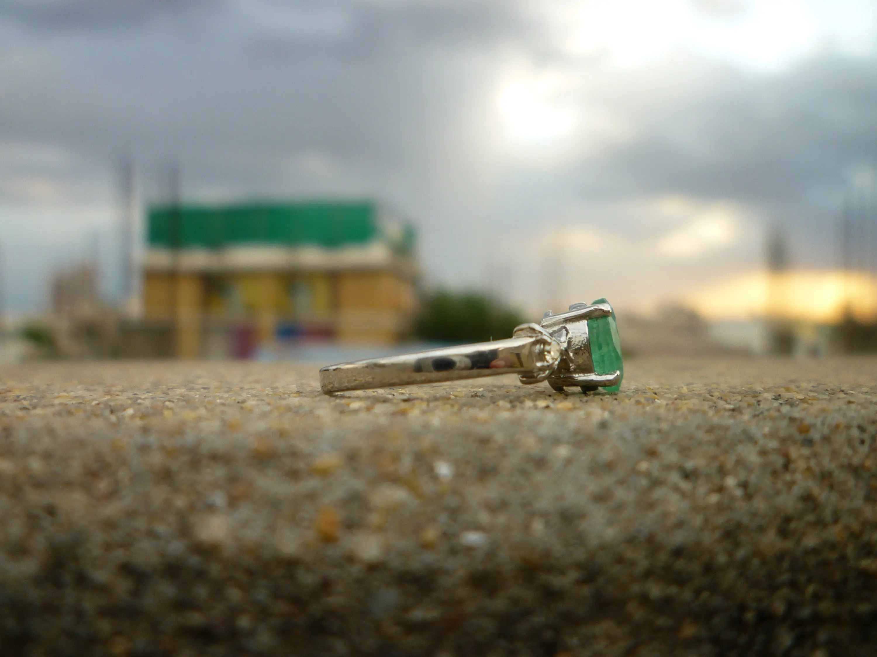 DAINTY EMERALD DIAMOND 14K white Gold Ring , May Birthstone , Emerald Engagement Ring , Stackable Ring , Emerald cut Octagon ....