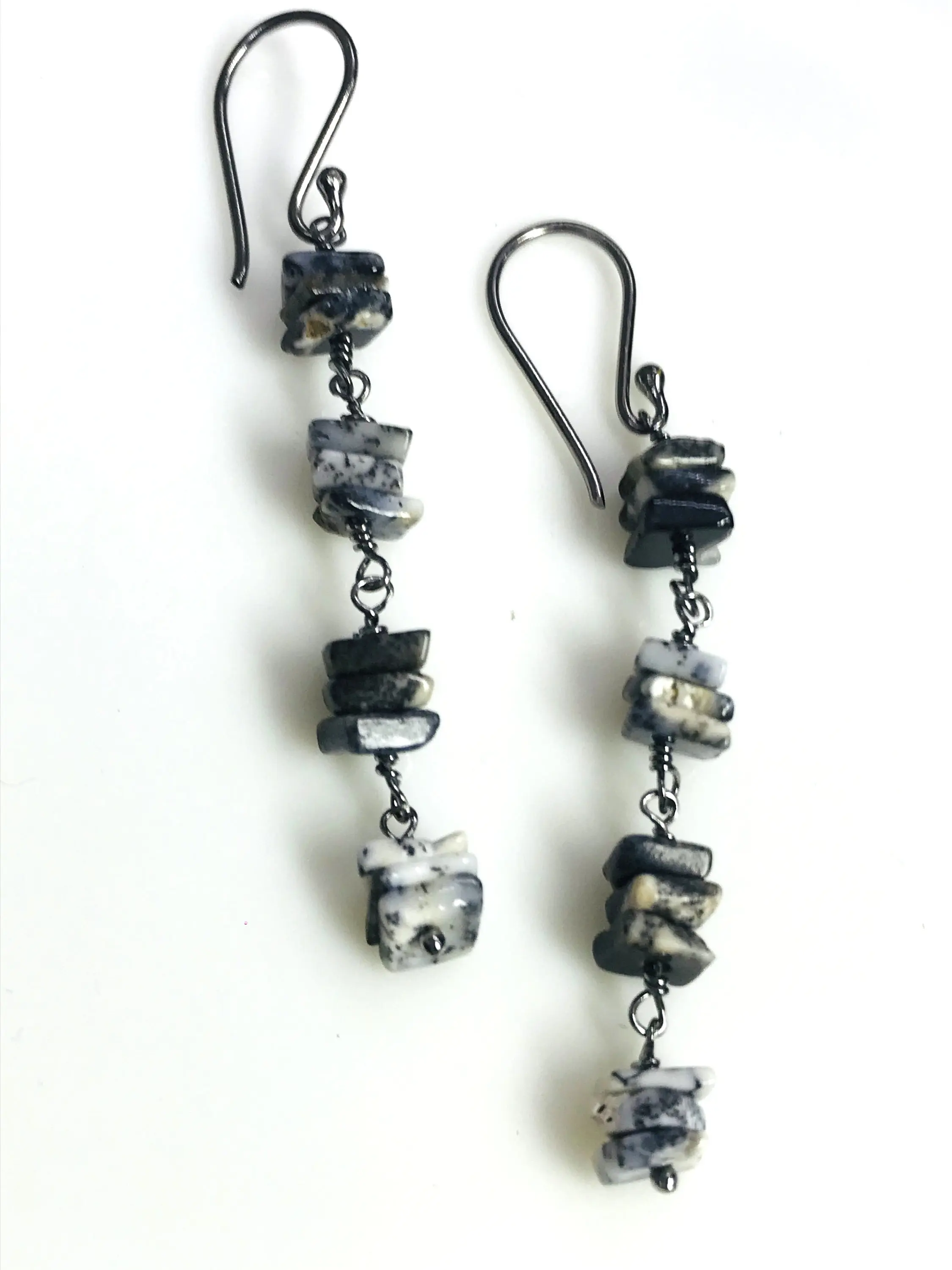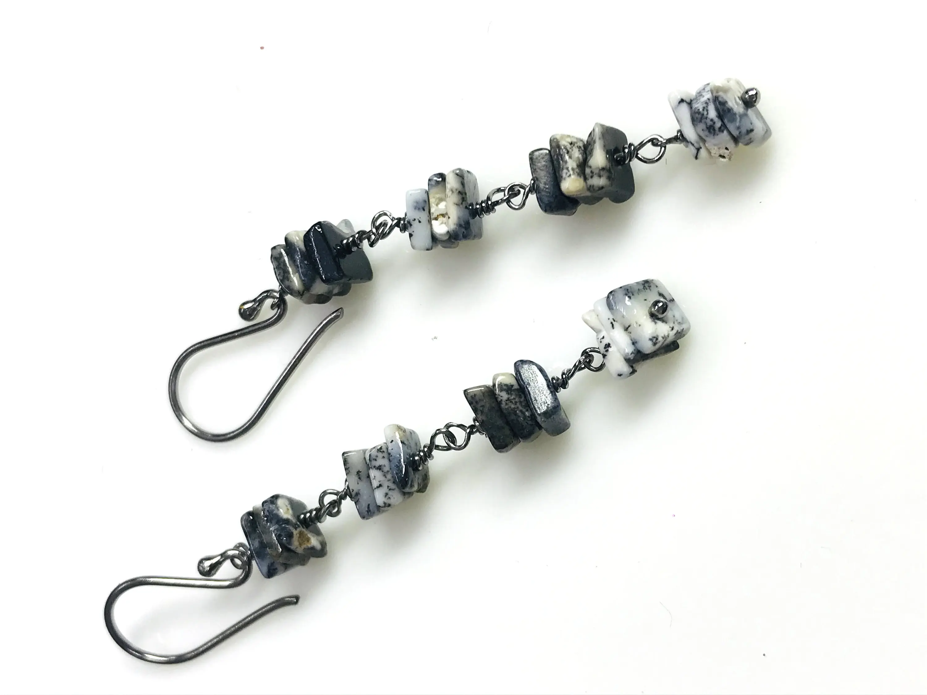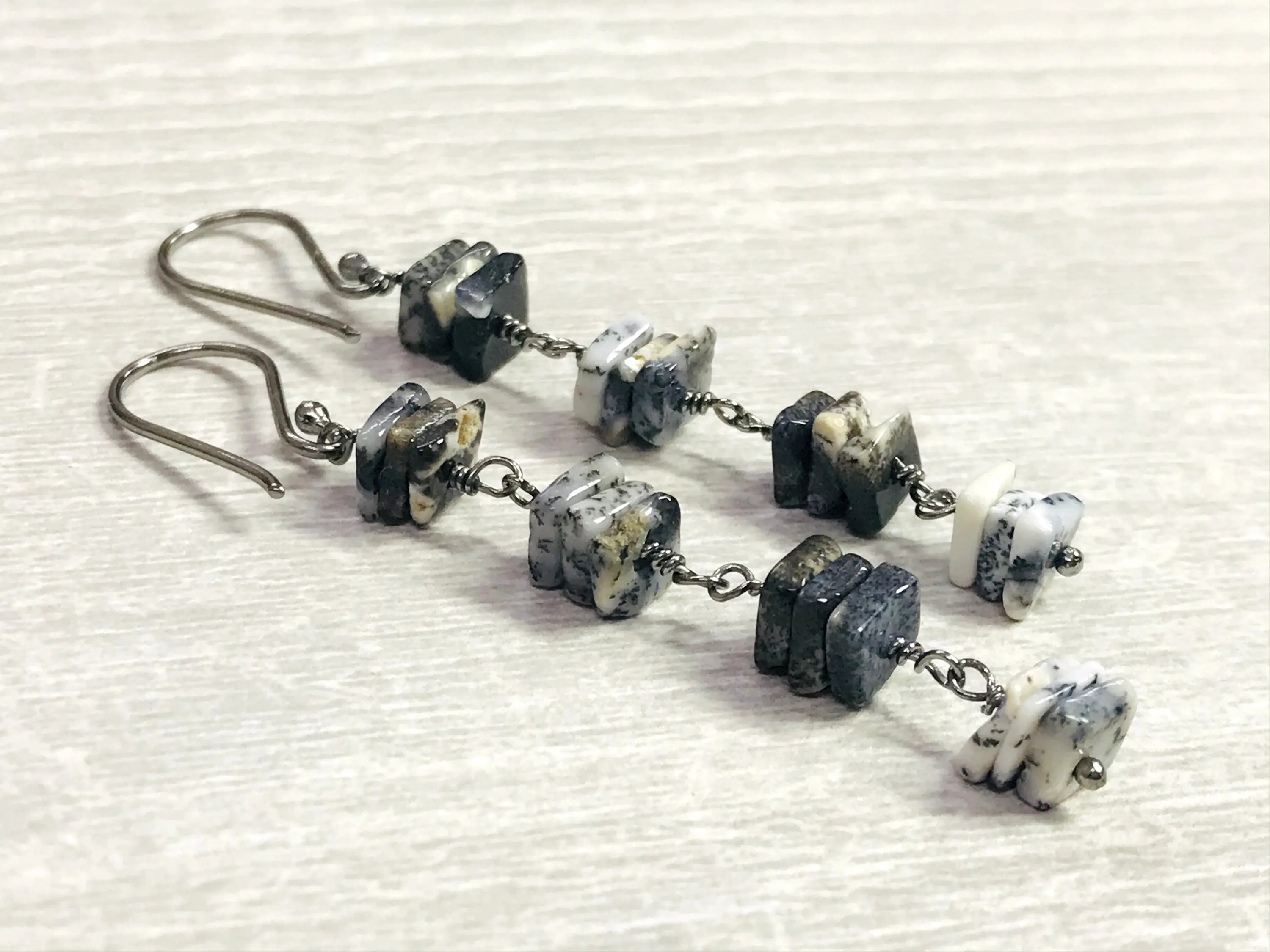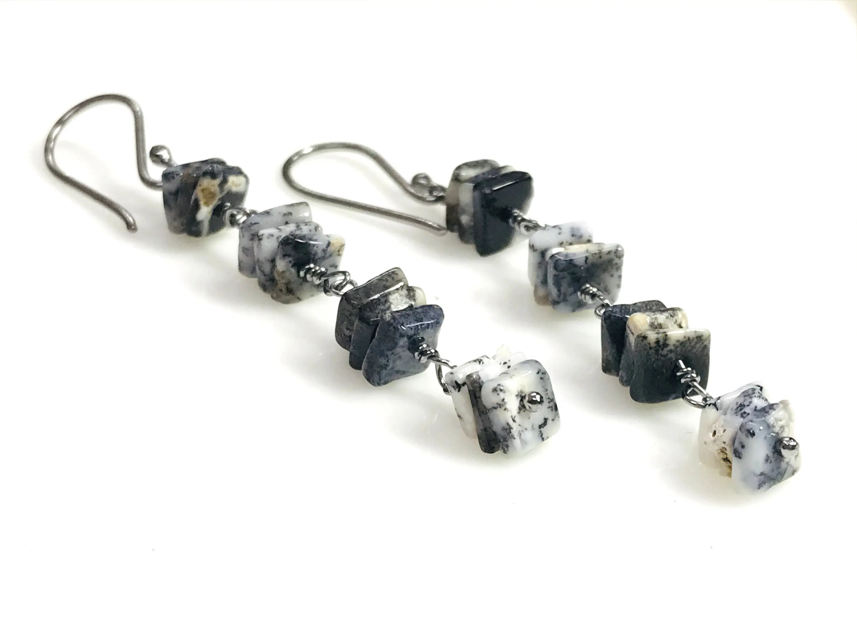 Modern Dendrite Opal Earrings, Geometric Jewelry, Spike Earrings, Dangle Drop Earrings, Statement Jewelry, Wedding Earrings, Gifts for Her