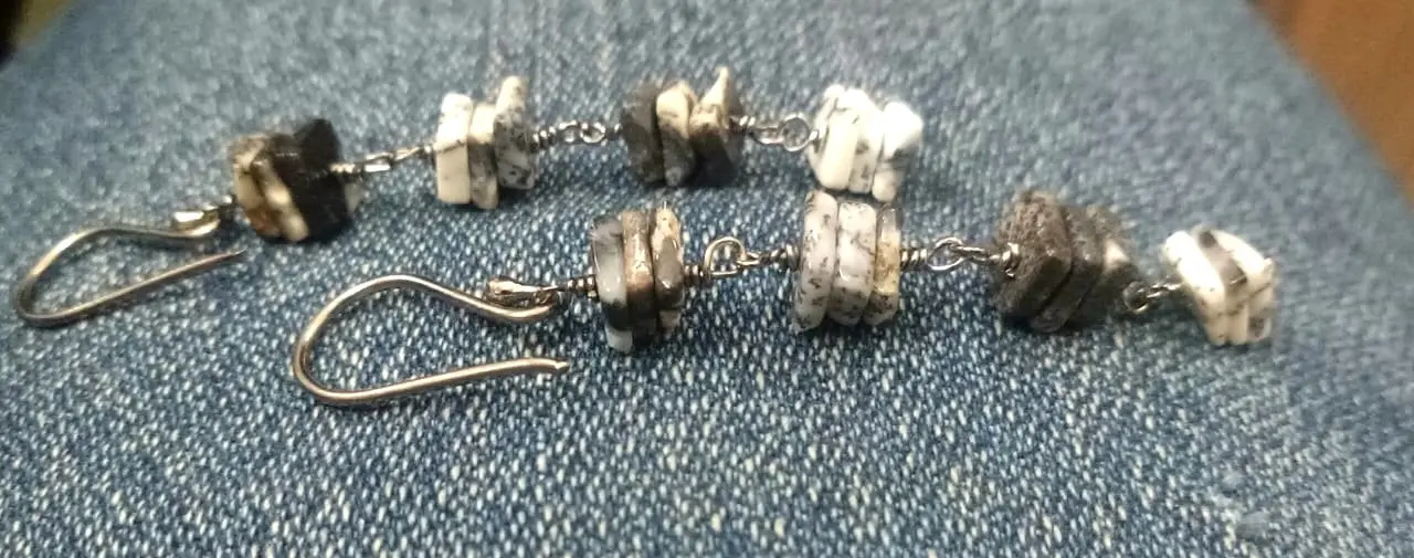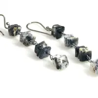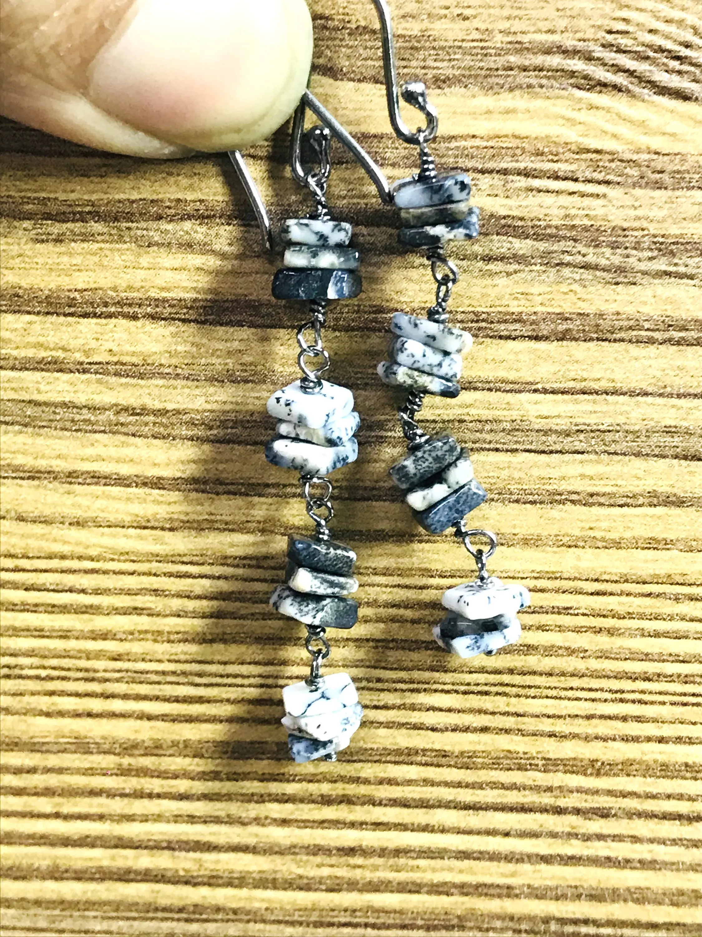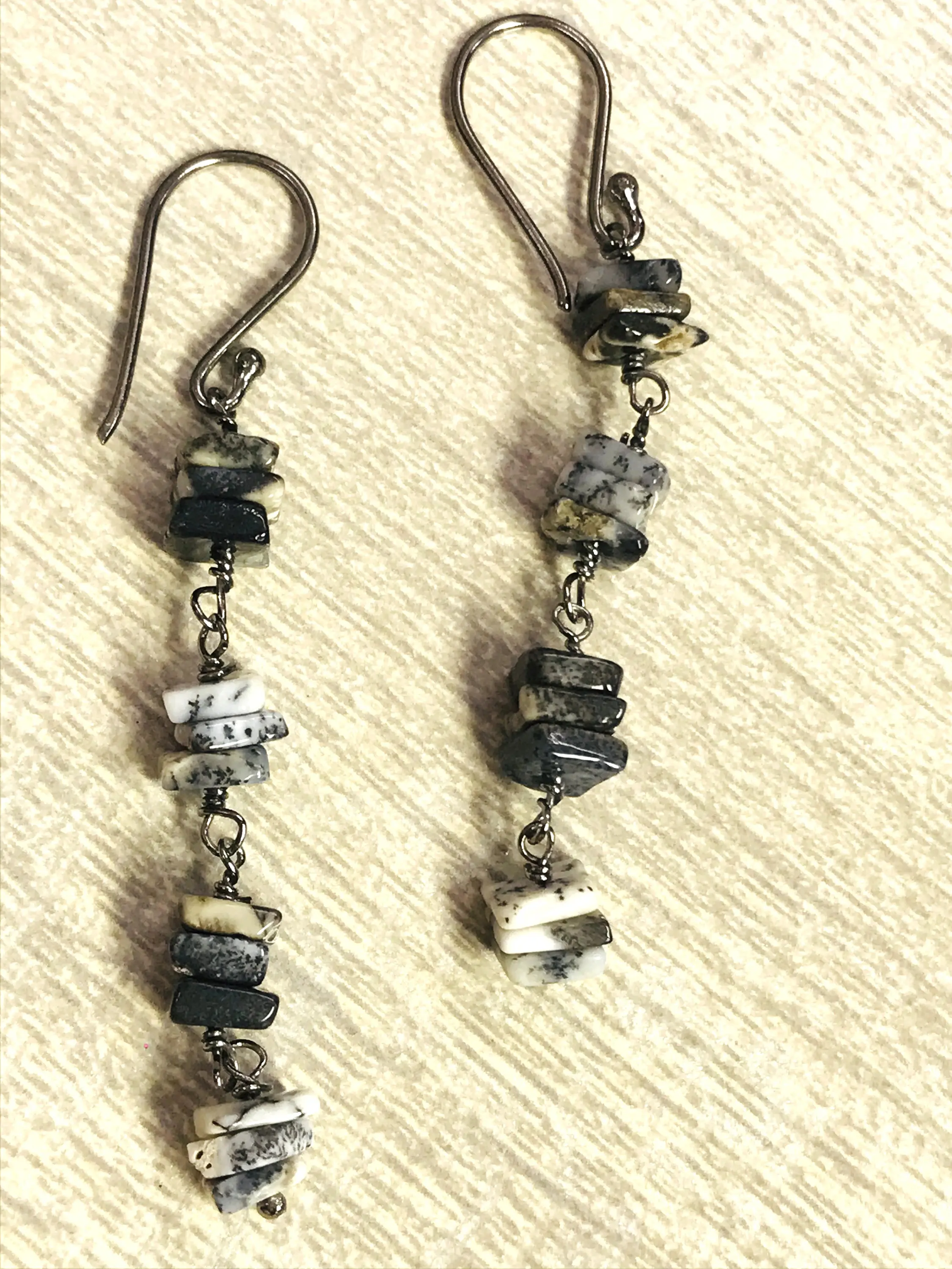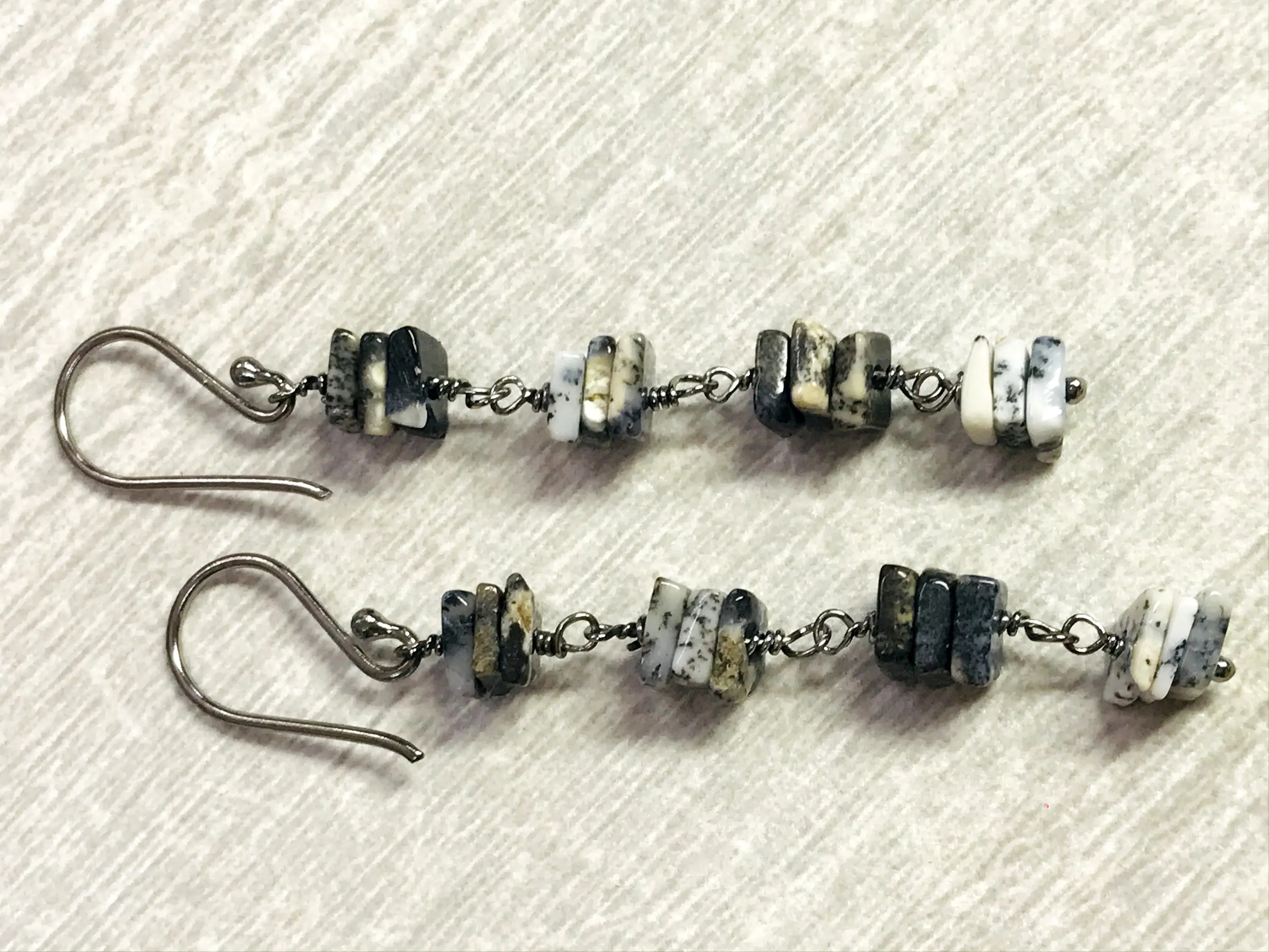 Modern Dendrite Opal Earrings, Geometric Jewelry, Spike Earrings, Dangle Drop Earrings, Statement Jewelry, Wedding Earrings, Gifts for Her