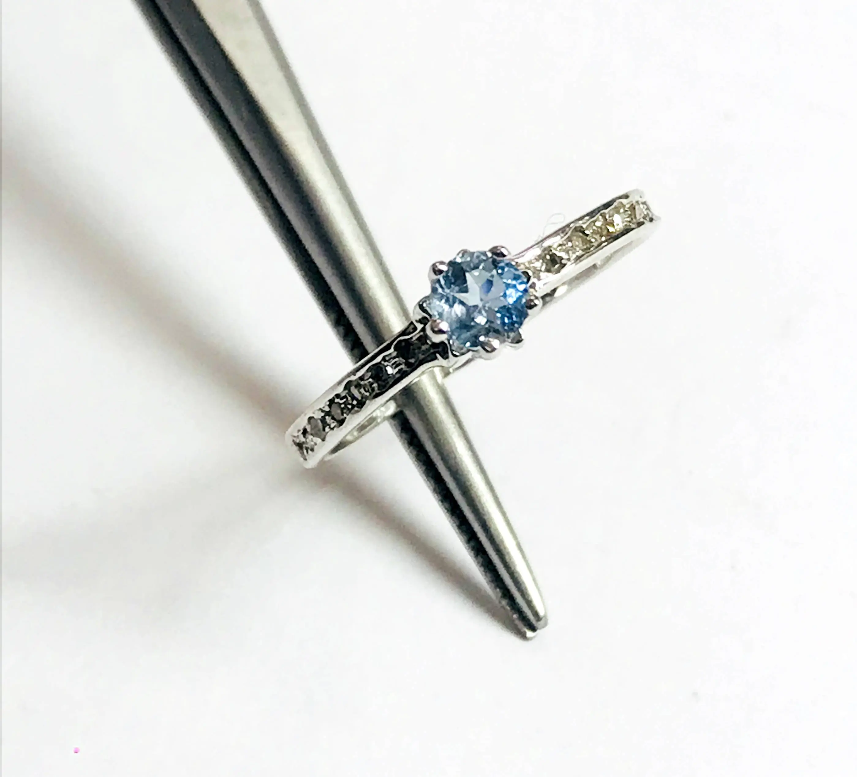 DAINTY AQUAMARINE DIAMONDS 925 Sterling Silver Ring ,March Birthstone,Wedding Gift,Promise Ring for Her,Lovely gift for Loved ones