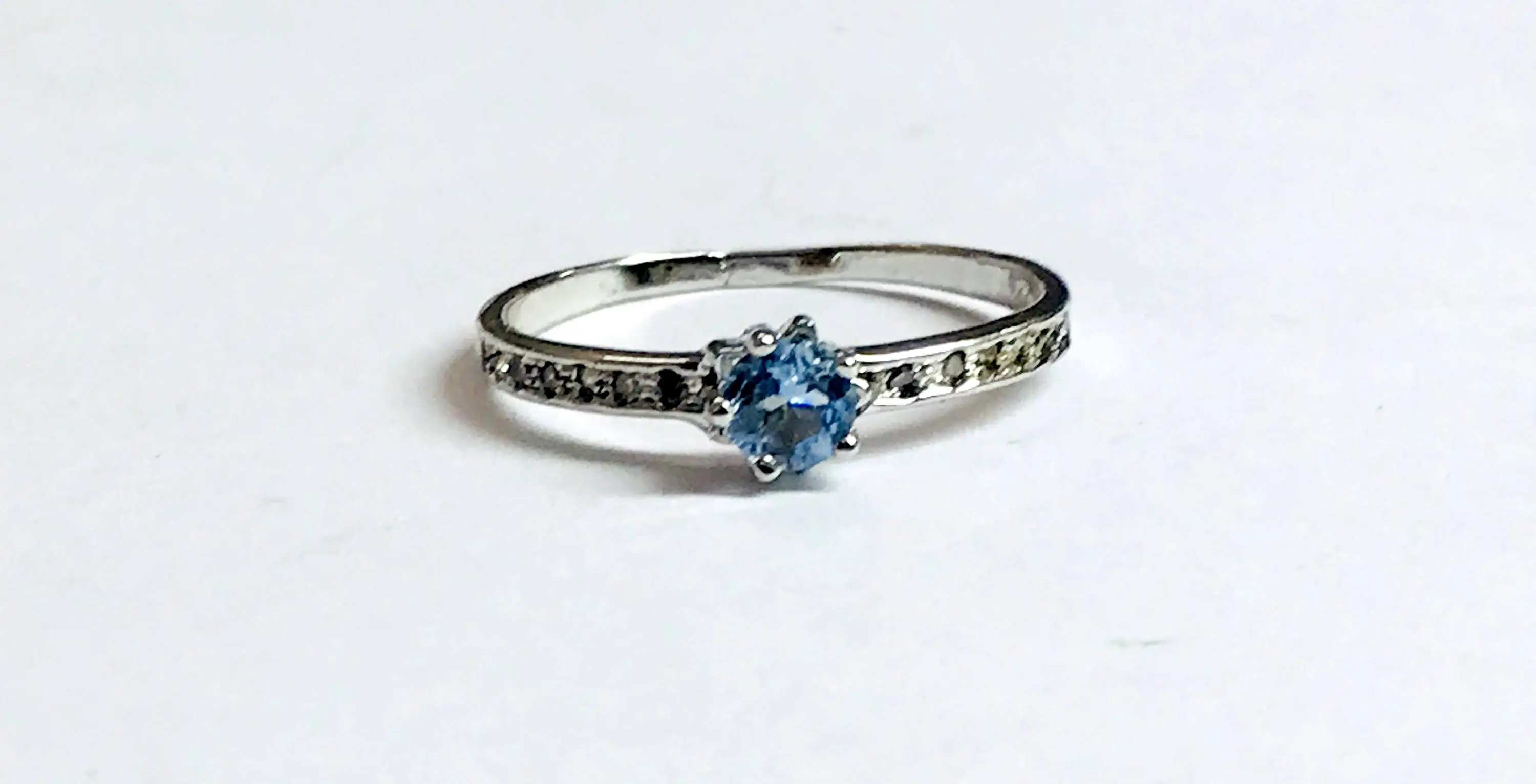 DAINTY AQUAMARINE DIAMONDS Sterling Silver Ring ,March Birthstone,Wedding Gift,Promise Ring for Her,Lovely gift for Loved ones ....
