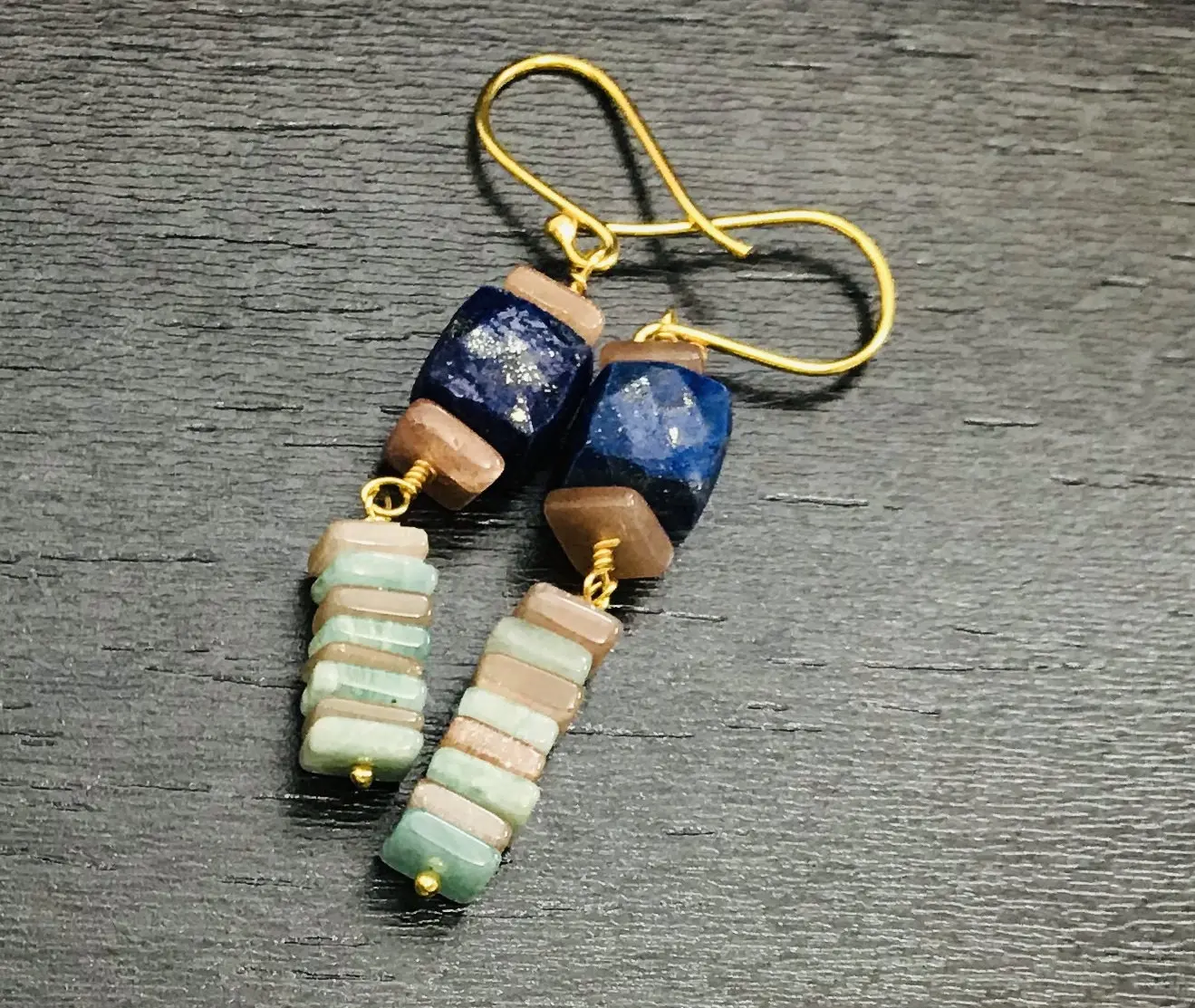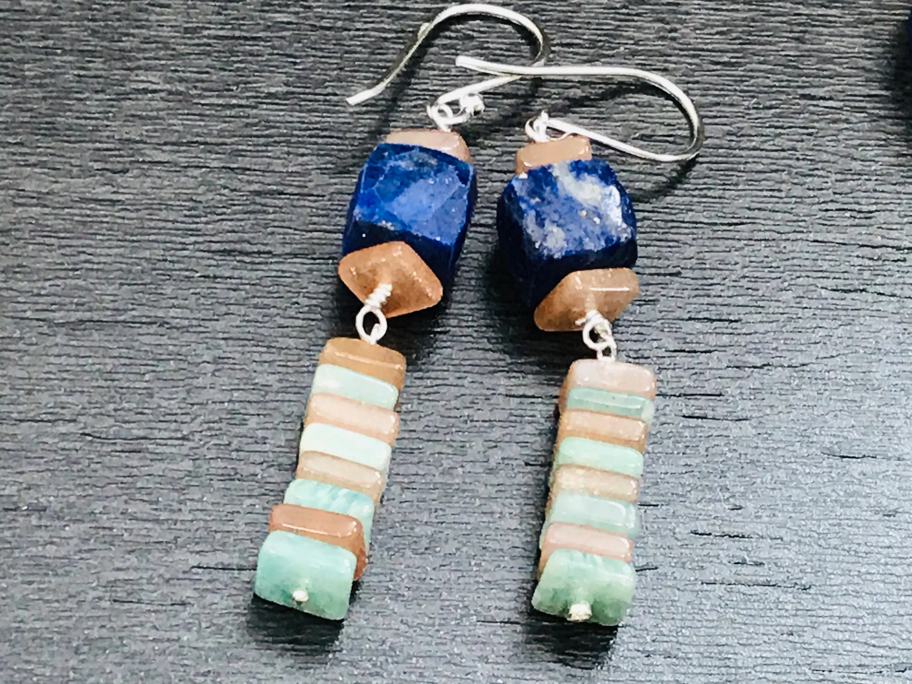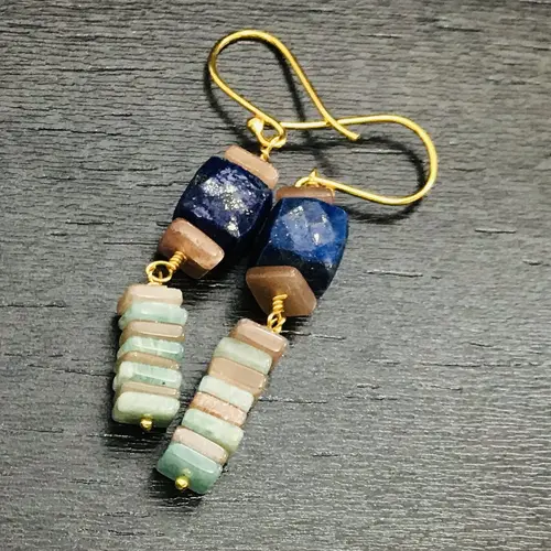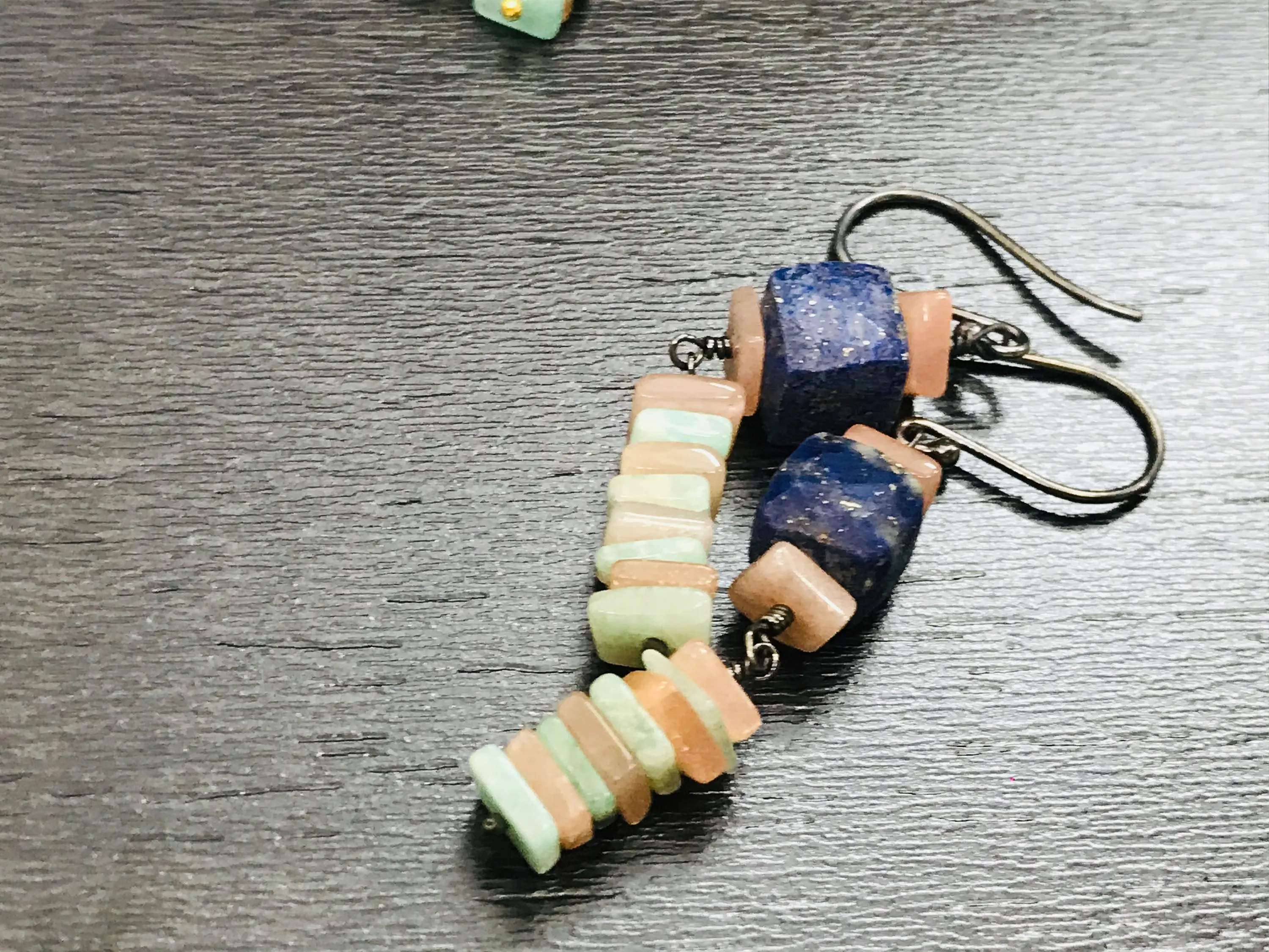 ✦Gemstone:Red Moonstone-Amazonite chips- Lapis Lazuli