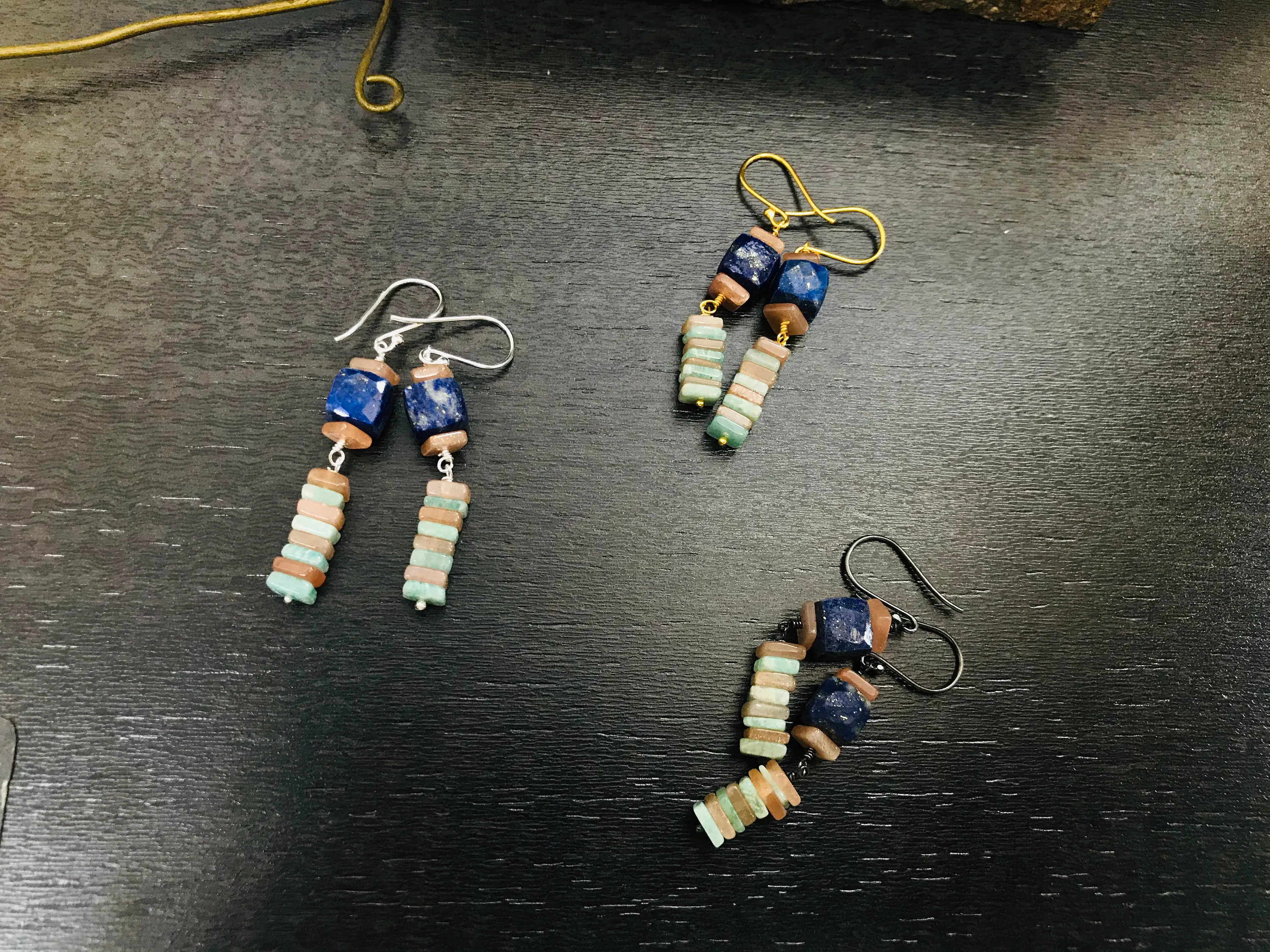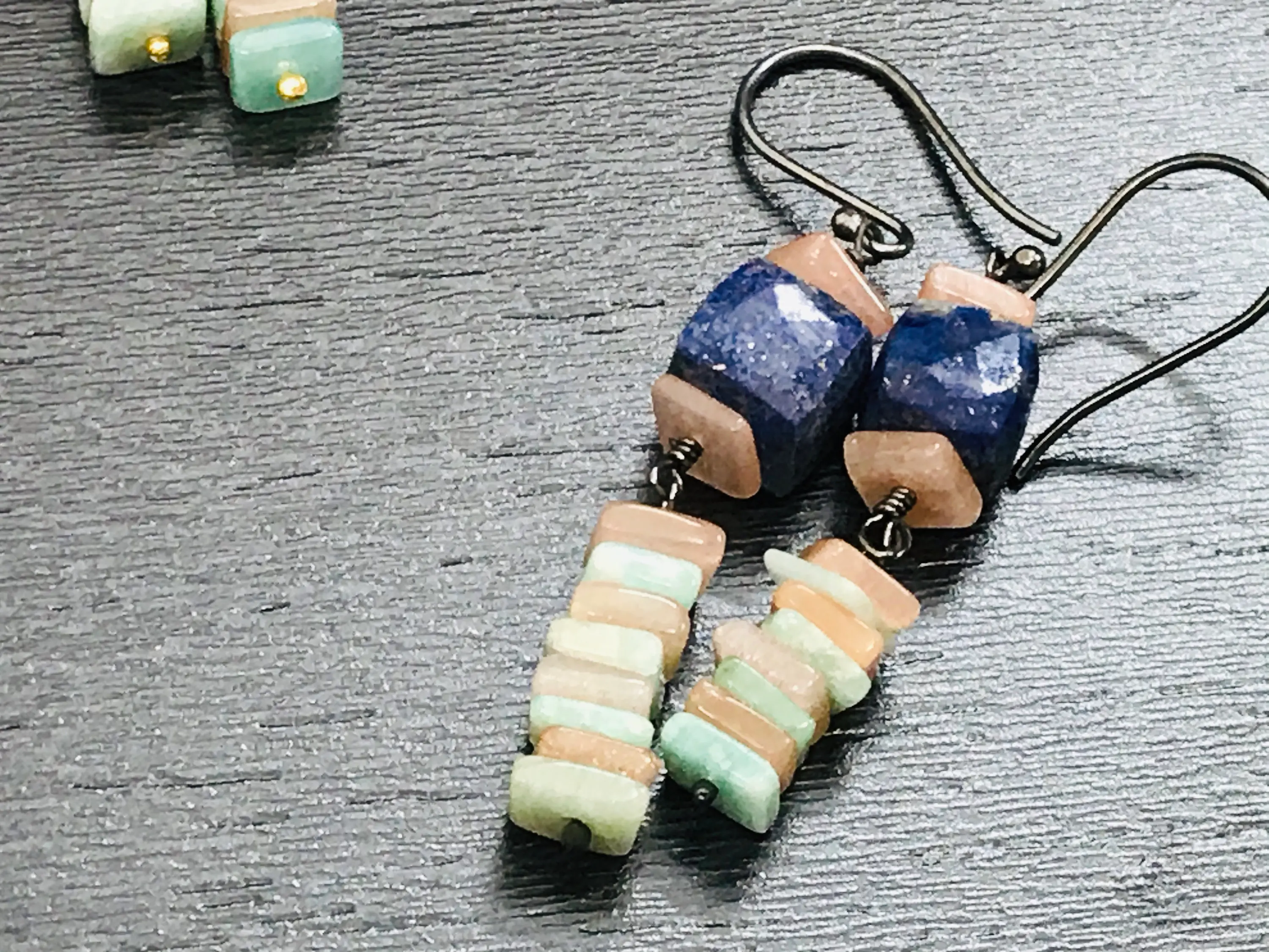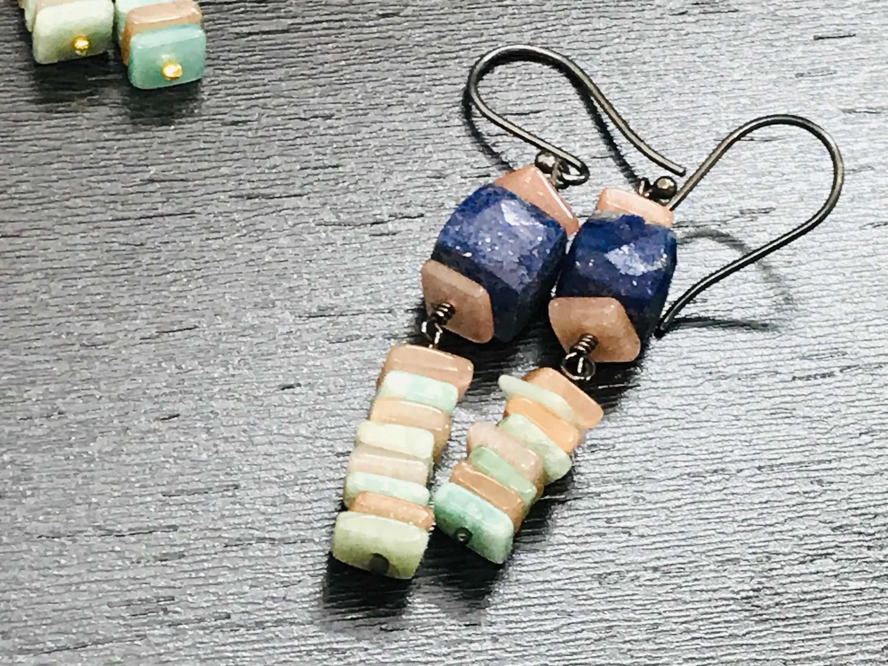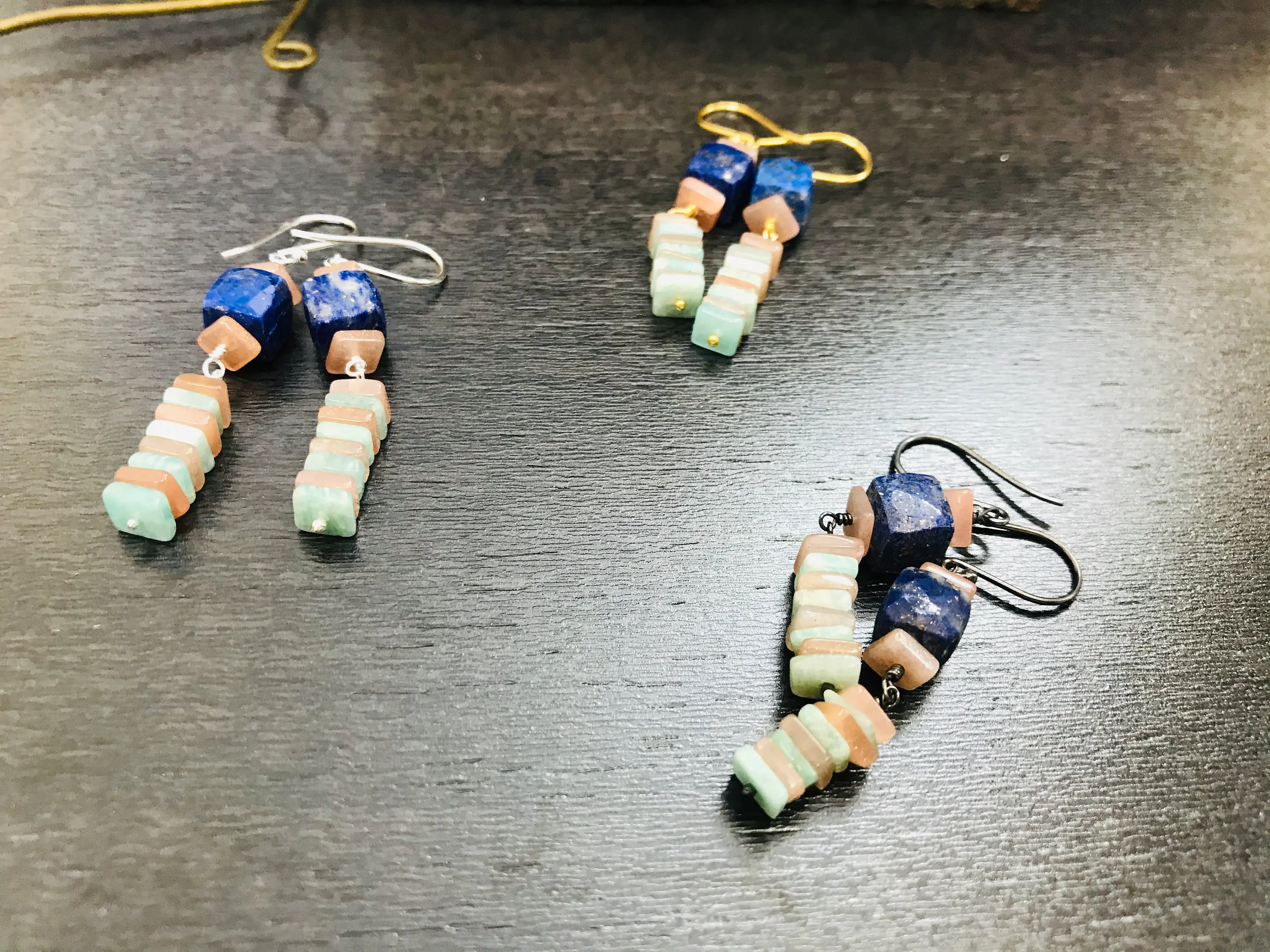 ✦Gemstone:Red Moonstone-Amazonite chips- Lapis Lazuli