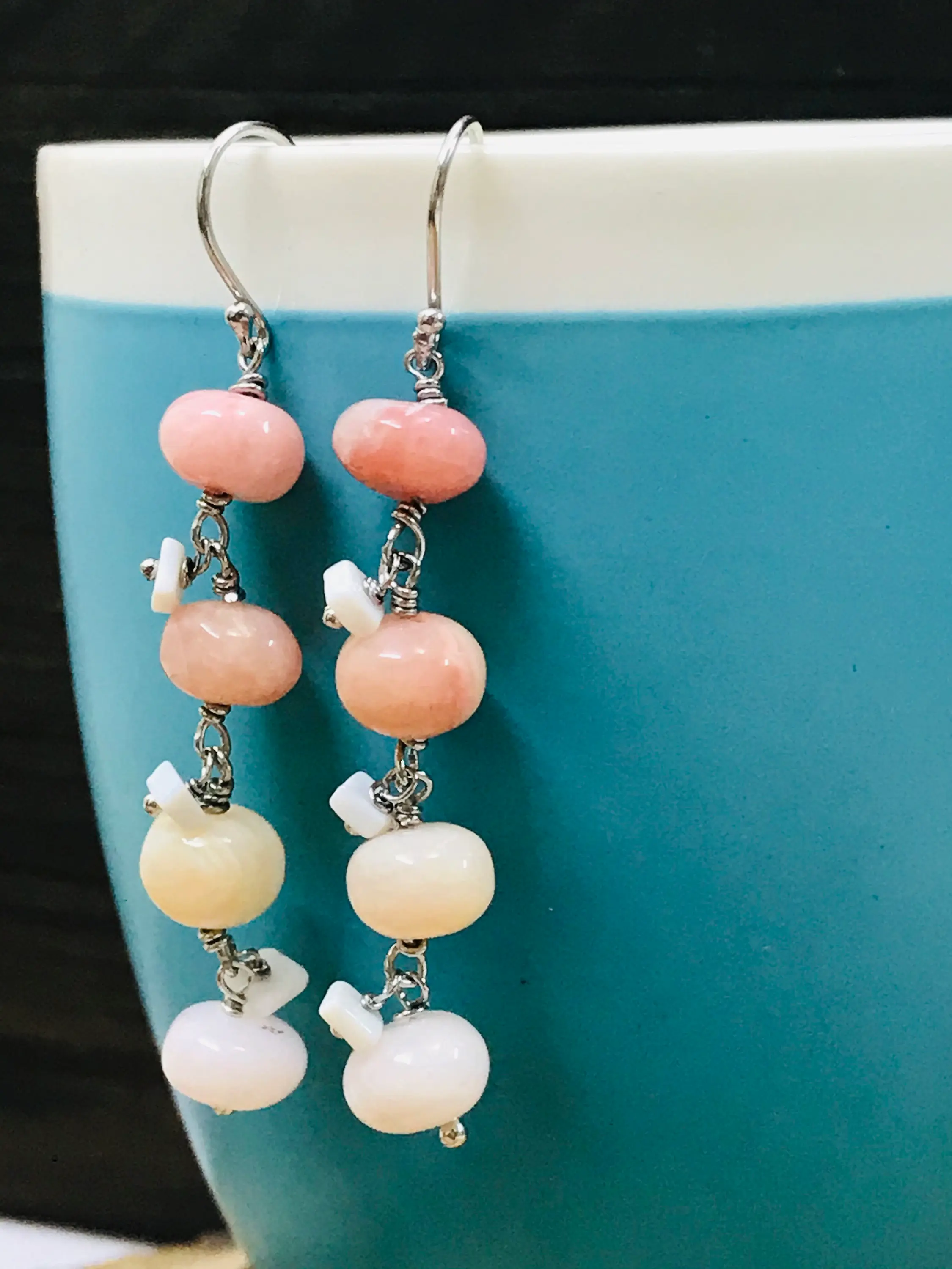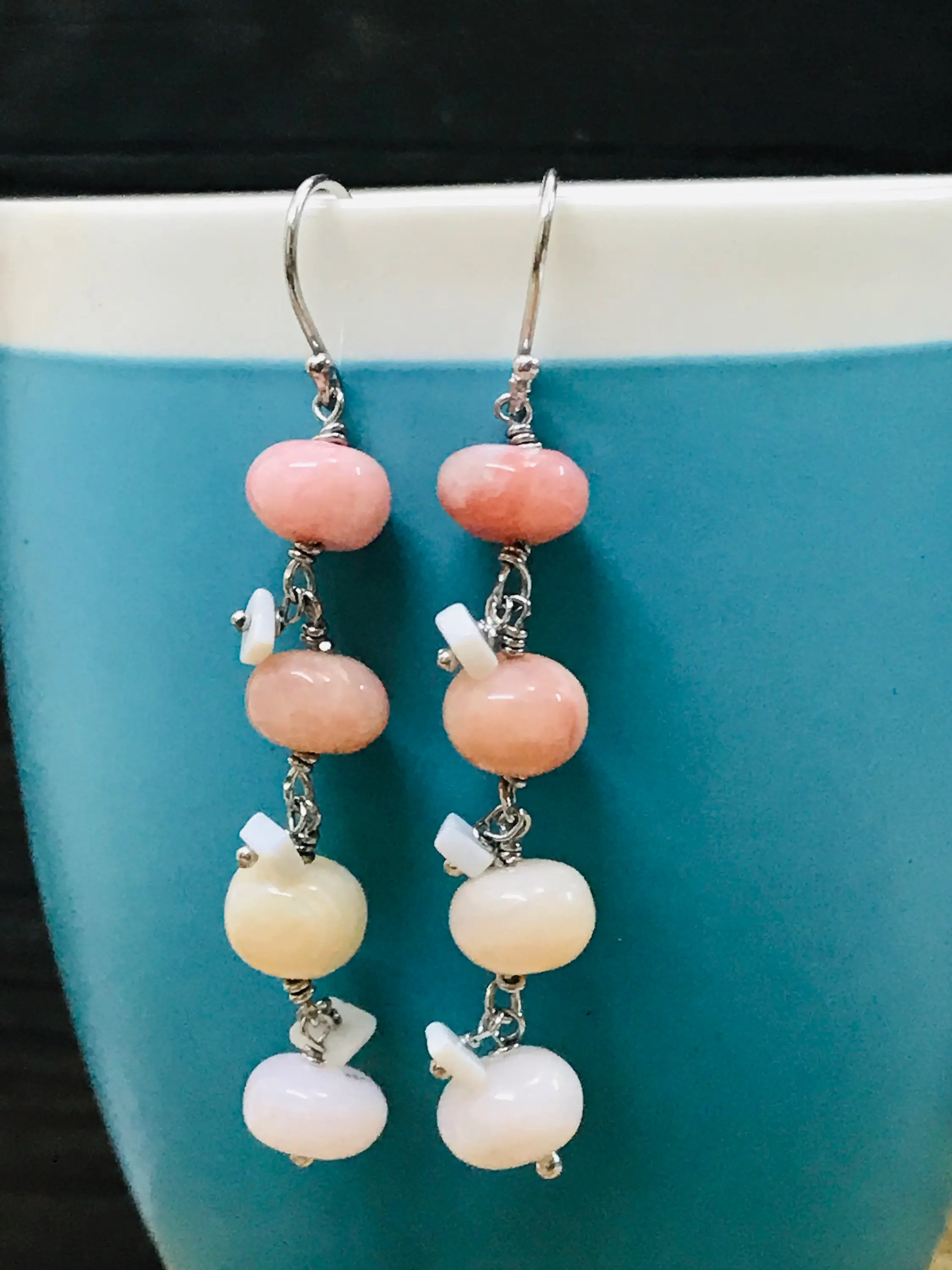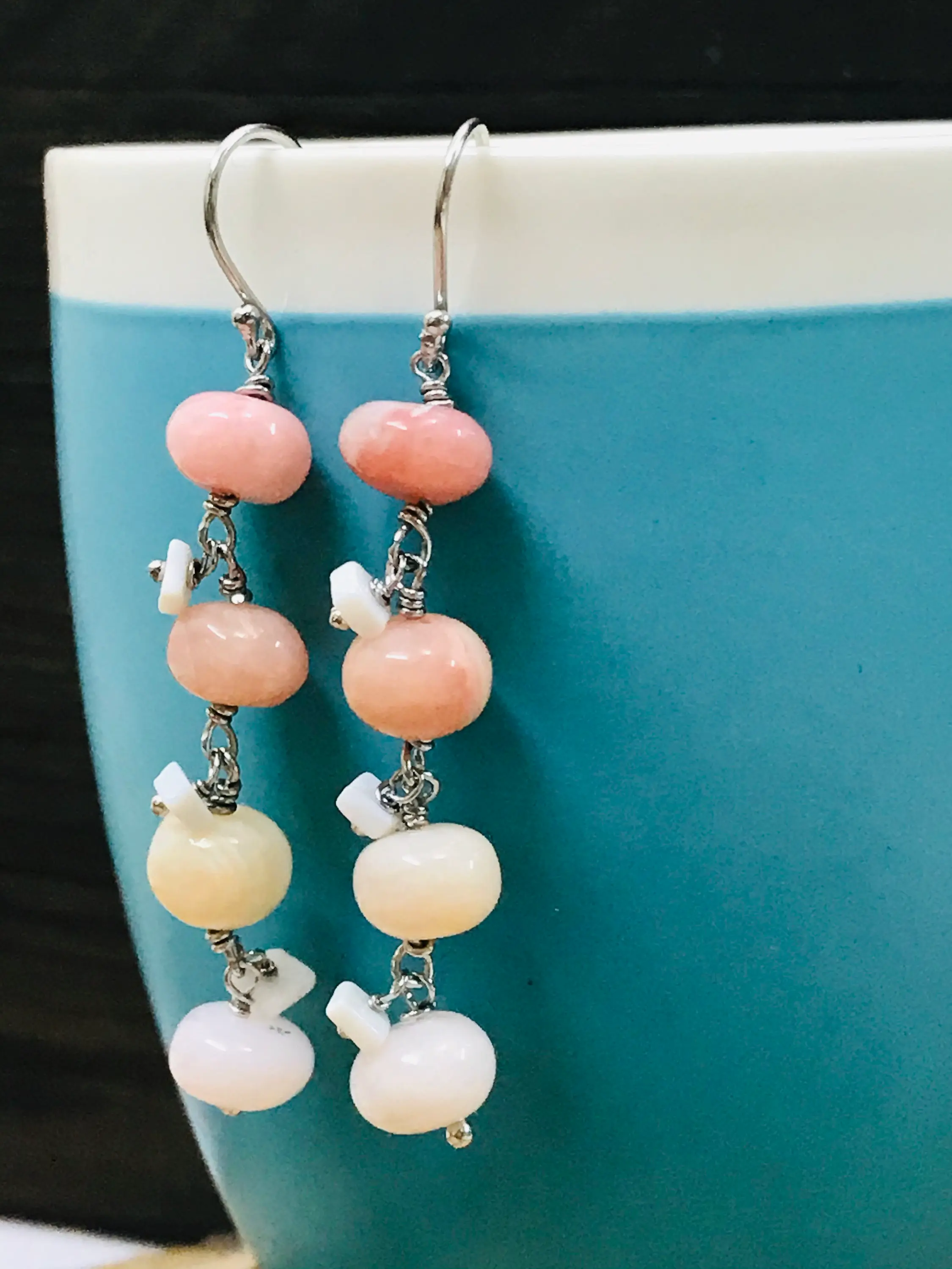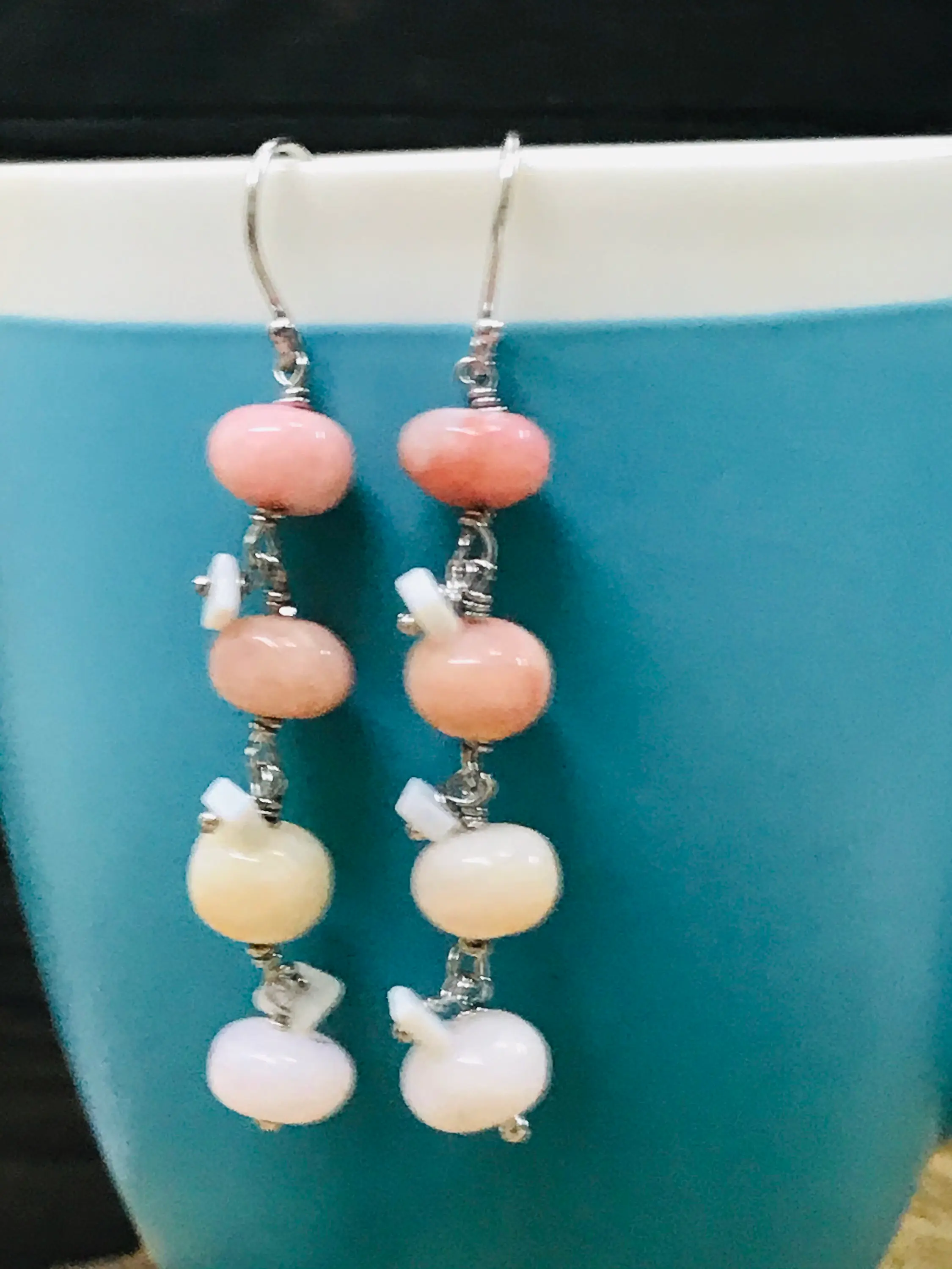 PINK Opal Earrings, BEADED Jewelry, Spike Earrings, Dangle Drop Earrings, Statement Jewelry, VALENTINE Gifts for Her