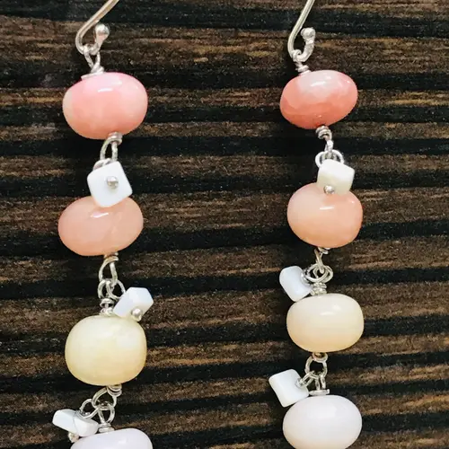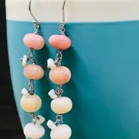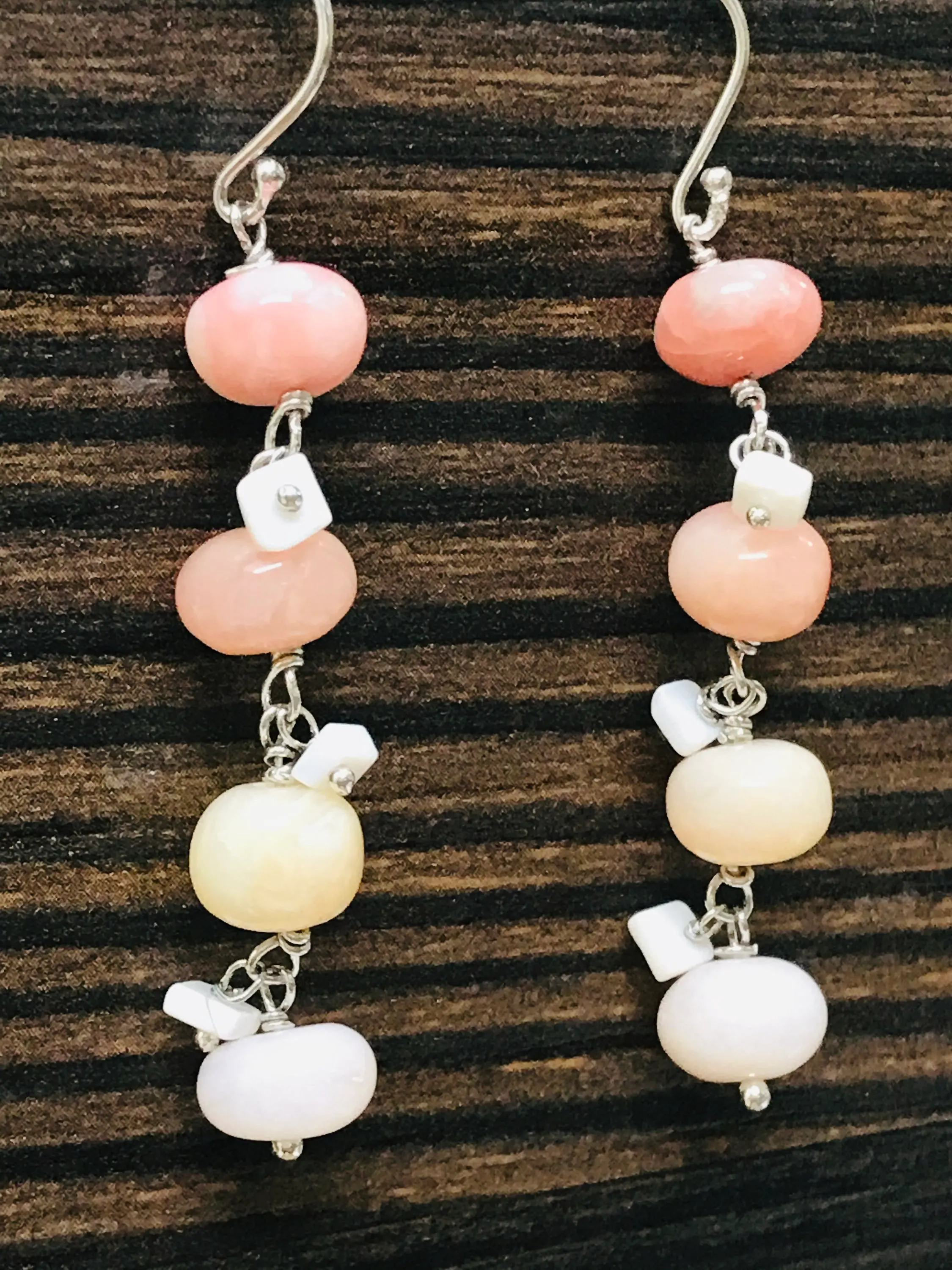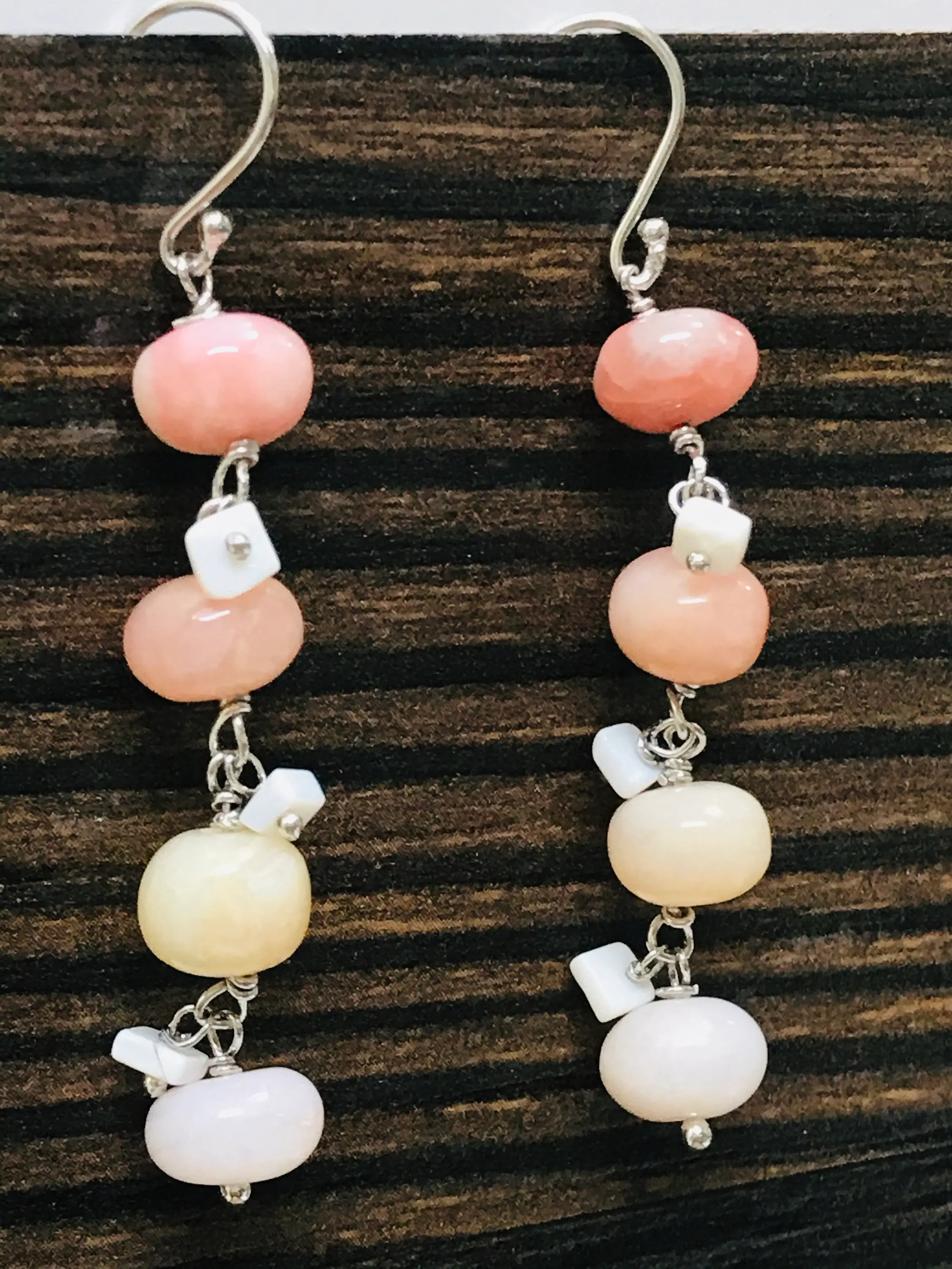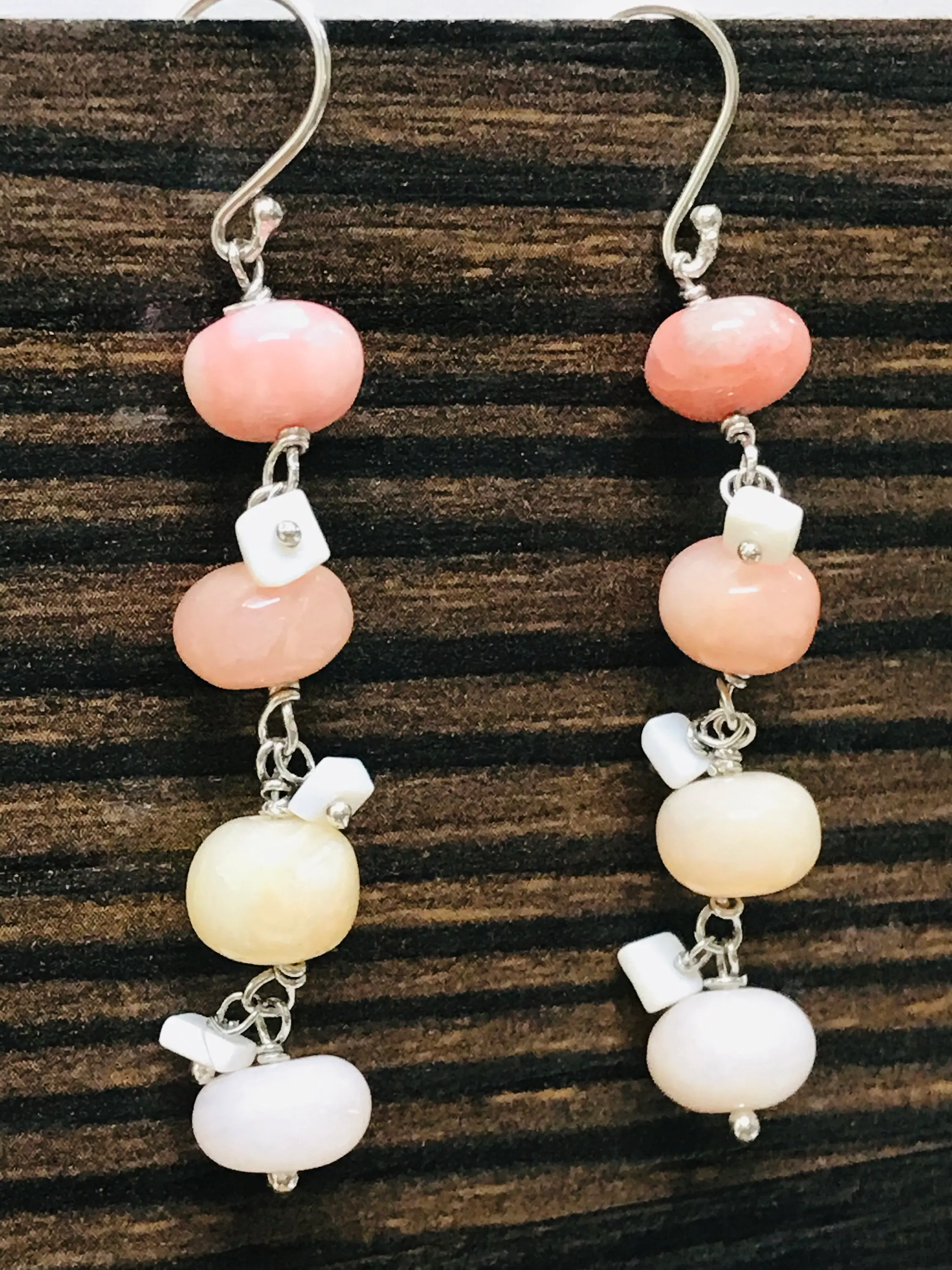PINK Opal Earrings, BEADED Jewelry, Spike Earrings, Dangle Drop Earrings, Statement Jewelry, VALENTINE Gifts for Her