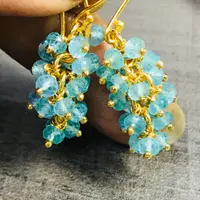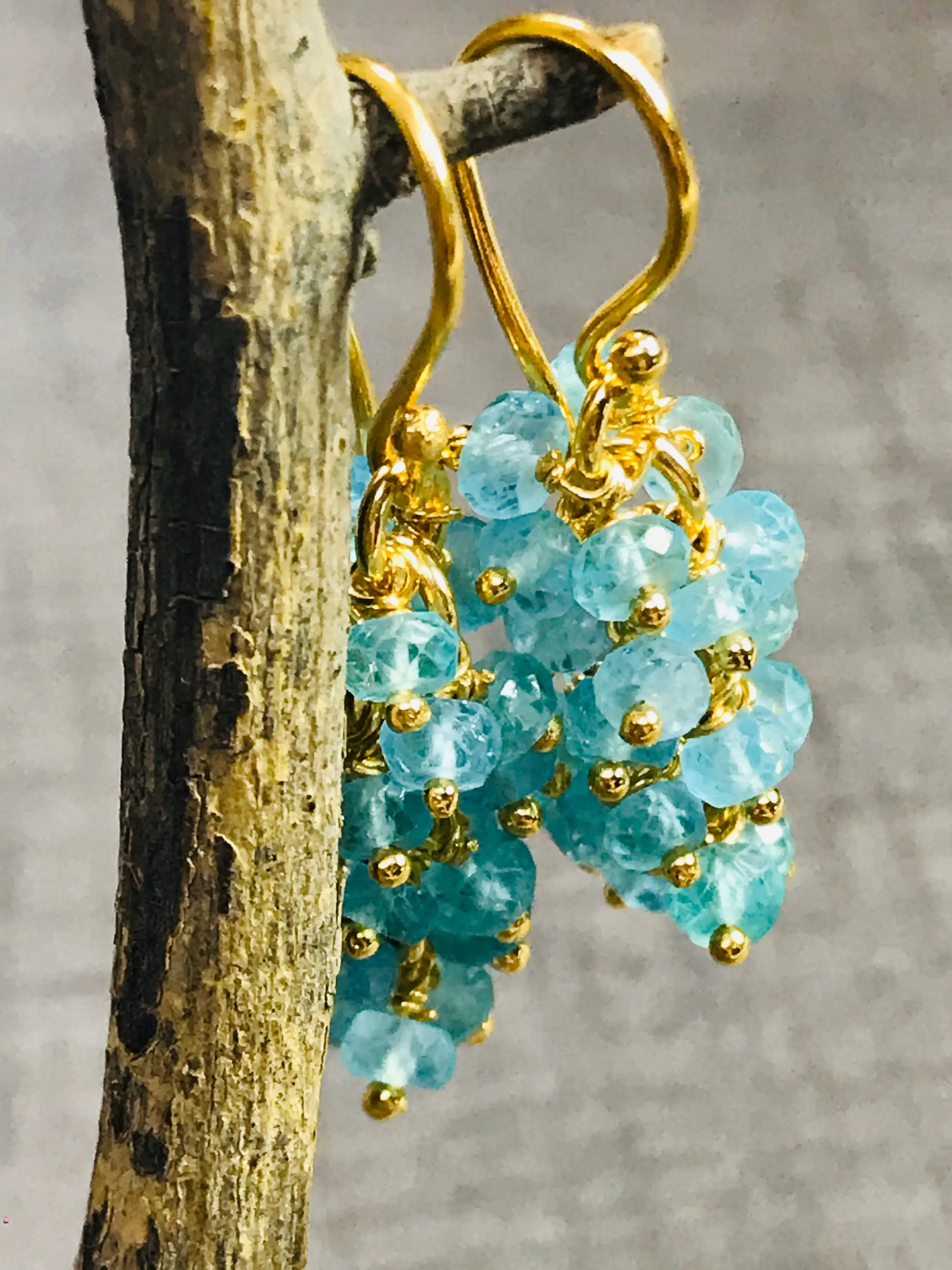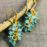 APATITE BEADS EARRINGS,Birthday Gifts, Drop n Dangle Earrings ,Grapes Bunch ,sky Blue Handmade Earrings.