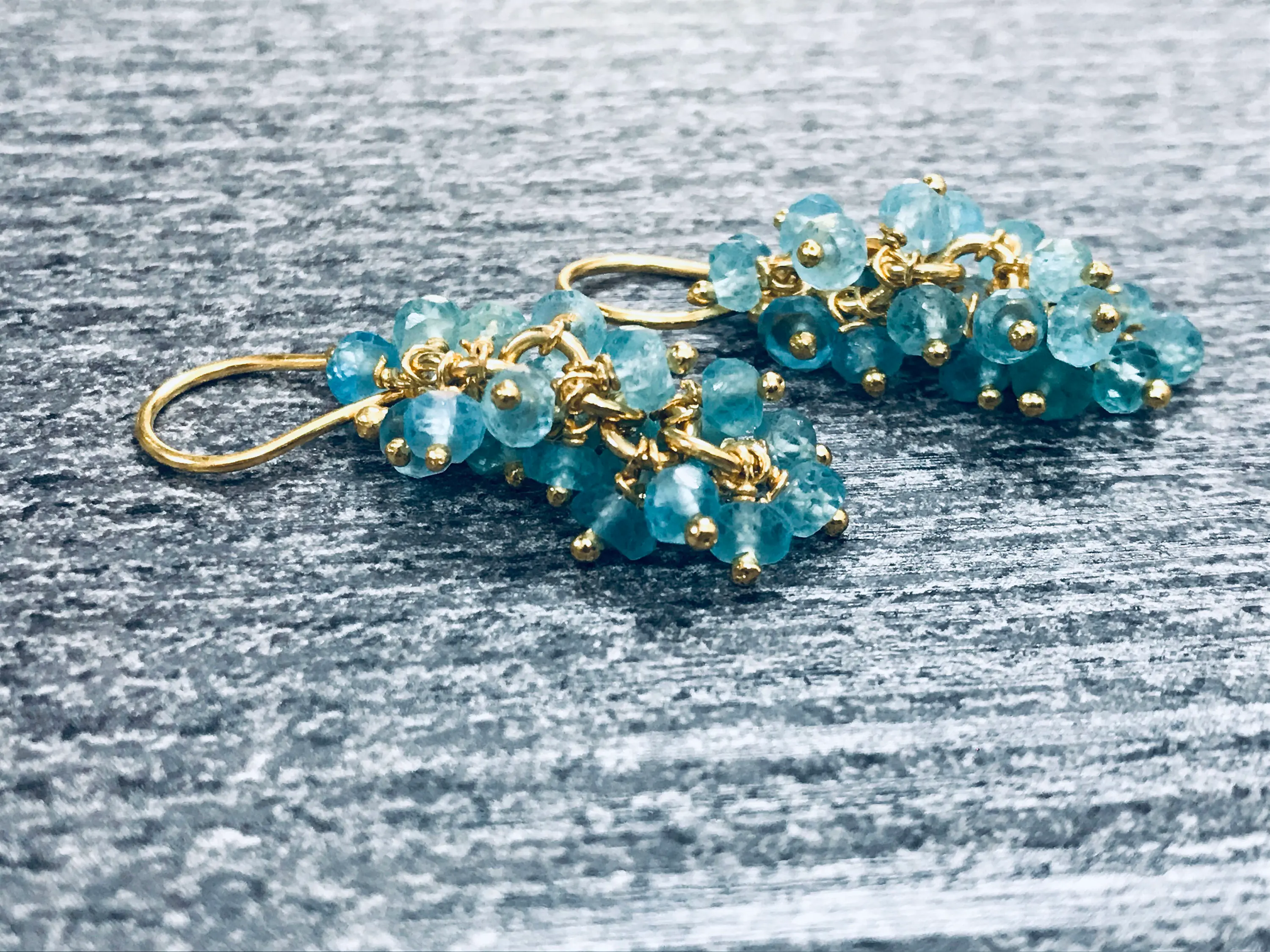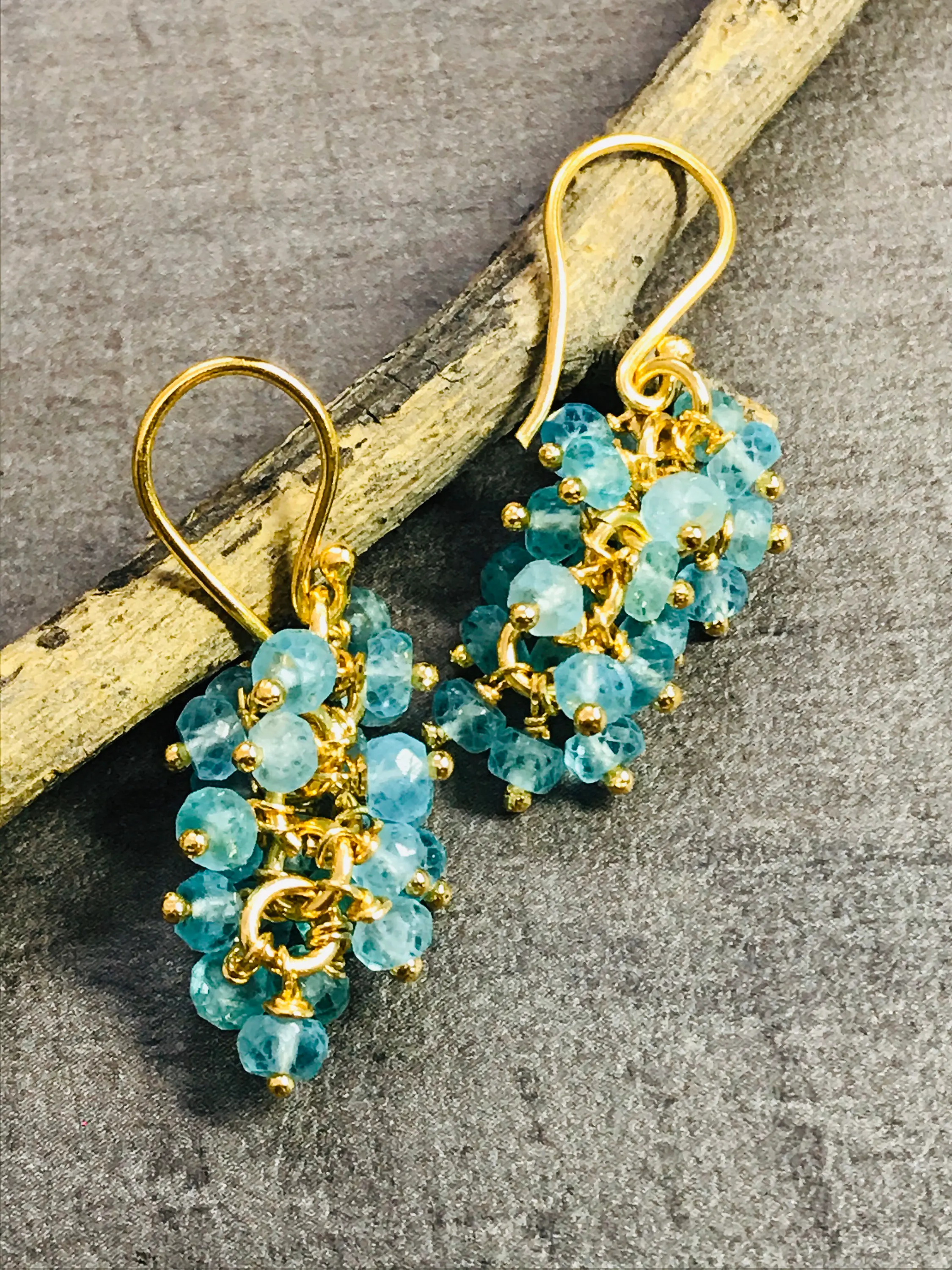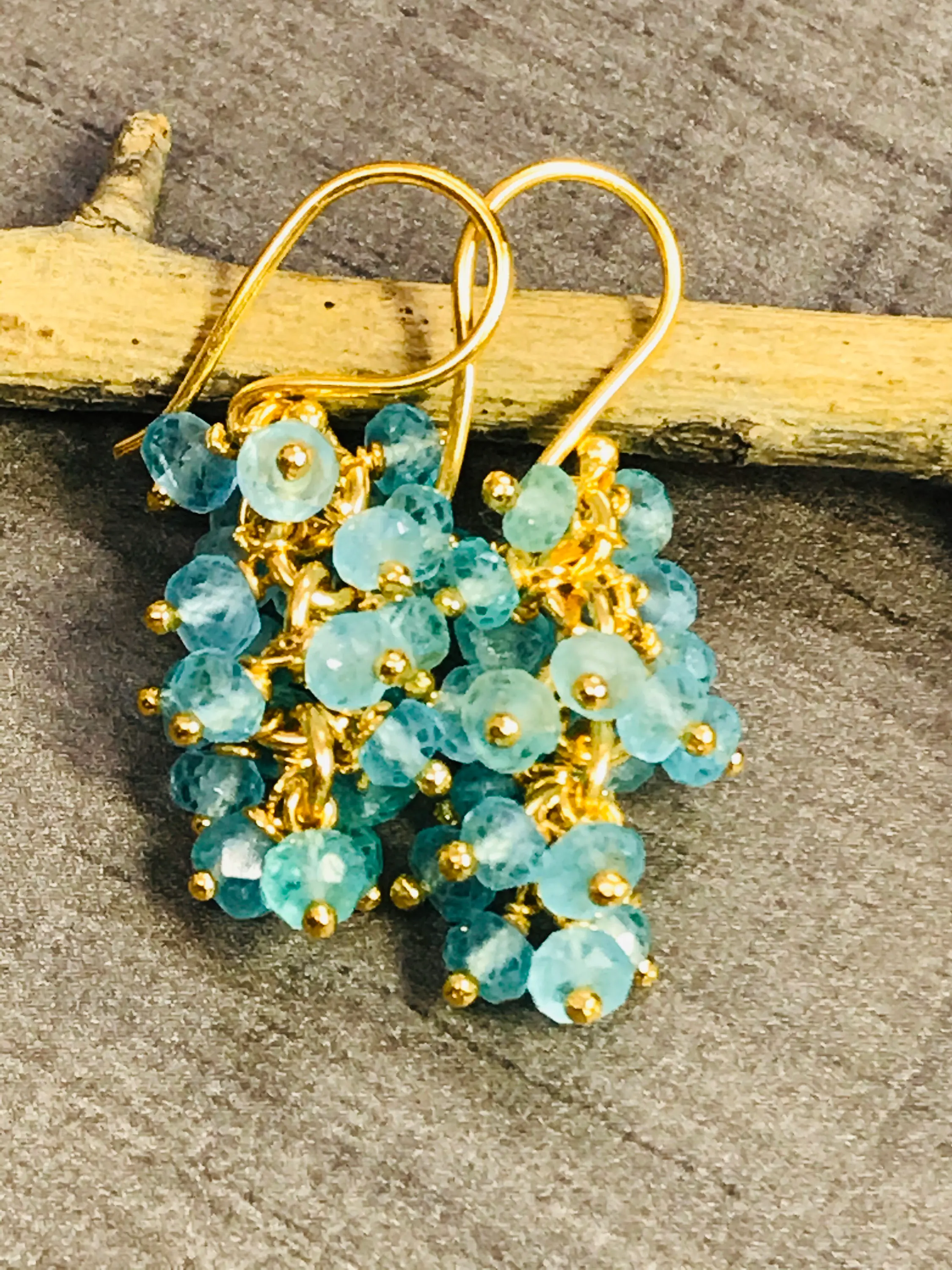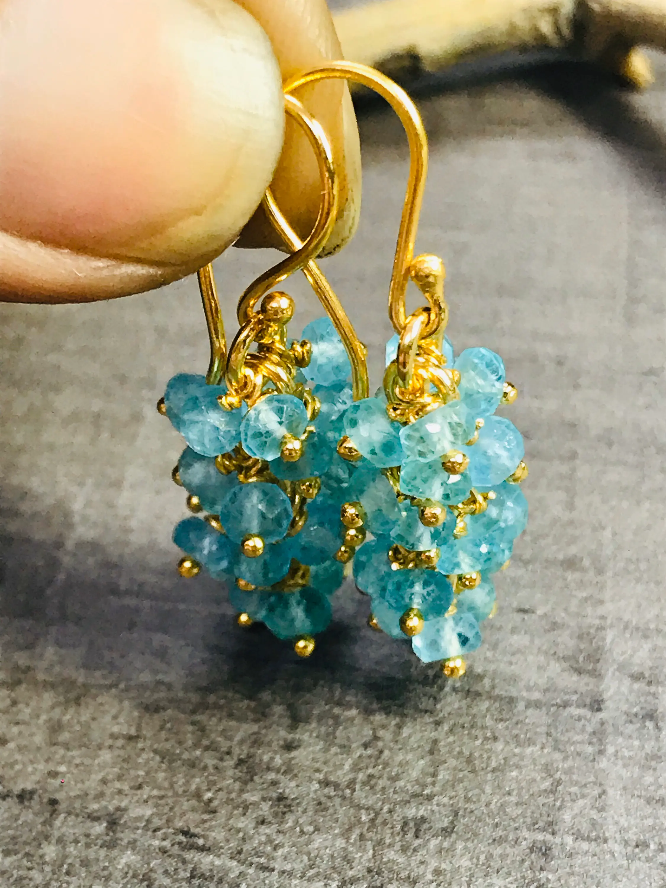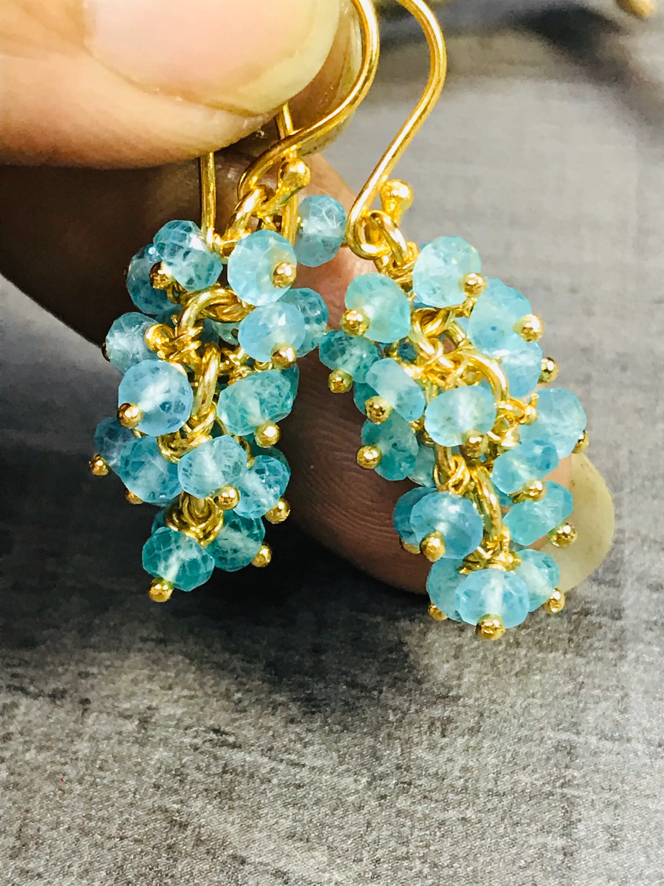 APATITE beads bunch EARRINGS,birthday gifts, drop n dangle grapes bunch sky blue handmade Dangle earrings