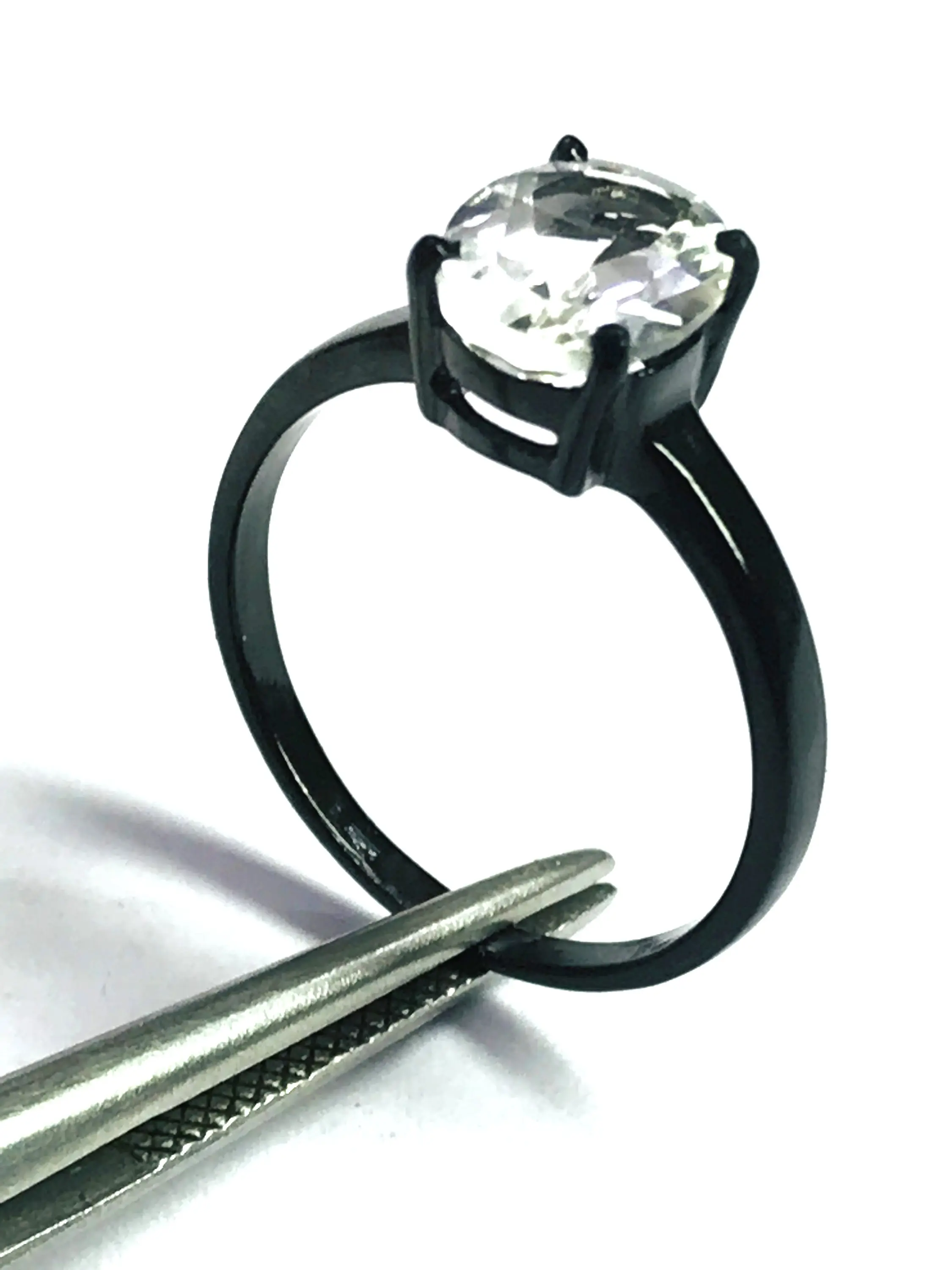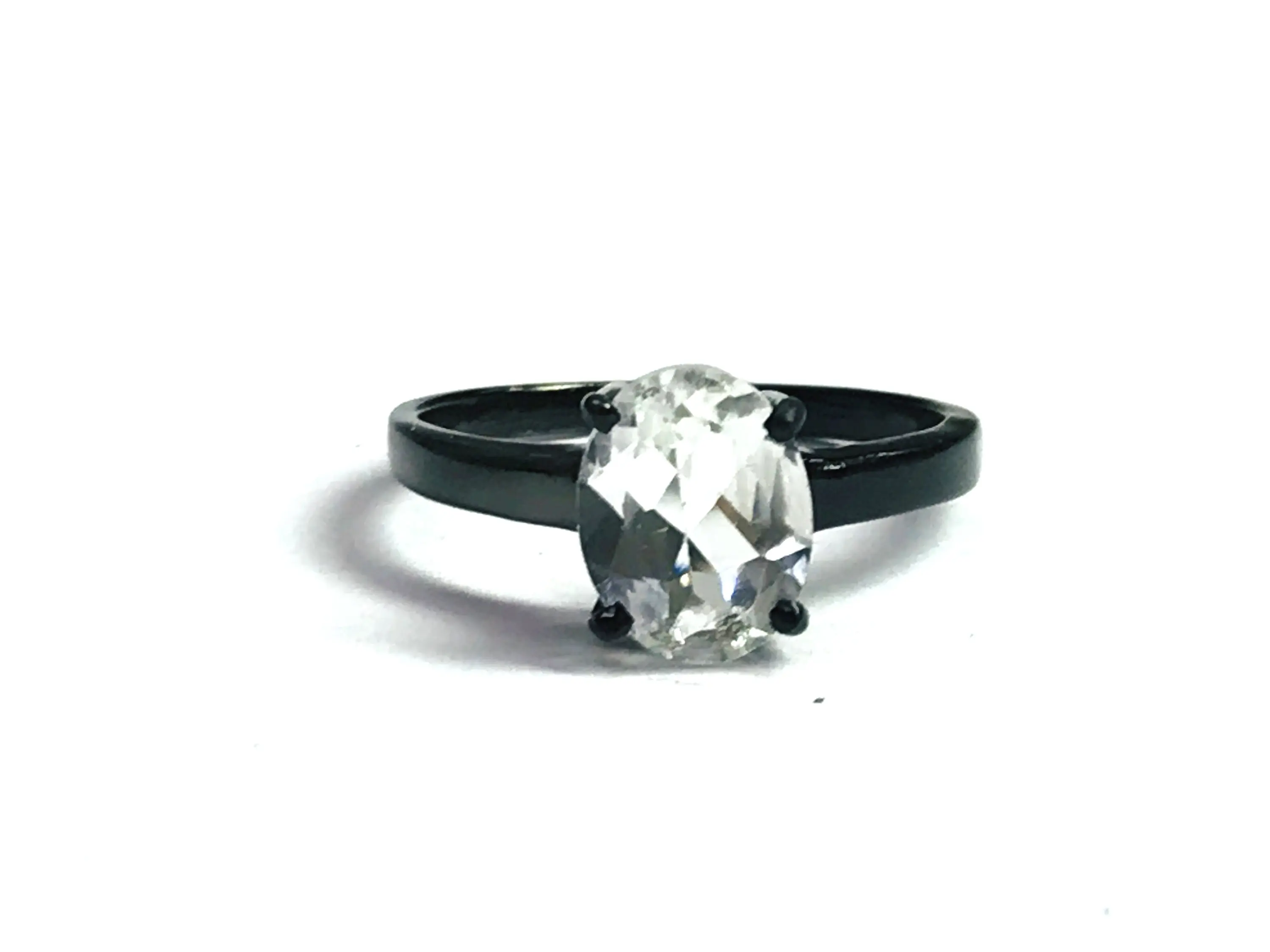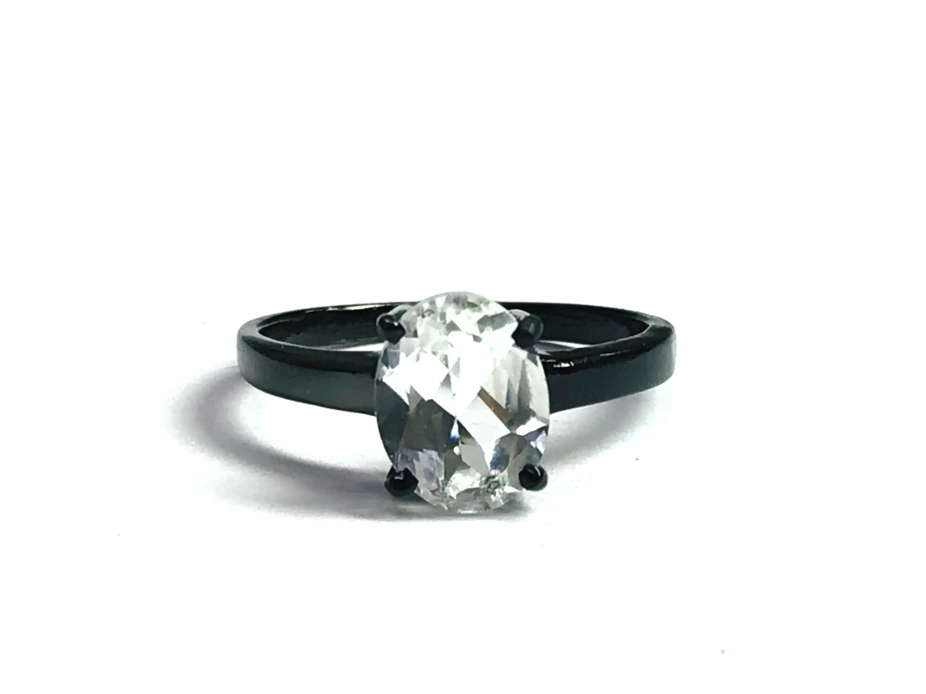 WHITE TOPAZ BLACK Plated Sterling Silver Ring , Engagement ring , promise ring , Beautiful Gift For Loved Ones, Clear topaz , crystal topaz