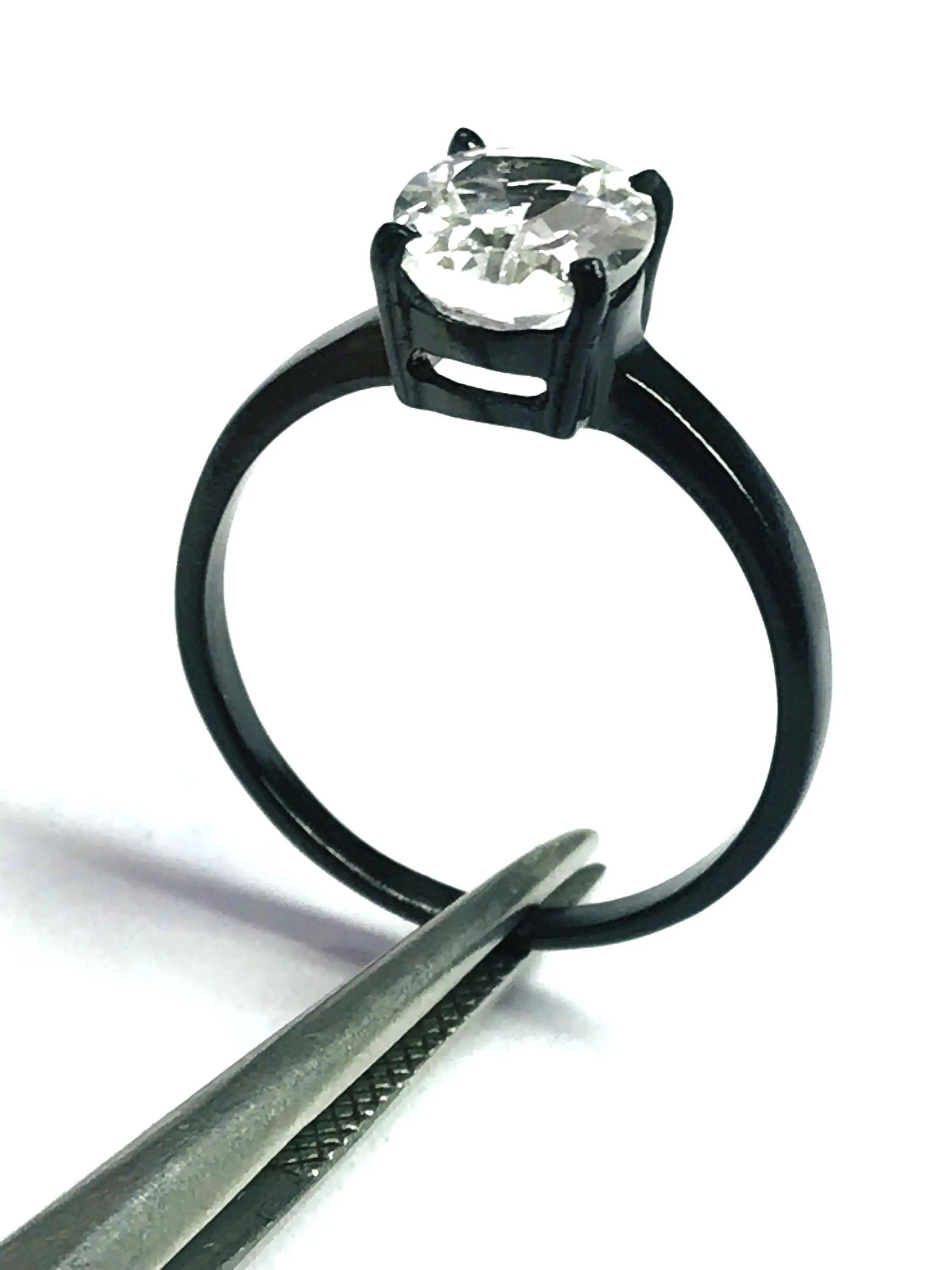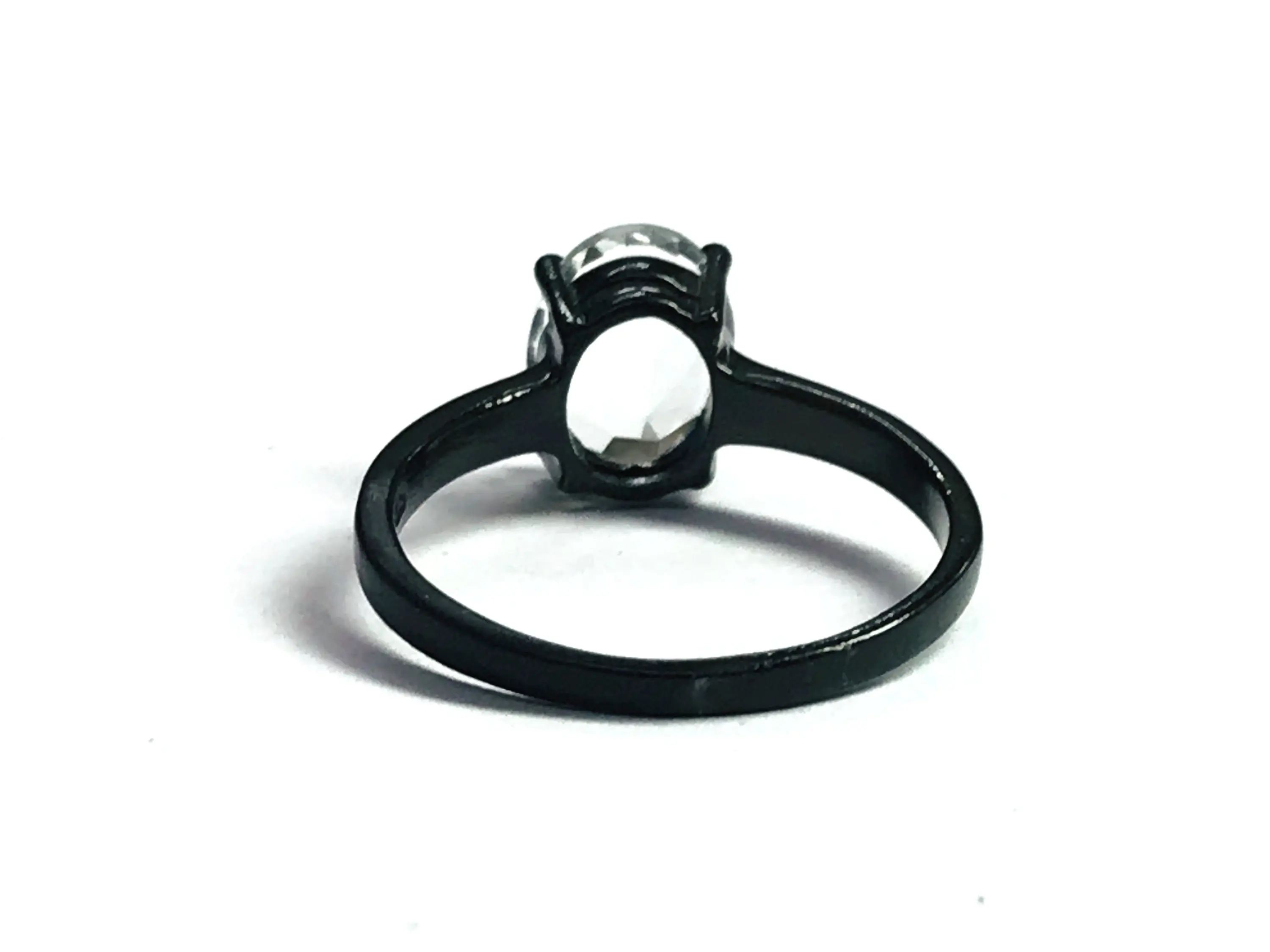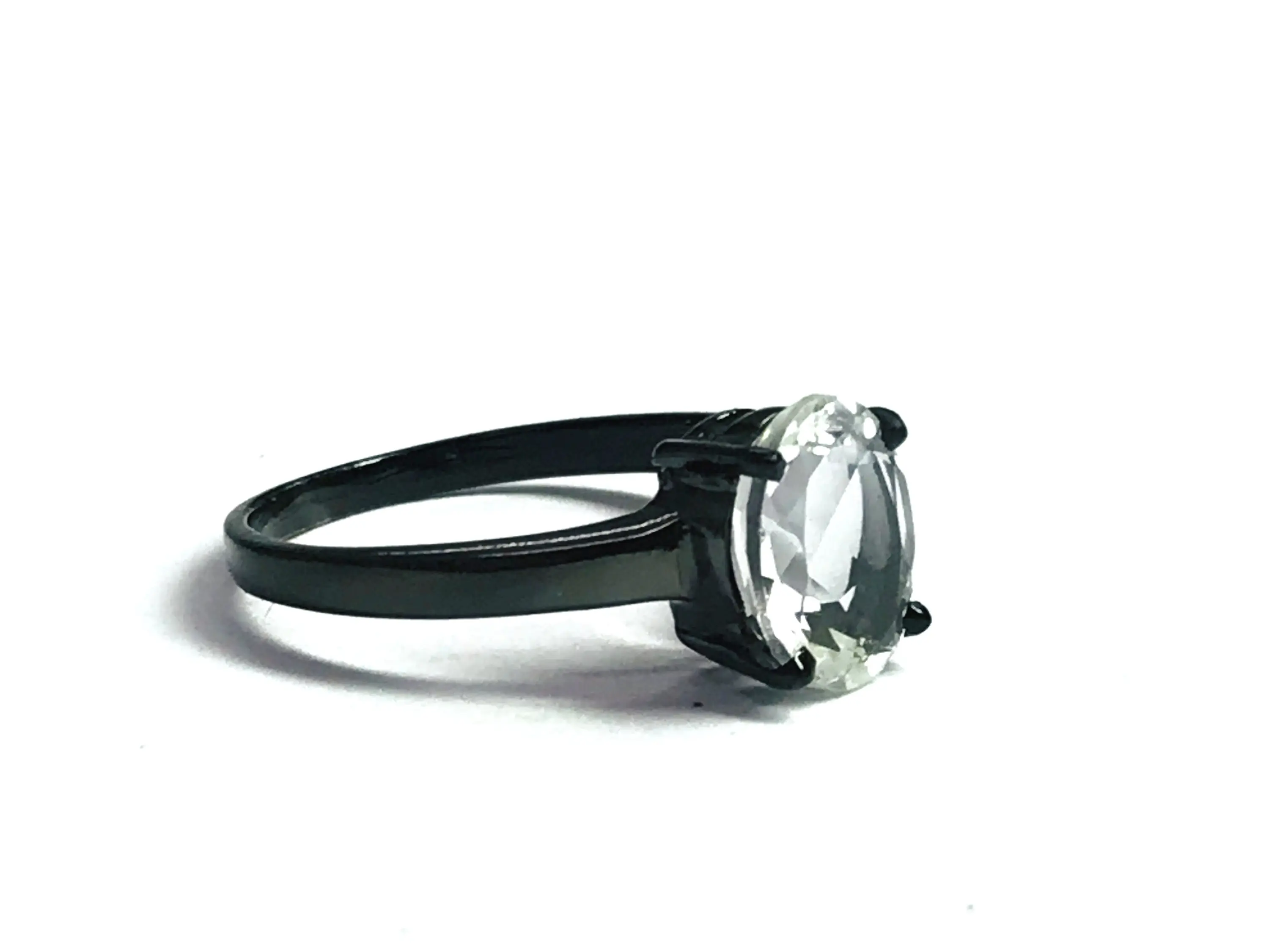 WHITE TOPAZ BLACK Plated Sterling Silver Ring , Engagement ring , promise ring , Beautiful Gift For Loved Ones, Clear topaz , crystal topaz
