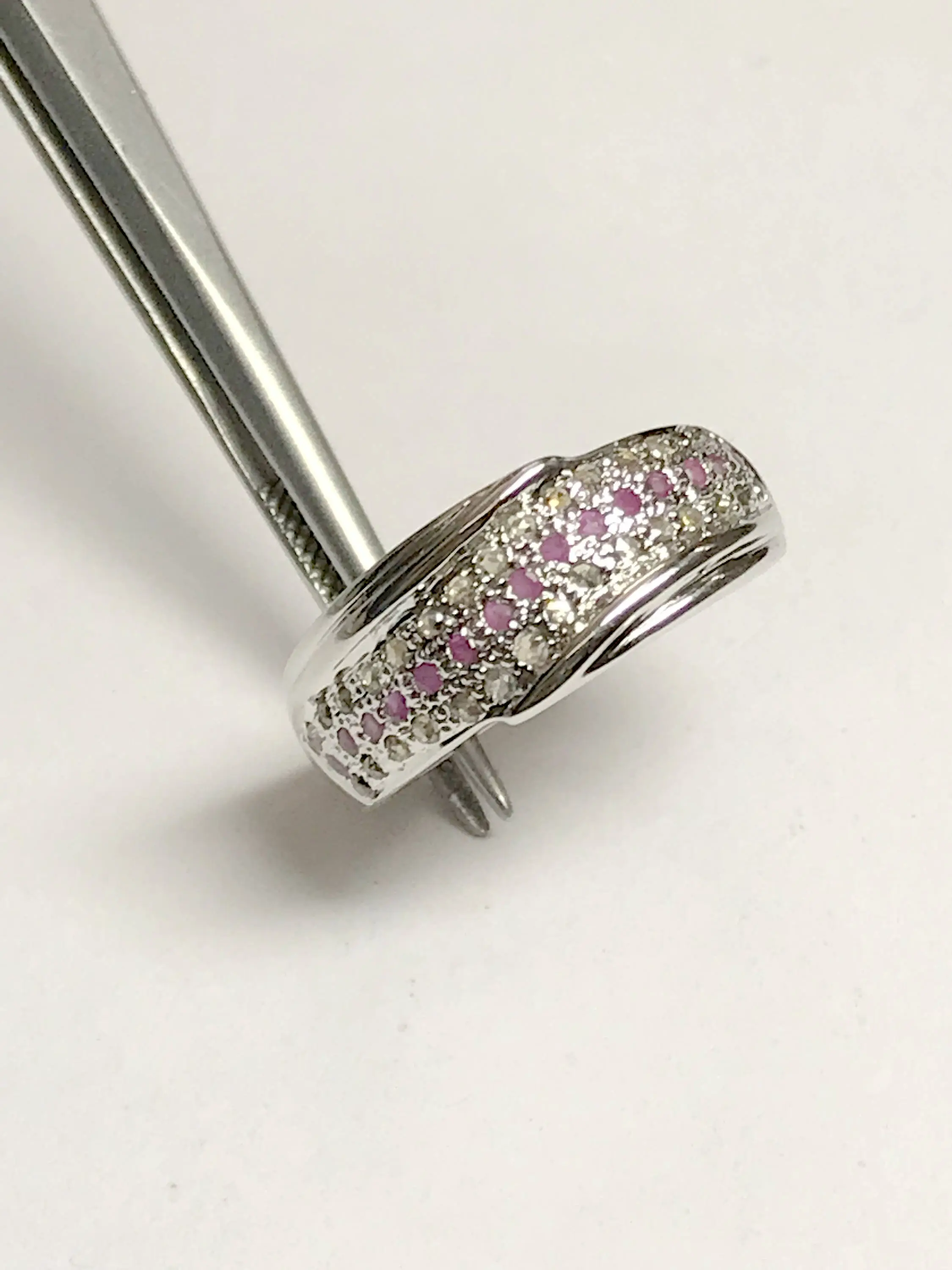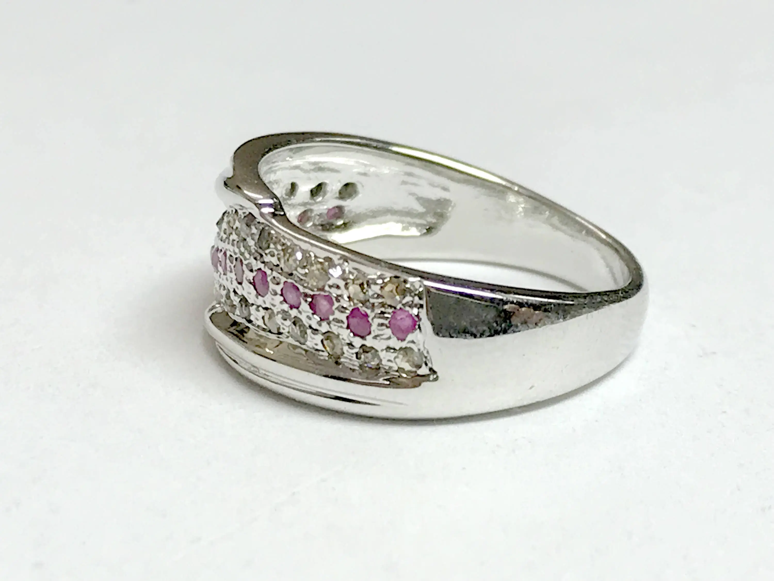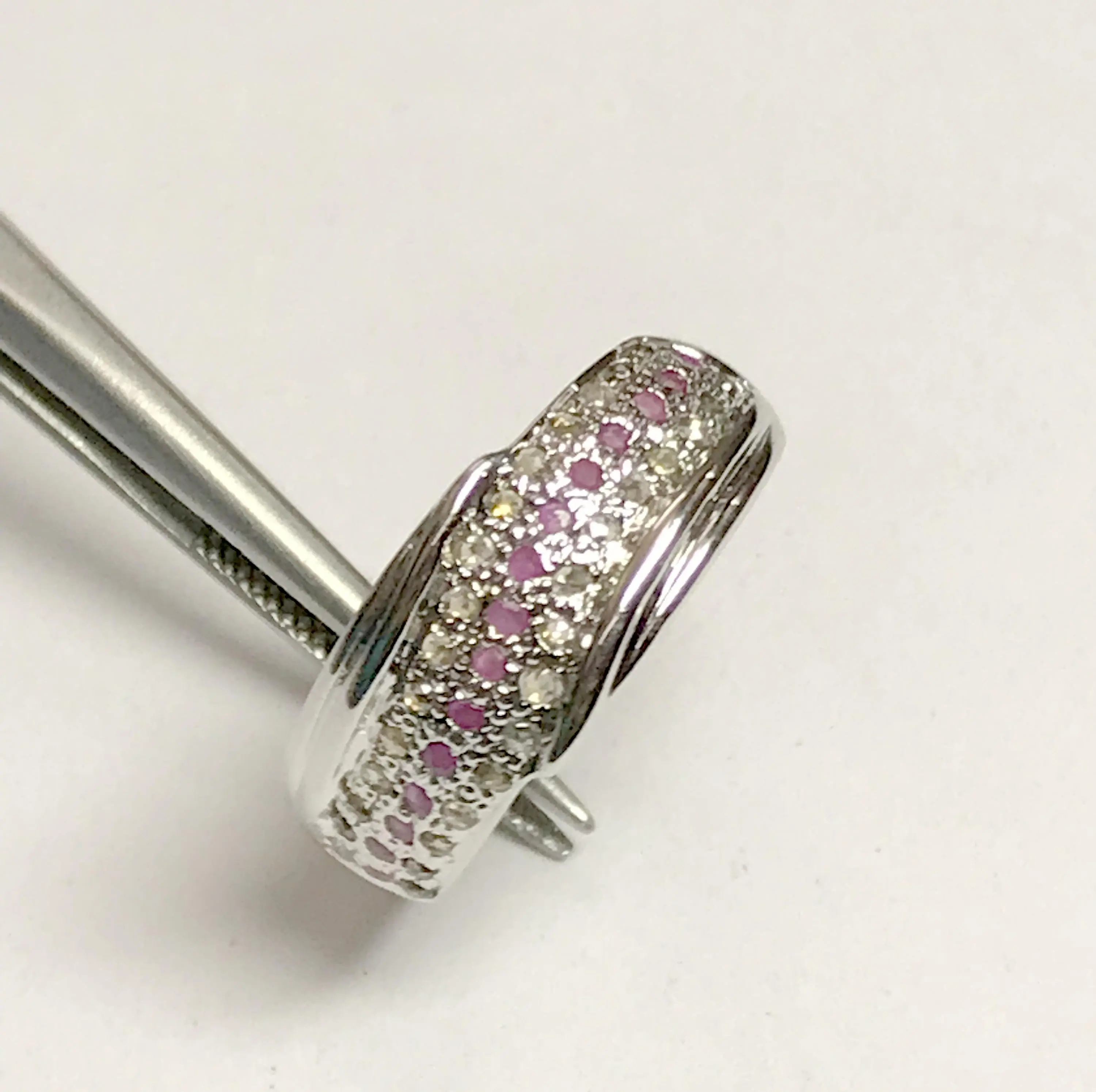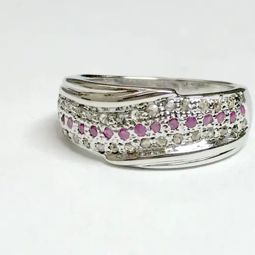 TINY RUBY DIAMONDS 925 Sterling Ring , Broad Eternity Band , July Birthstone , Lovely Engagement Ring and Wedding Gift ........