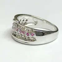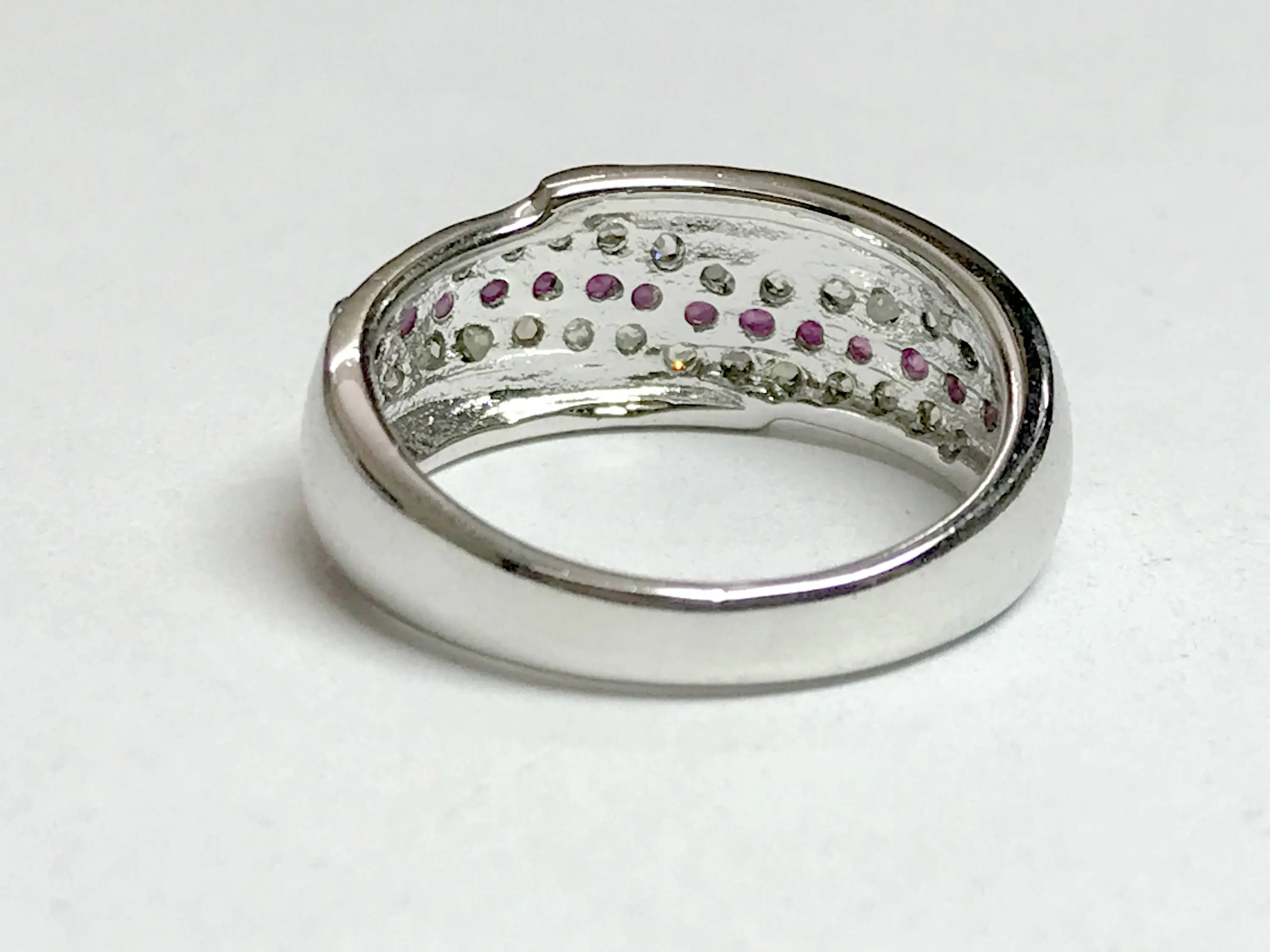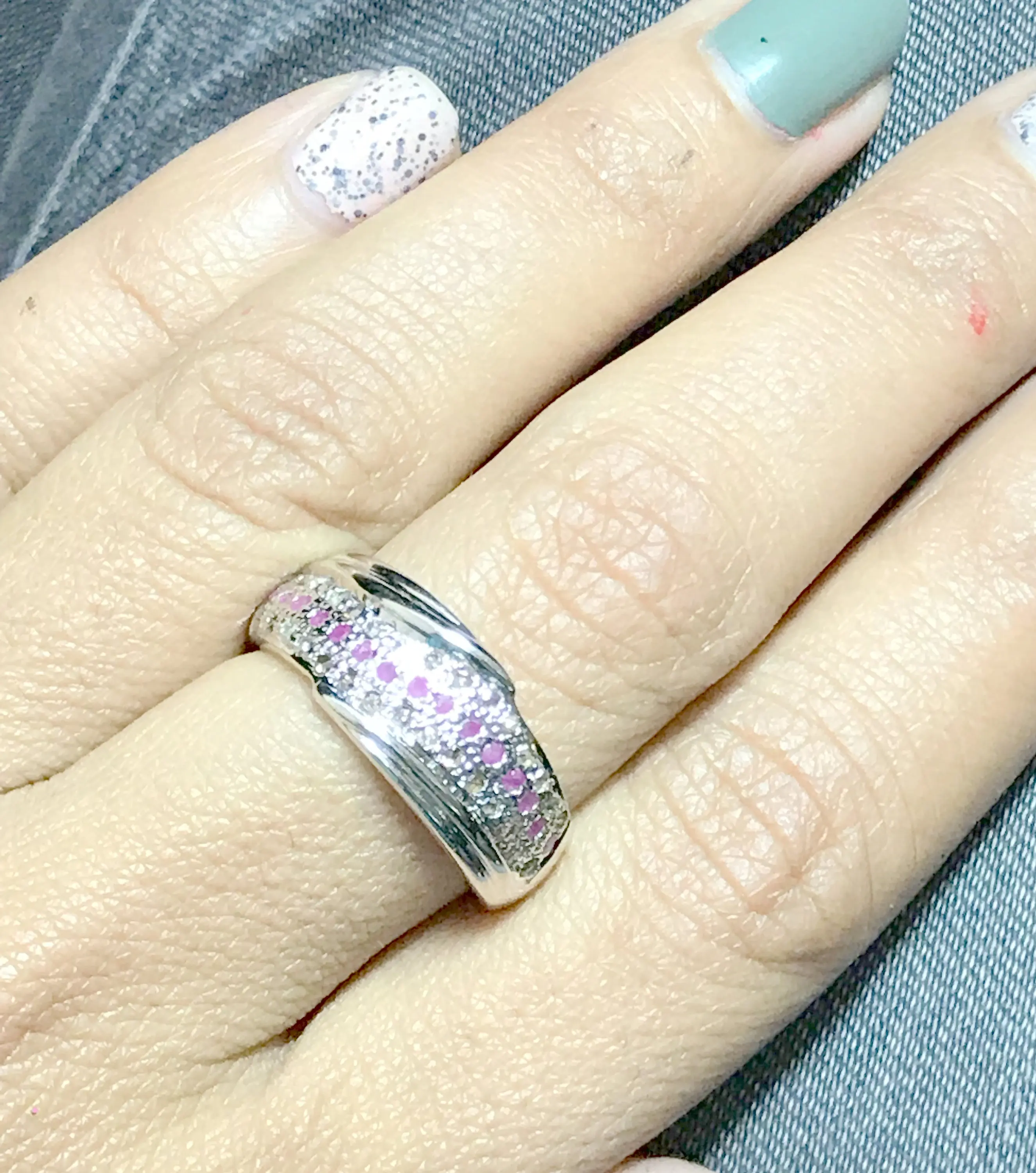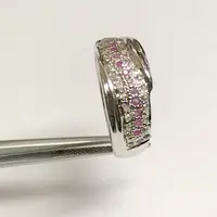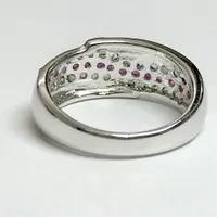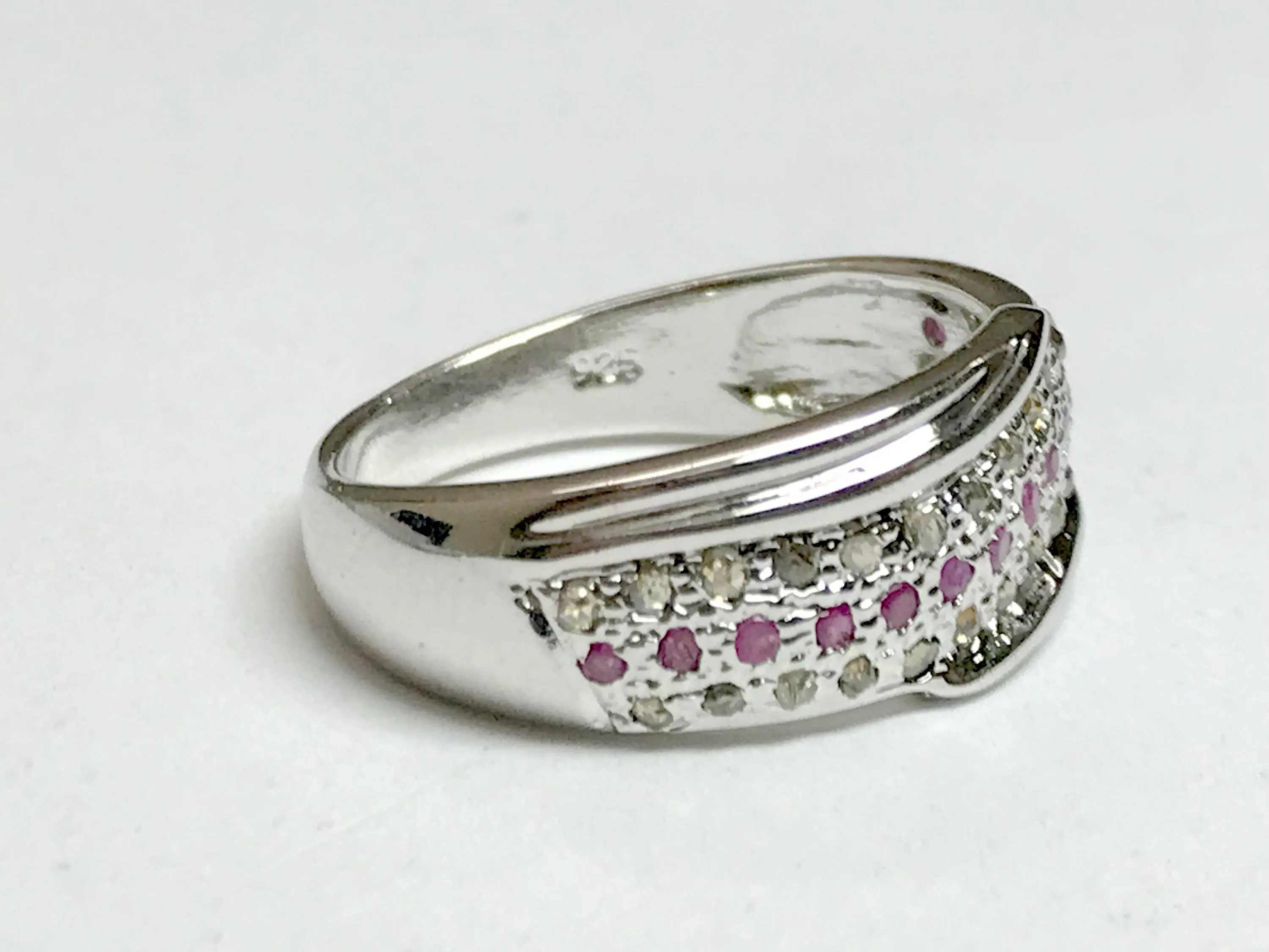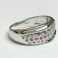 TINY RUBY DIAMONDS 925 Sterling Ring , Broad Eternity Band , July Birthstone , Lovely Engagement Ring and Wedding Gift ........