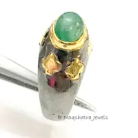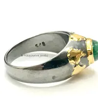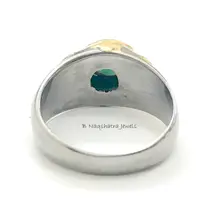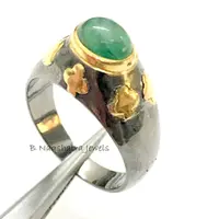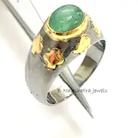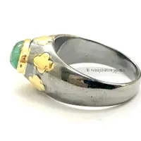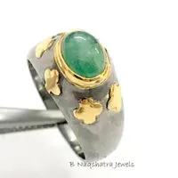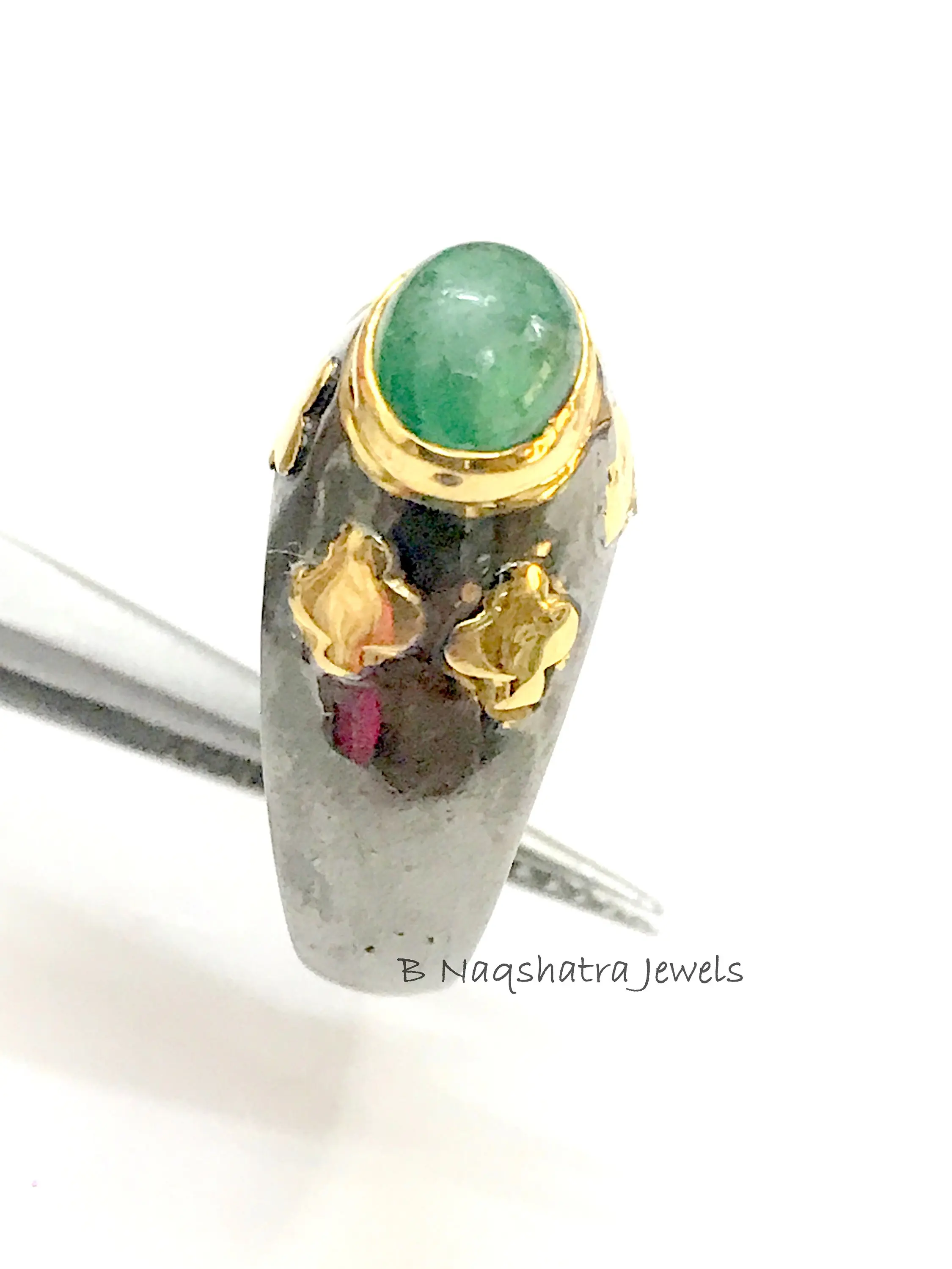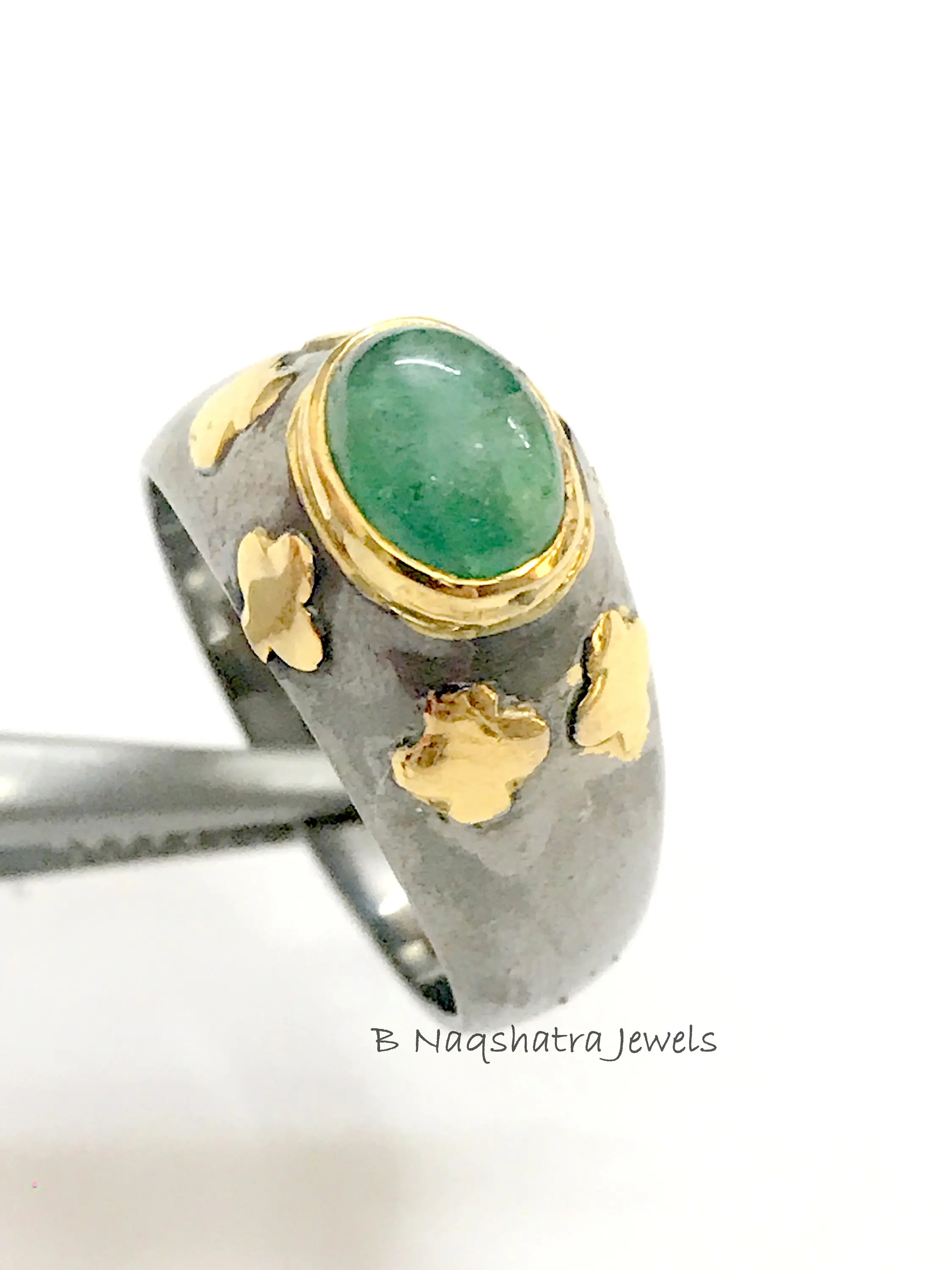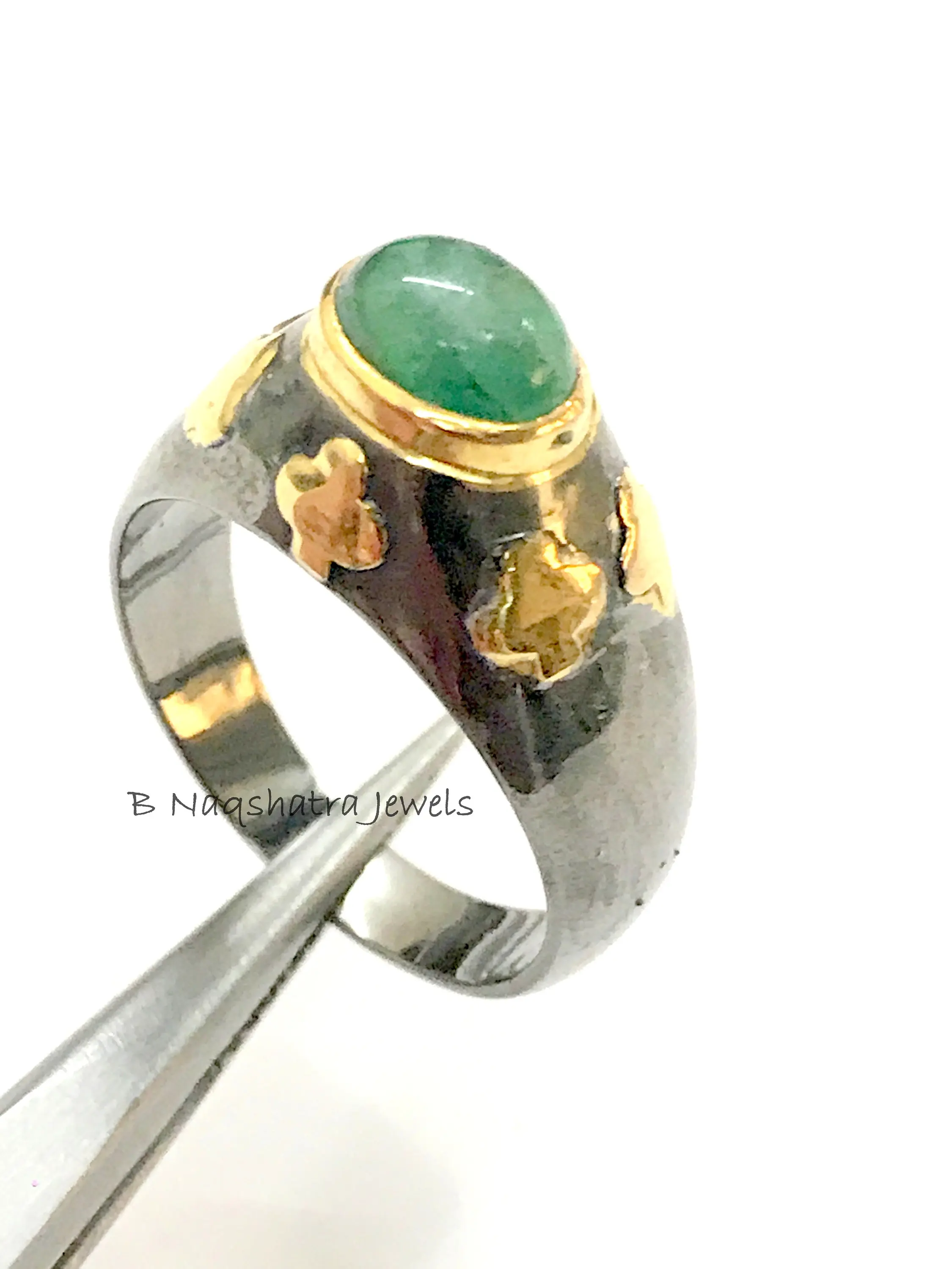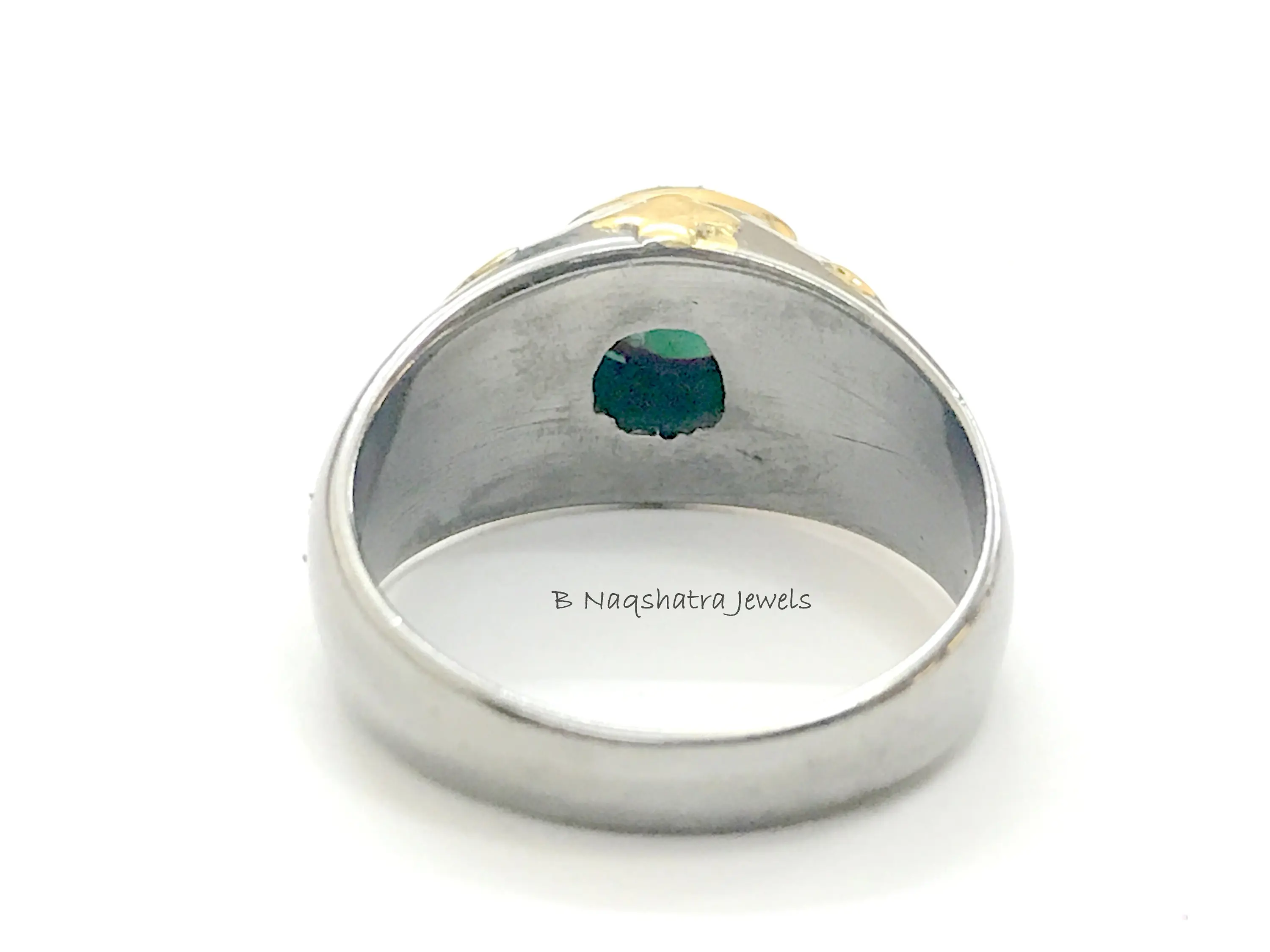 This is a beautifully designed Men's fantasy ring with Natural Genuine Emerald Gemstone in 925 sterling silver and 12k gold embossed leaves.....