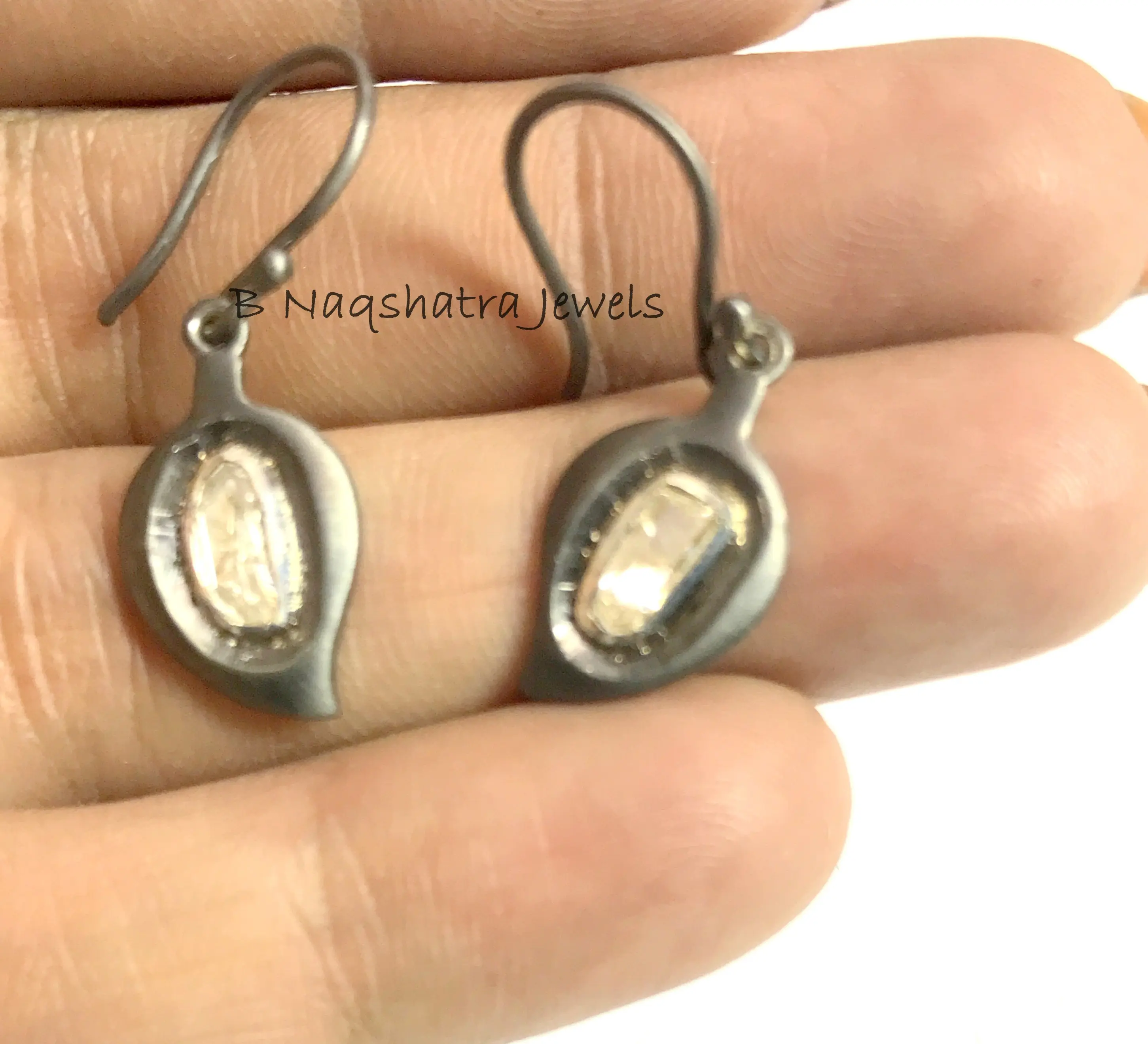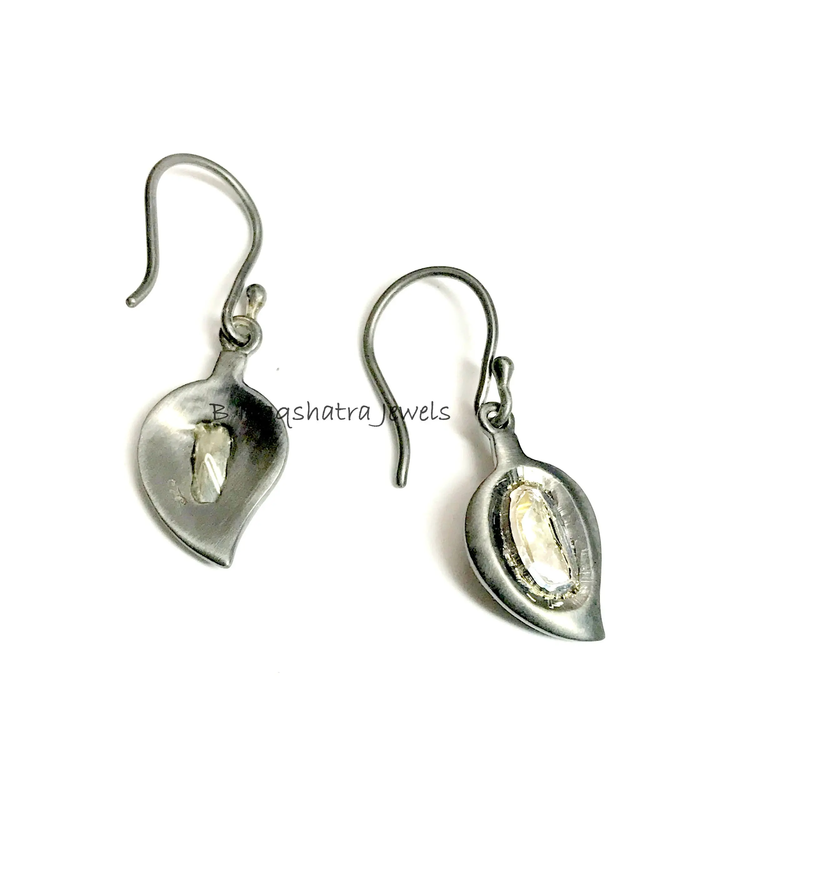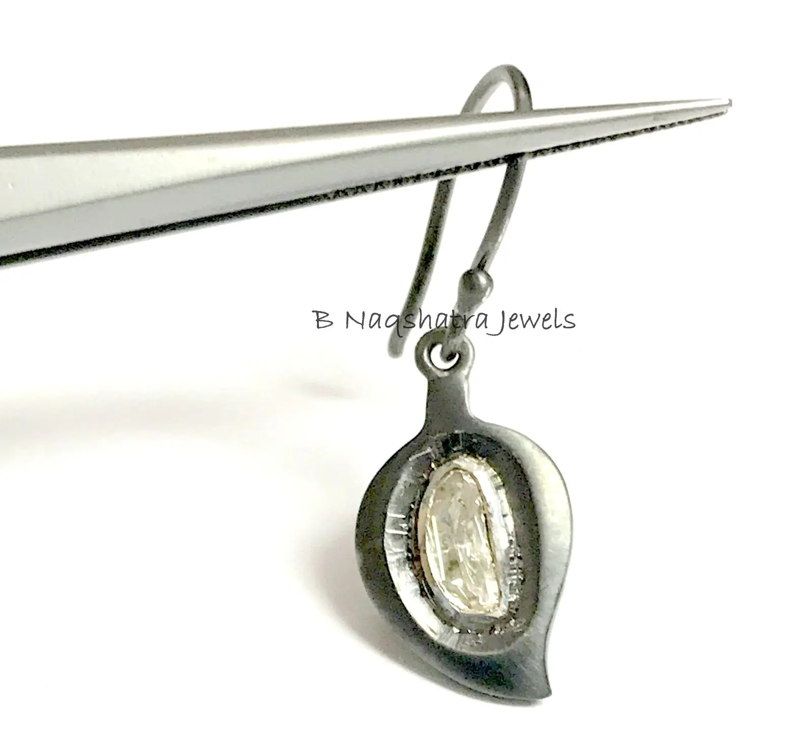 single solitaire hand cut diamond earring studded with 100% natural Rose cut diamonds in bezel set......and black rhodium...........
