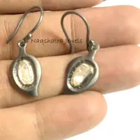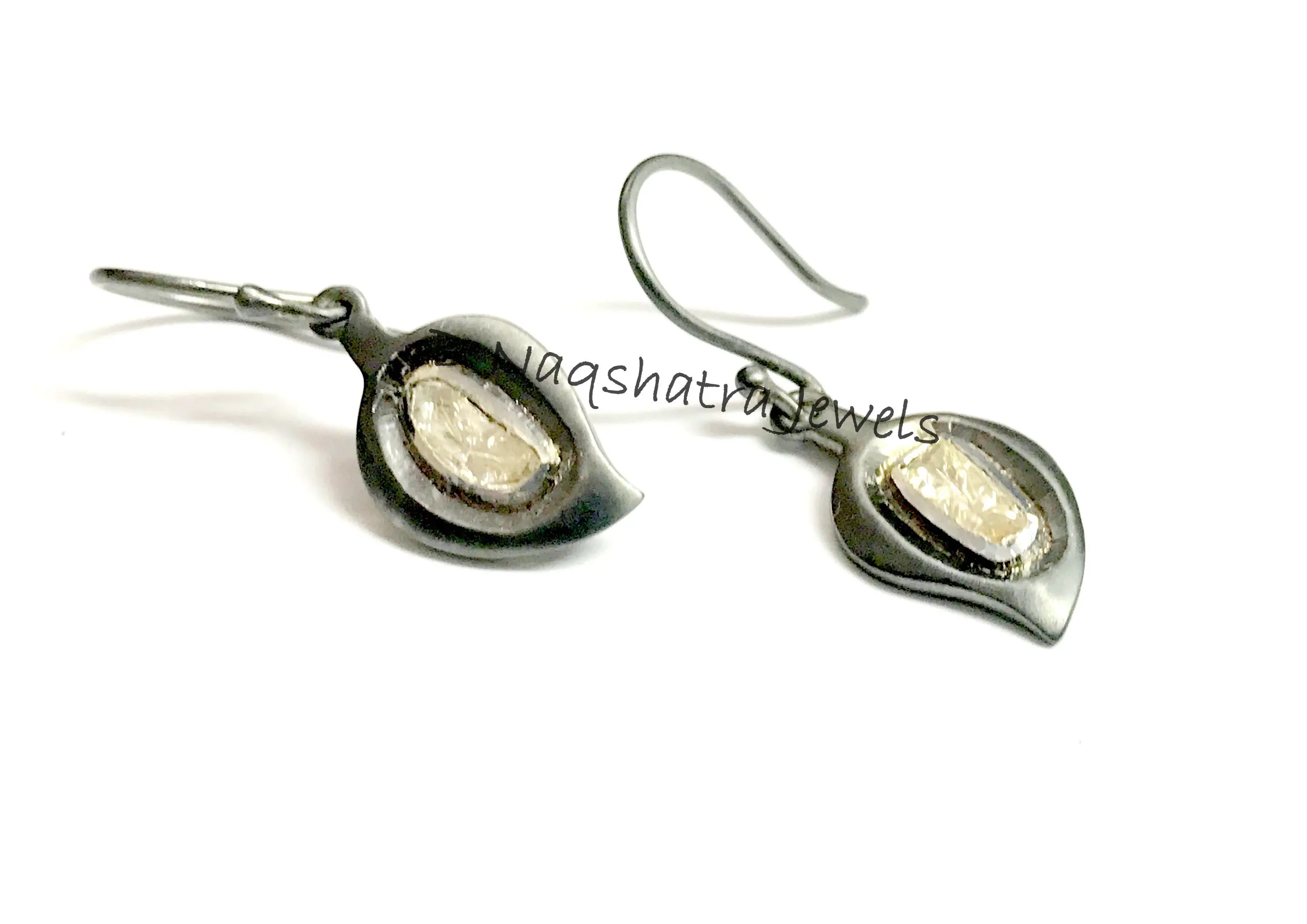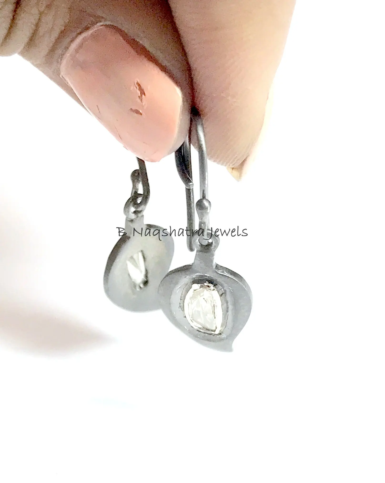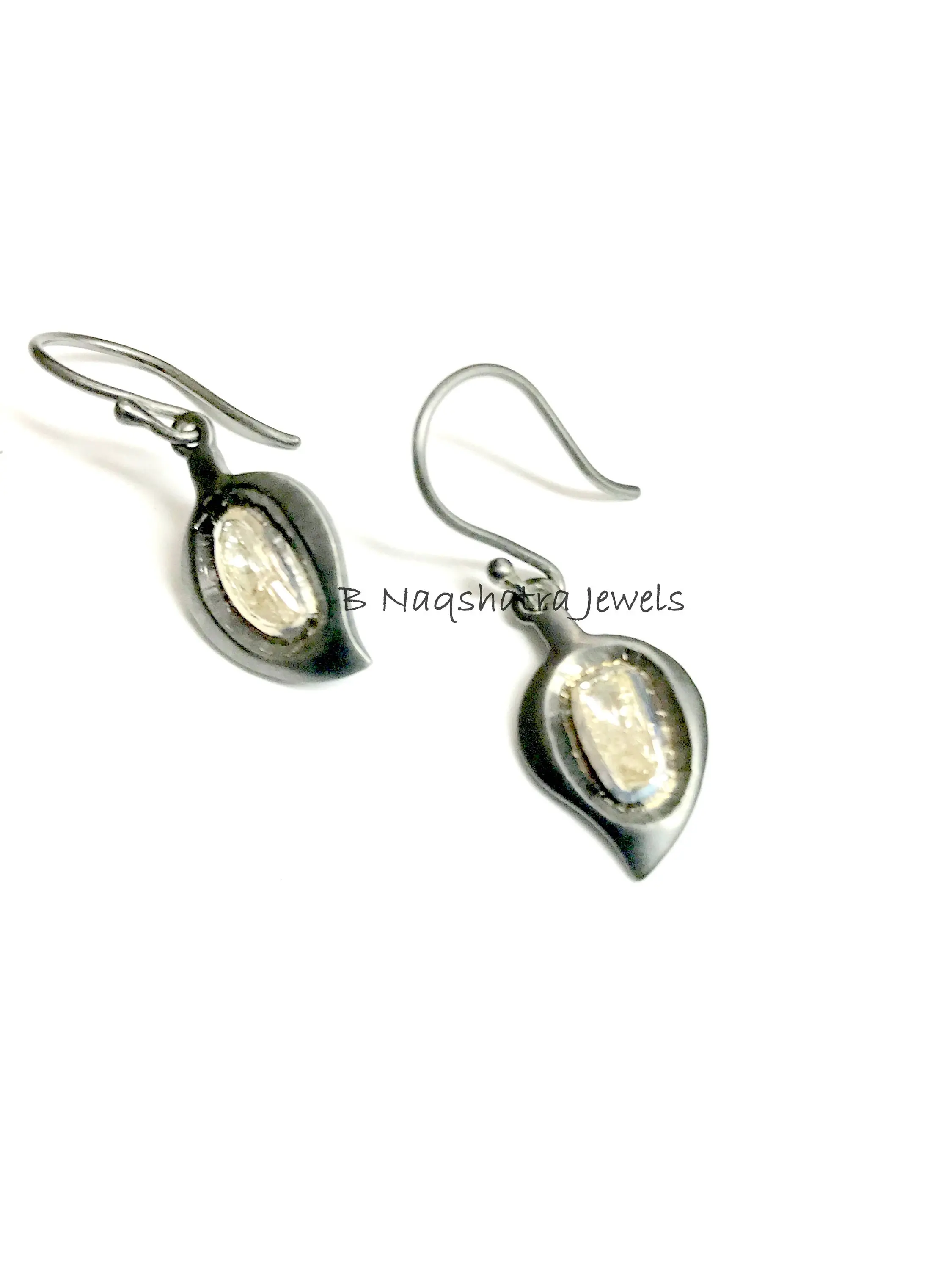 single solitaire hand cut diamond earring studded with 100% natural Rose cut diamonds in bezel set......and black rhodium...........