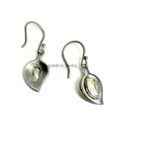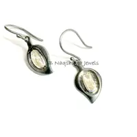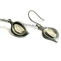 Natural rose cut diamonds antique silver leaf earring, diamonds vintage leaf earring, silver diamond jewelry ,vintage jewelry collection
