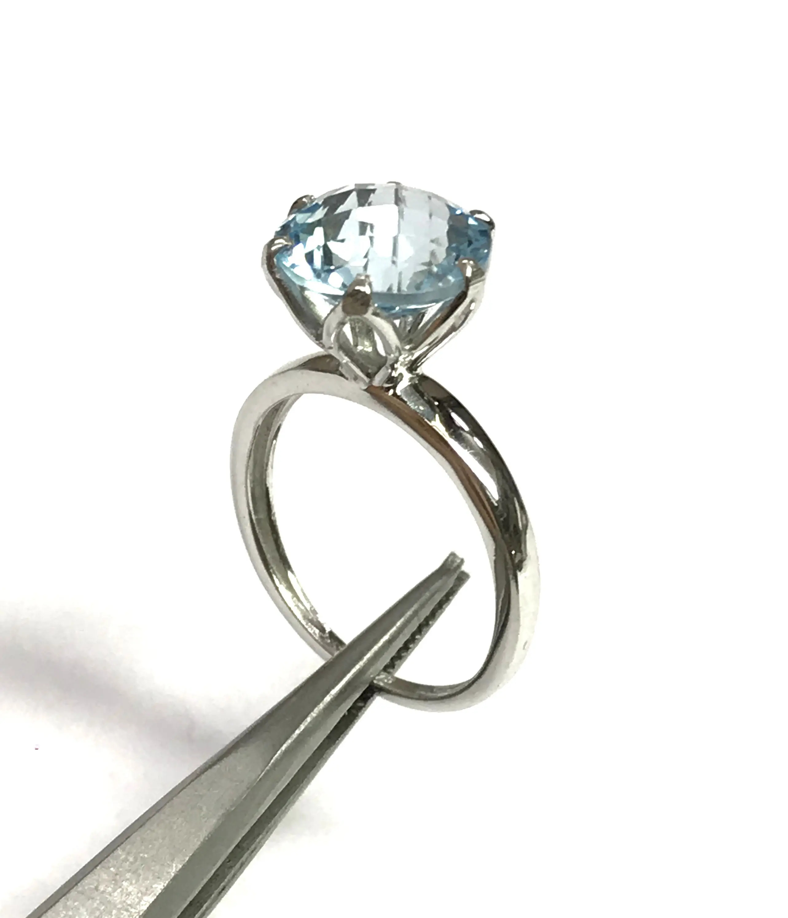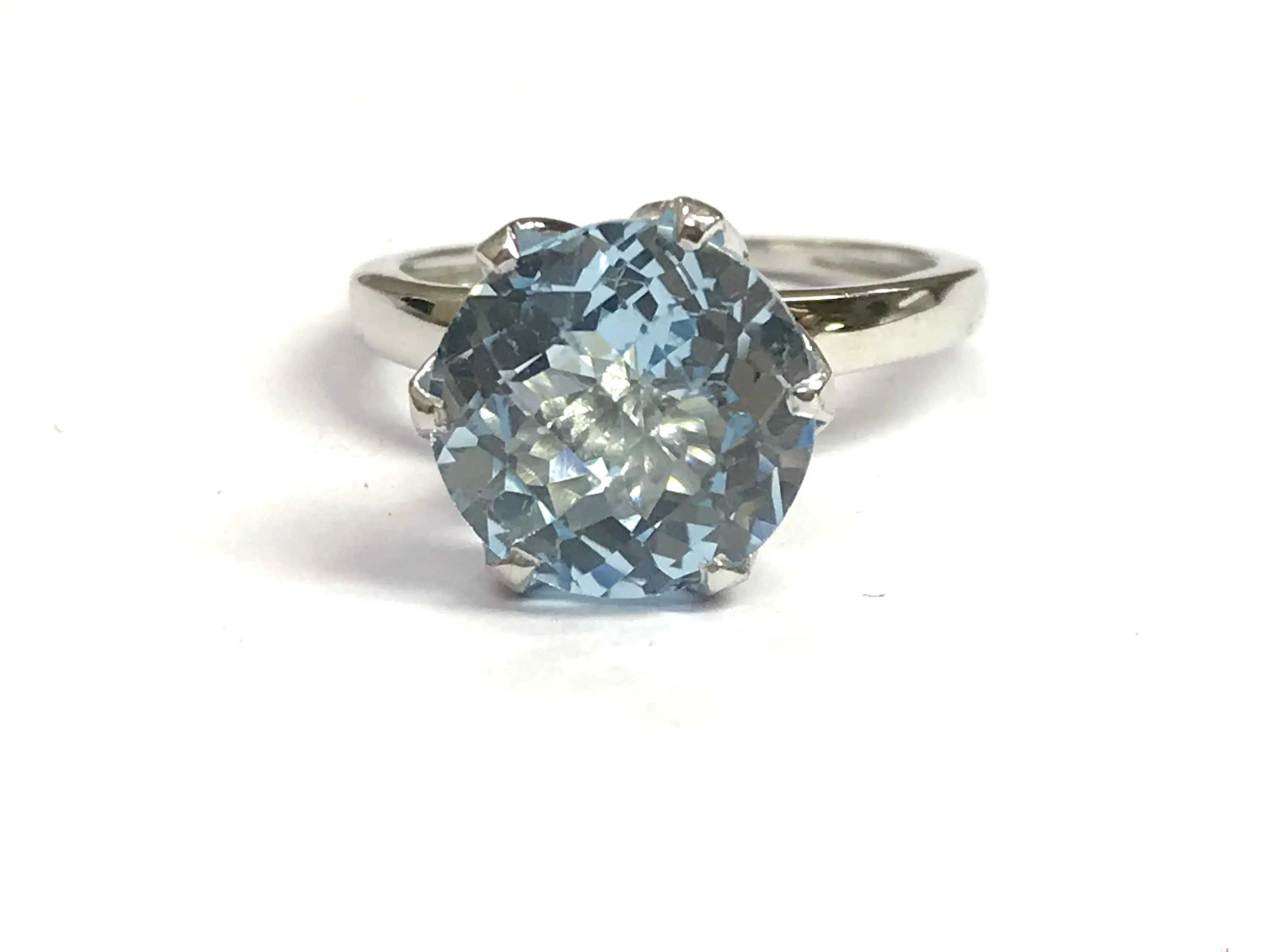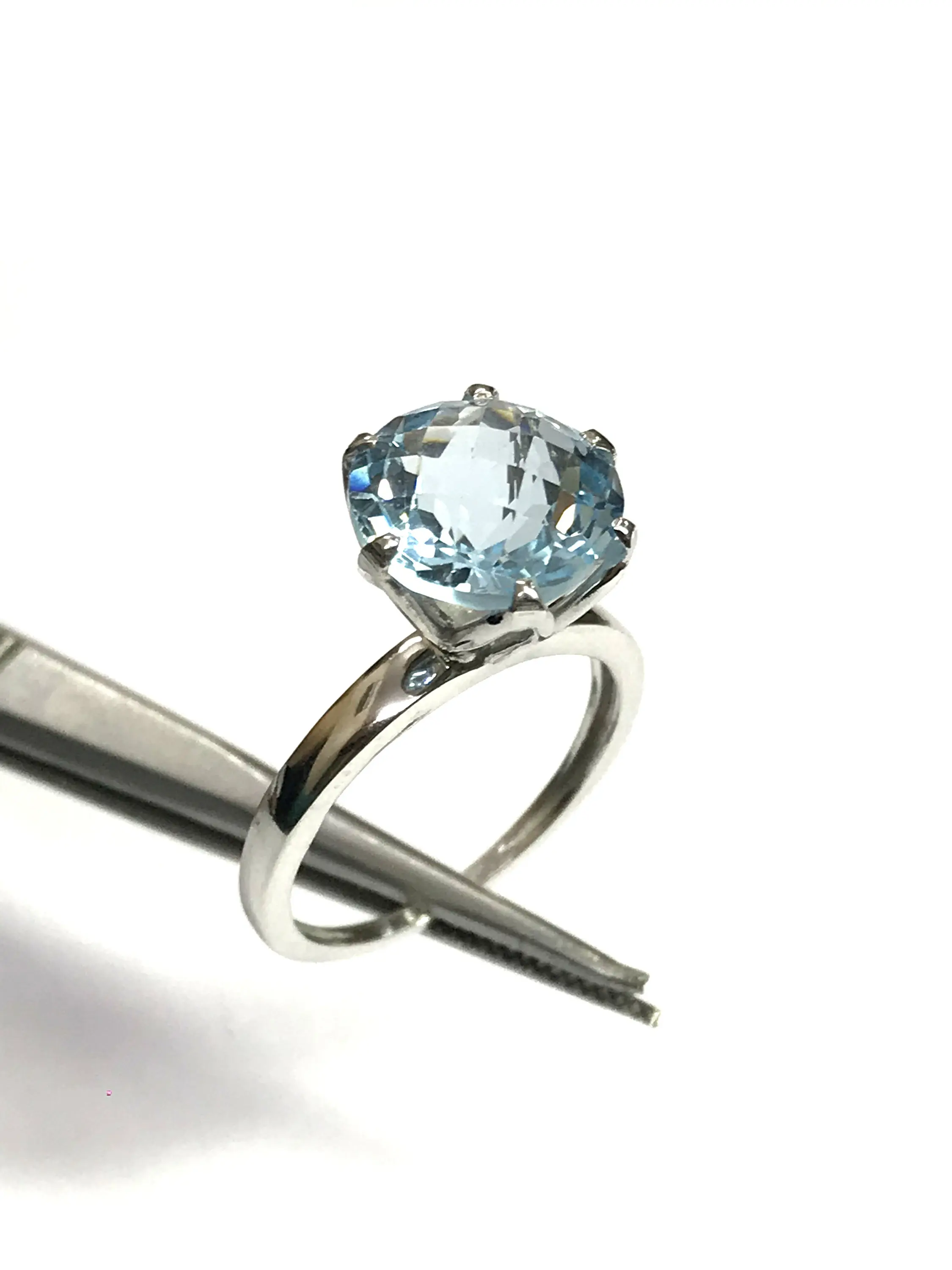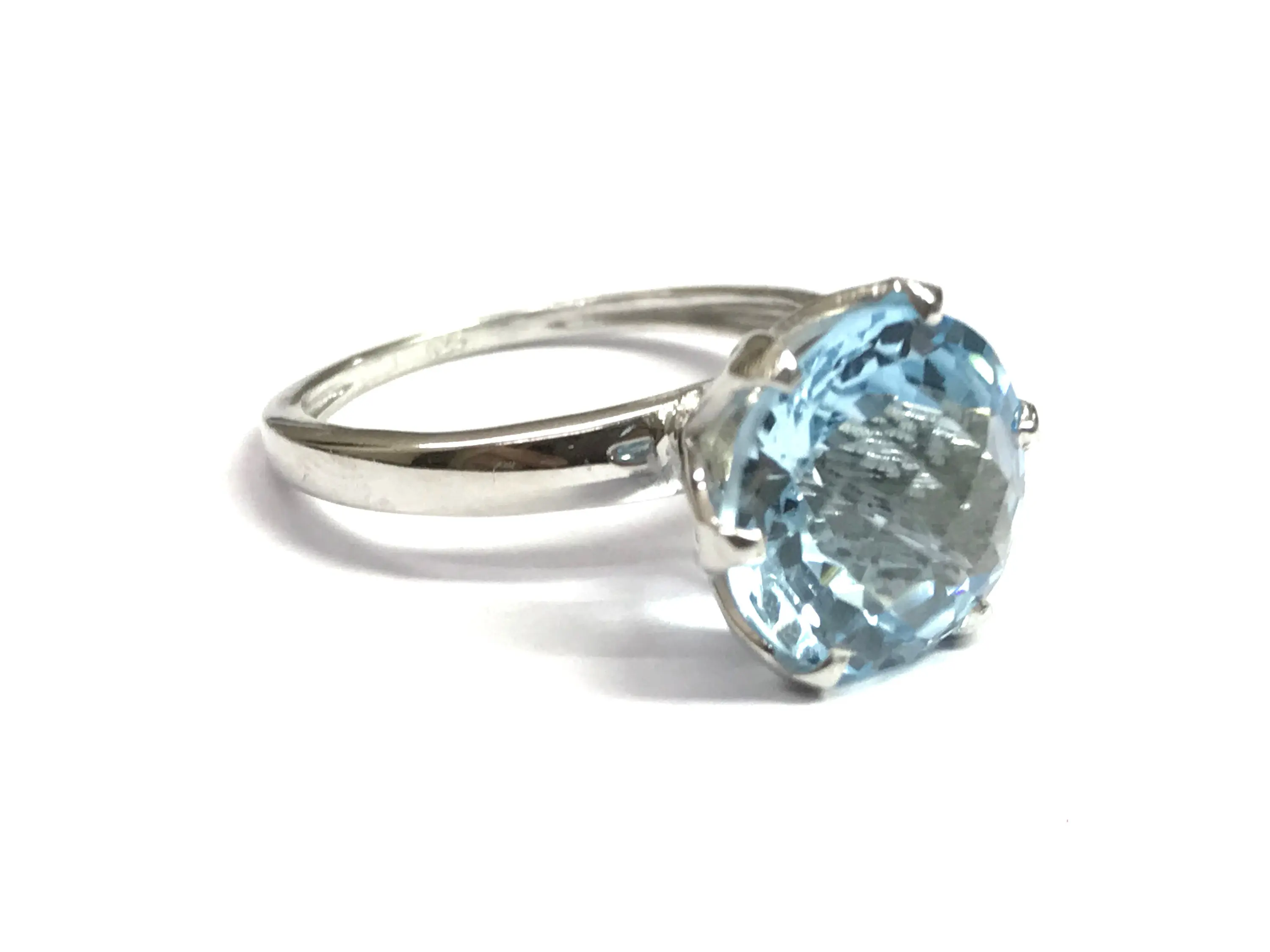 ROUND BLUE TOPAZ Checkers Cut ,December Birthstone ,Hand Forged Ring ,crystal healing Topaz,throat chakra Gemstone.