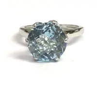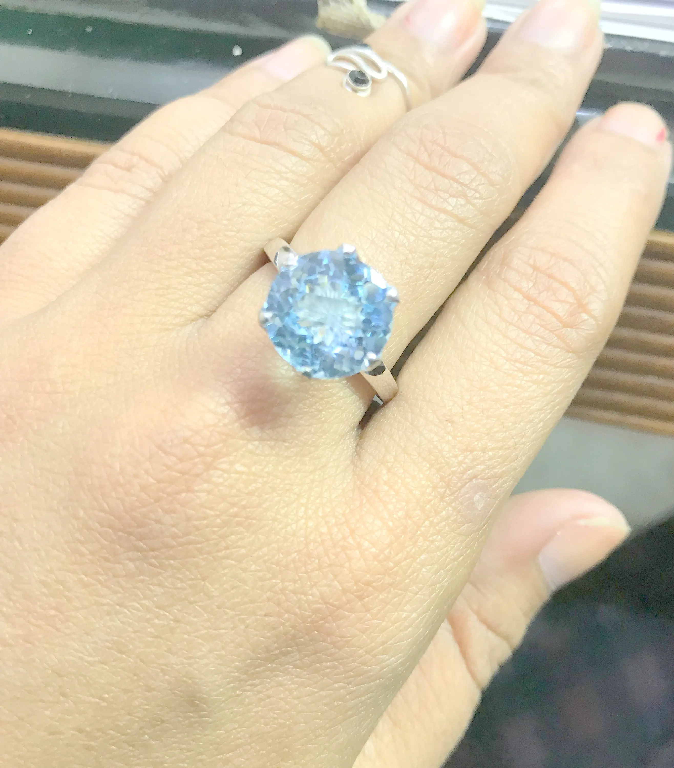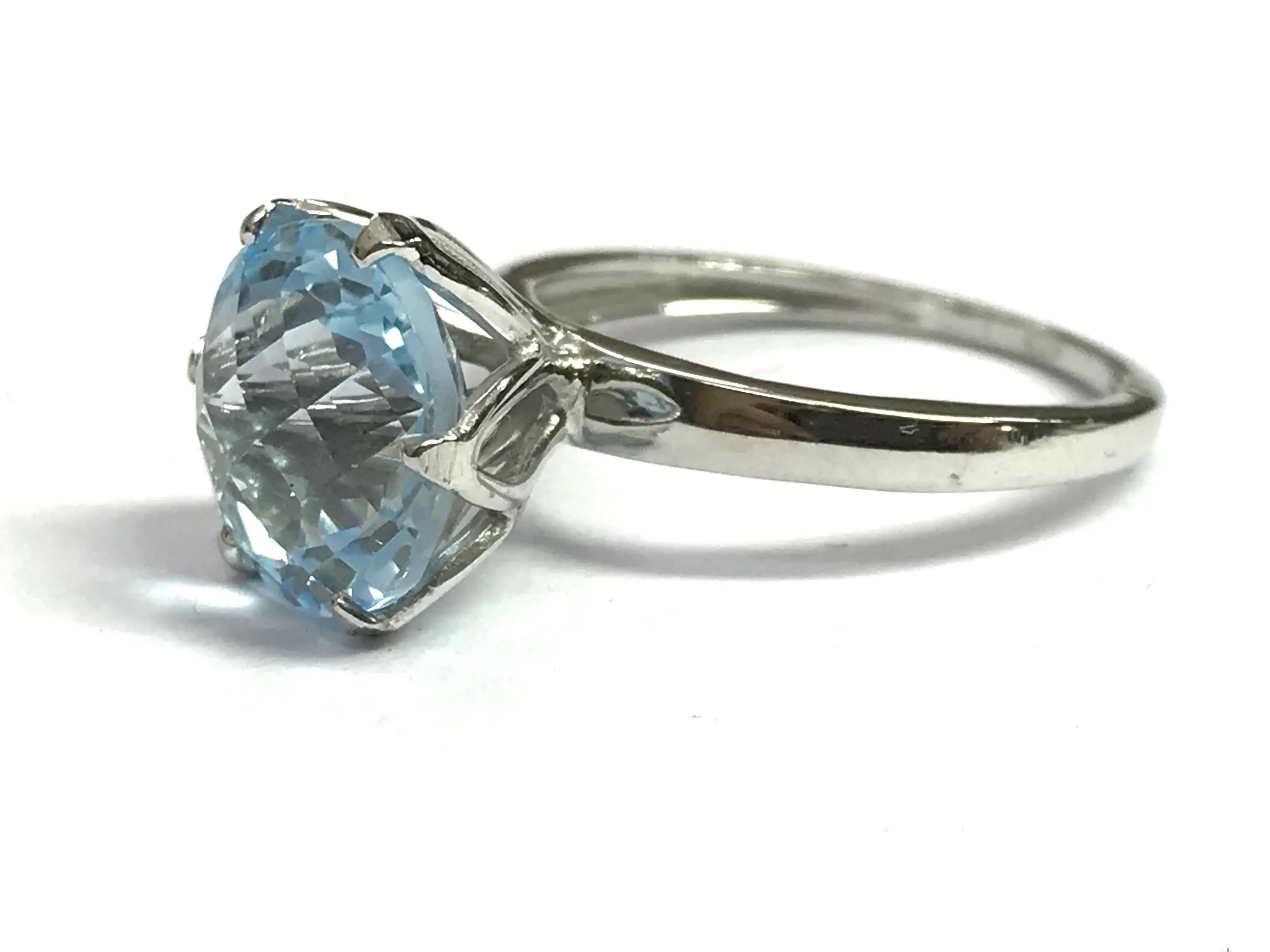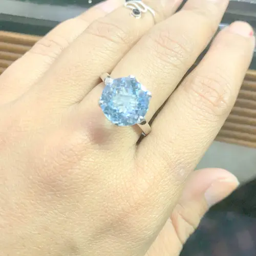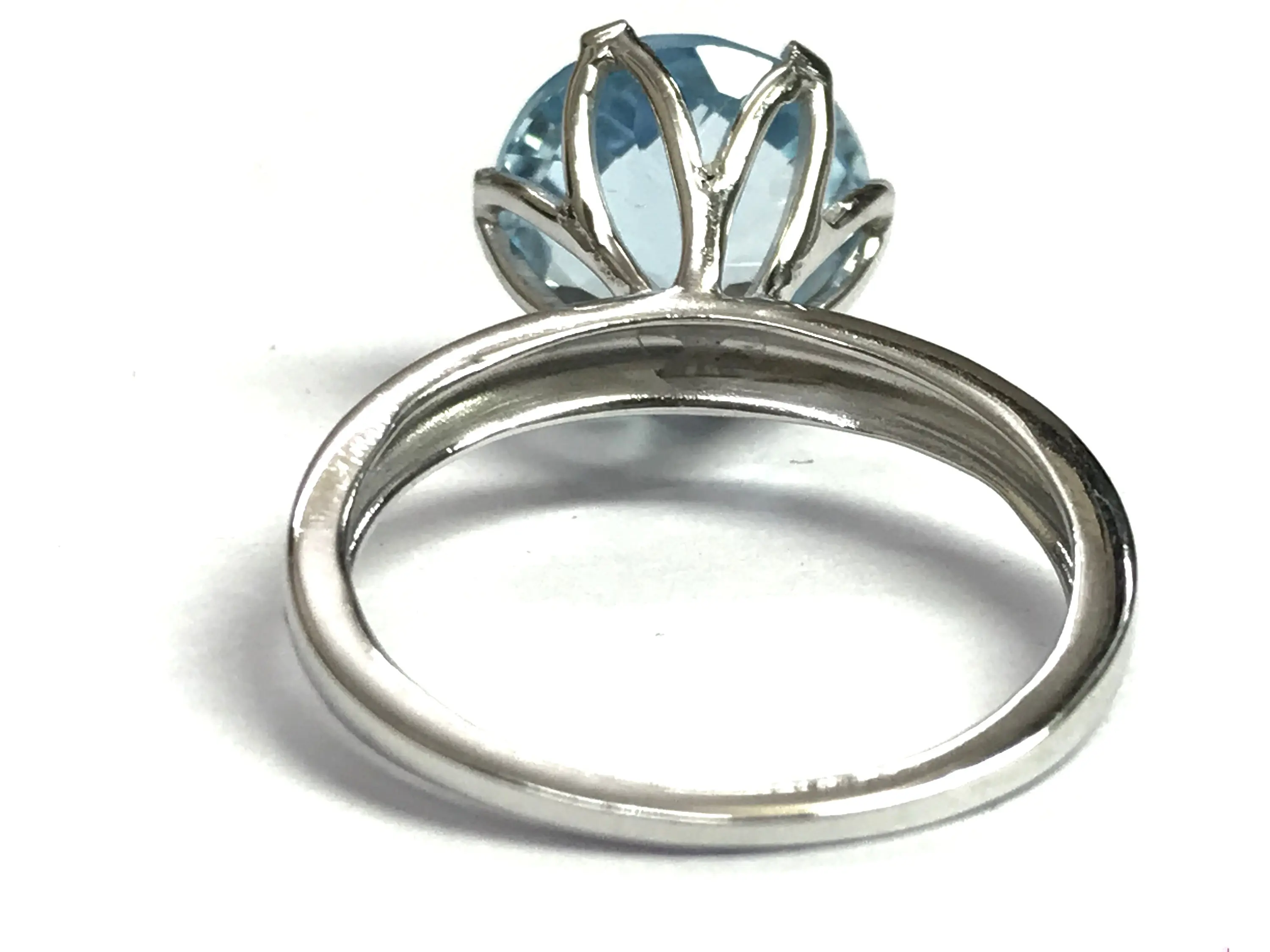 ROUND BLUE TOPAZ Checkers Cut ,December Birthstone ,Hand Forged Ring ,crystal healing Topaz,throat chakra Gemstone.