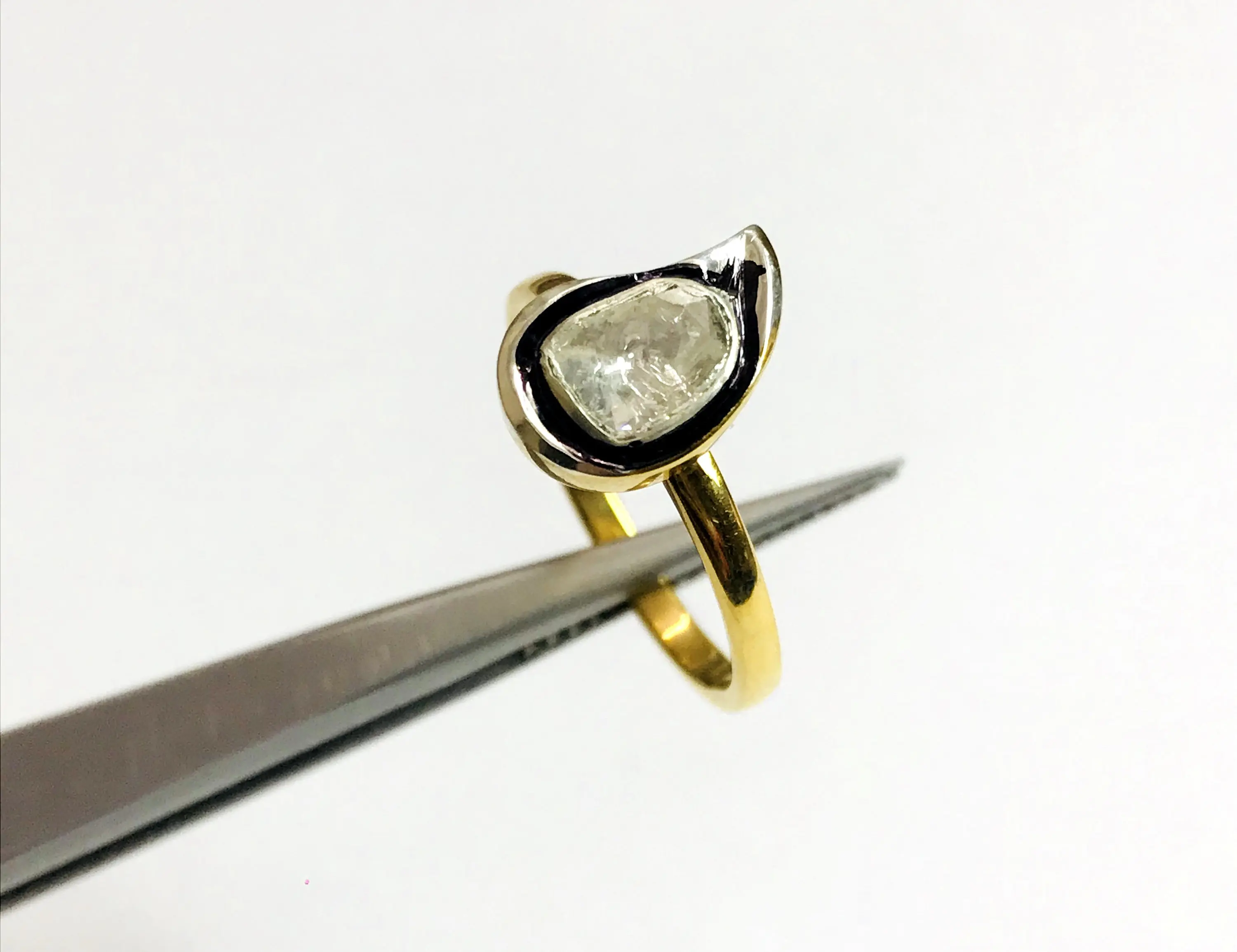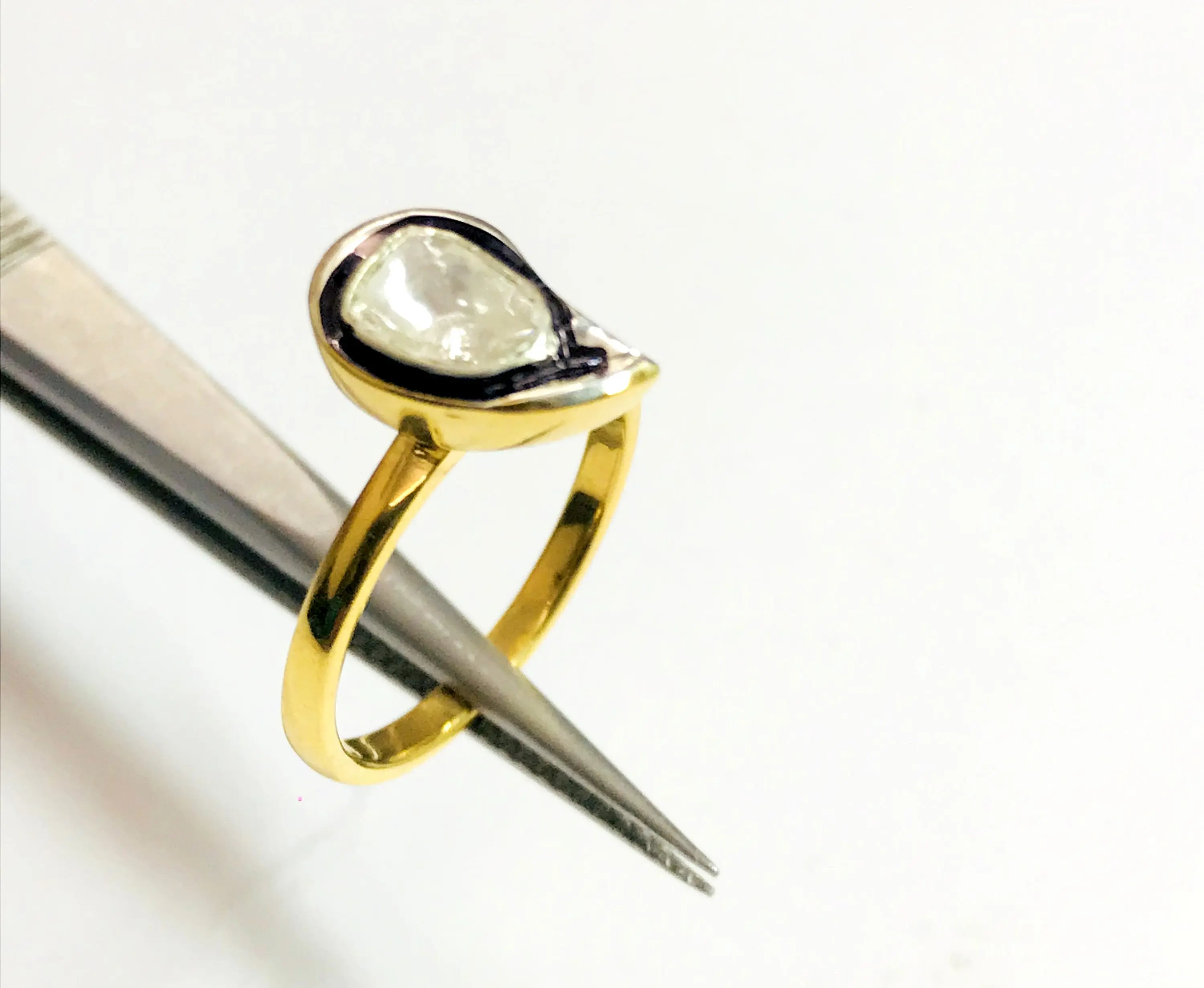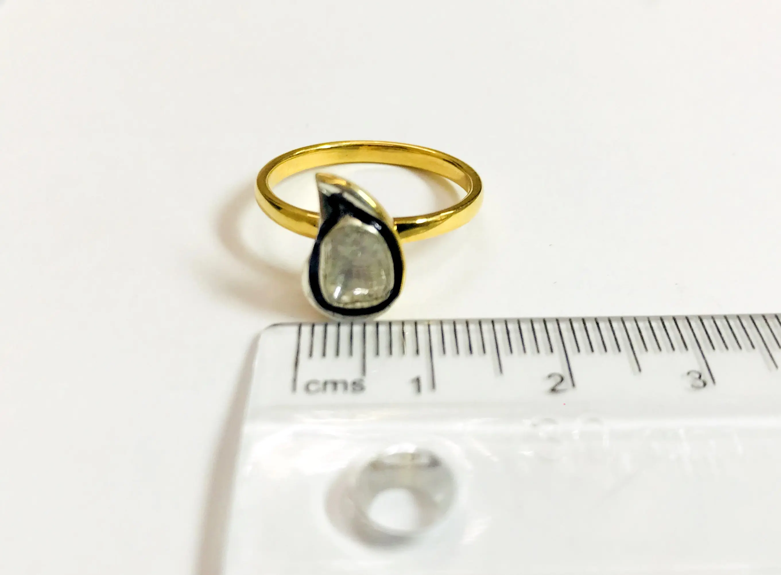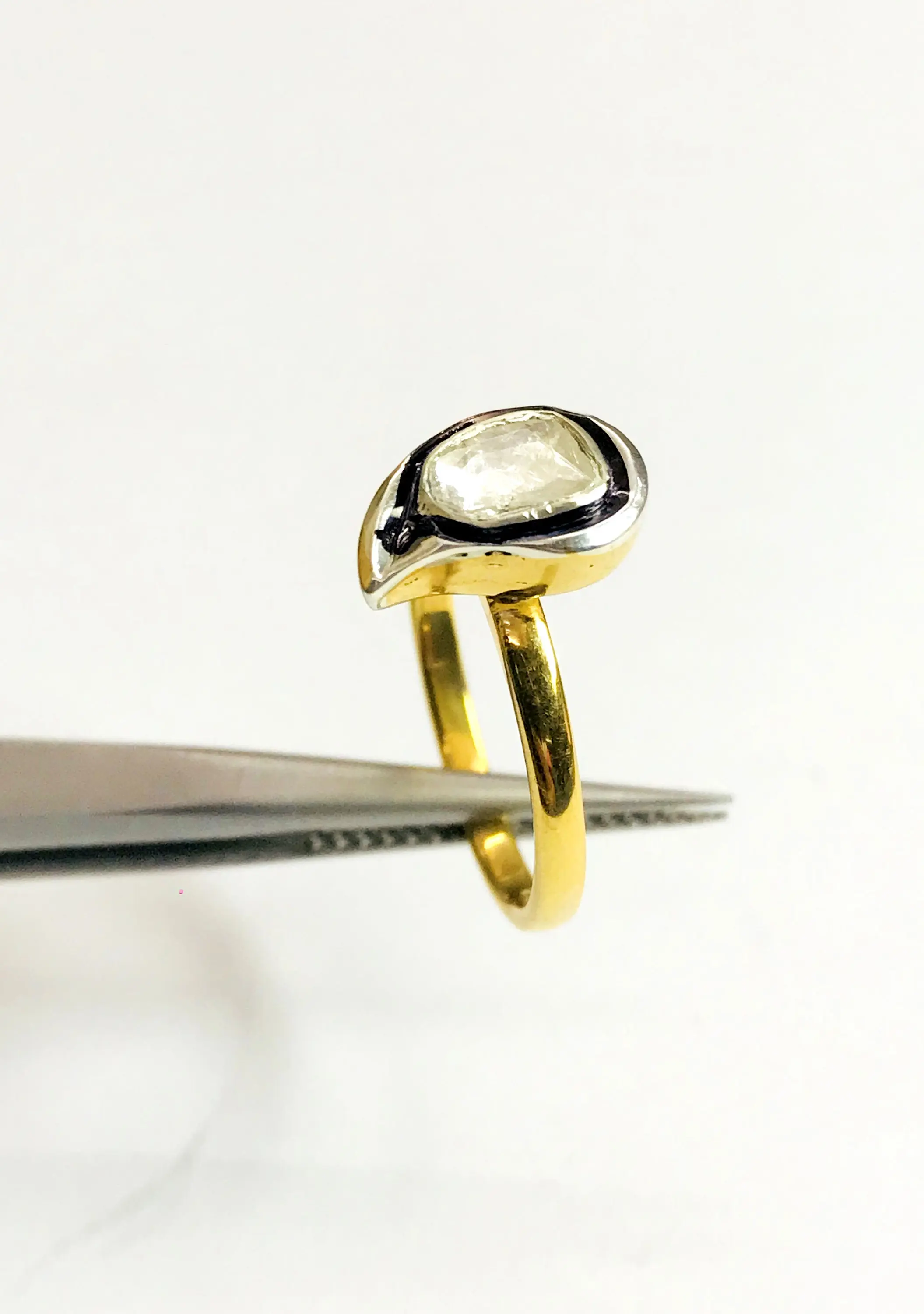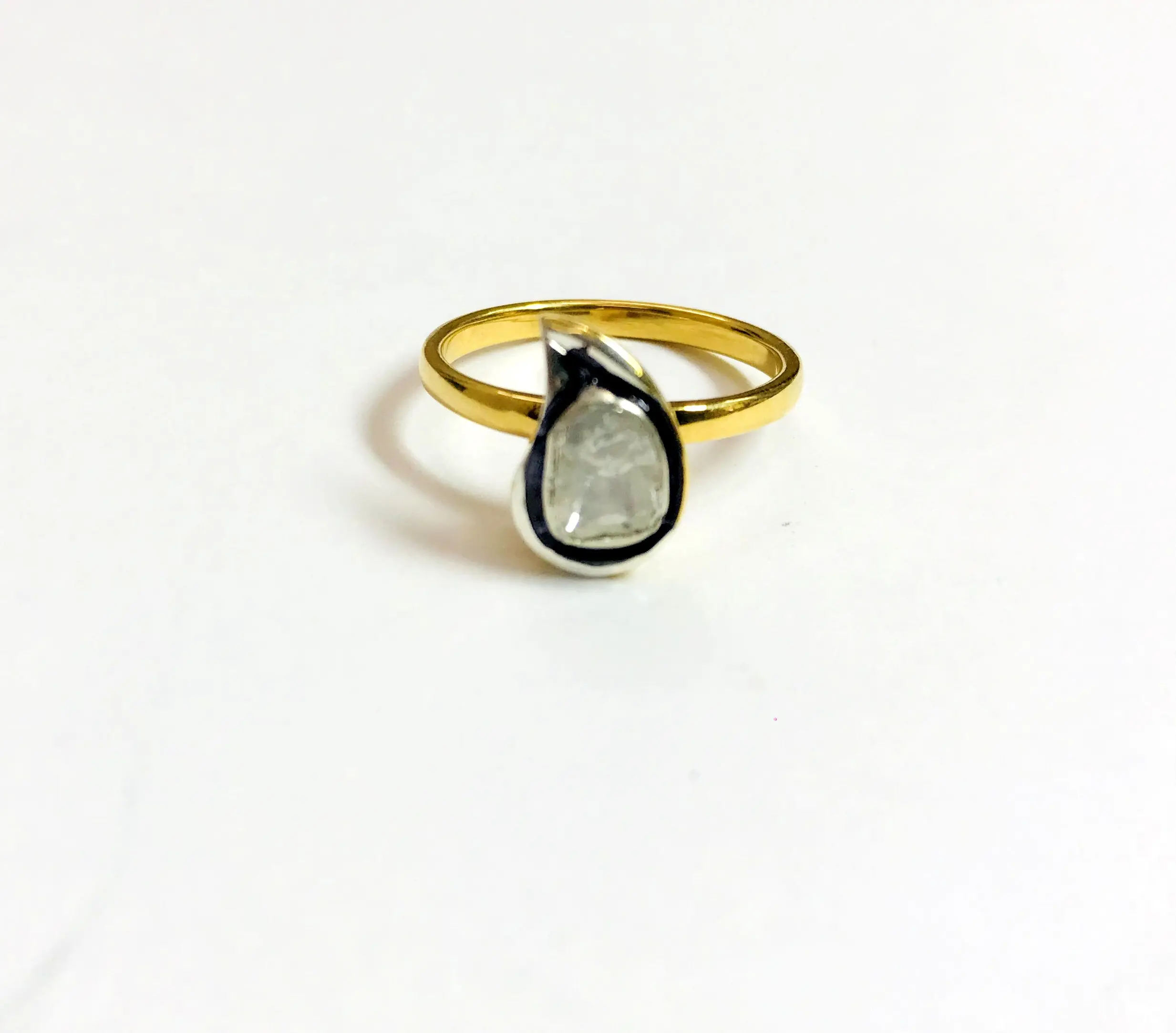 MANGO SHAPED ROSE CUT DIAMONDS 925 Sterling silver Ring , Hand Cut Diamond Engagement Ring , Solitaire Ring ,Best Wedding Band , April Birthstone......