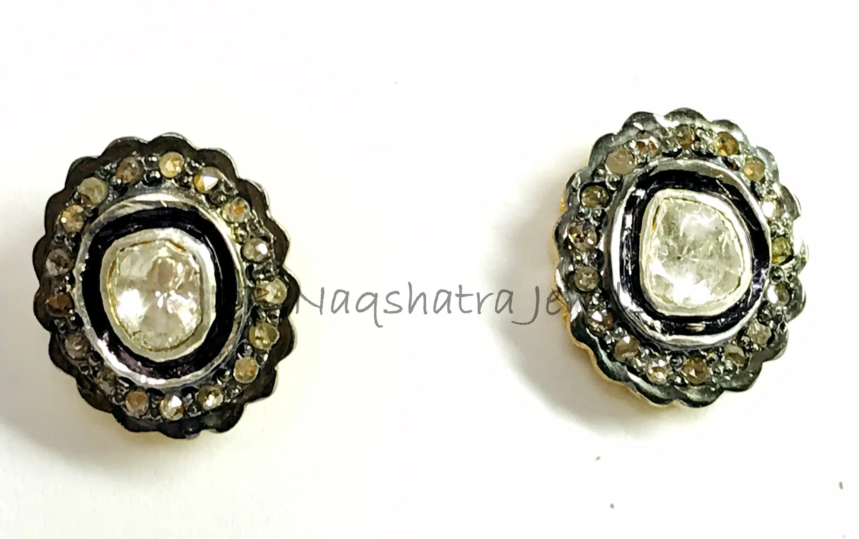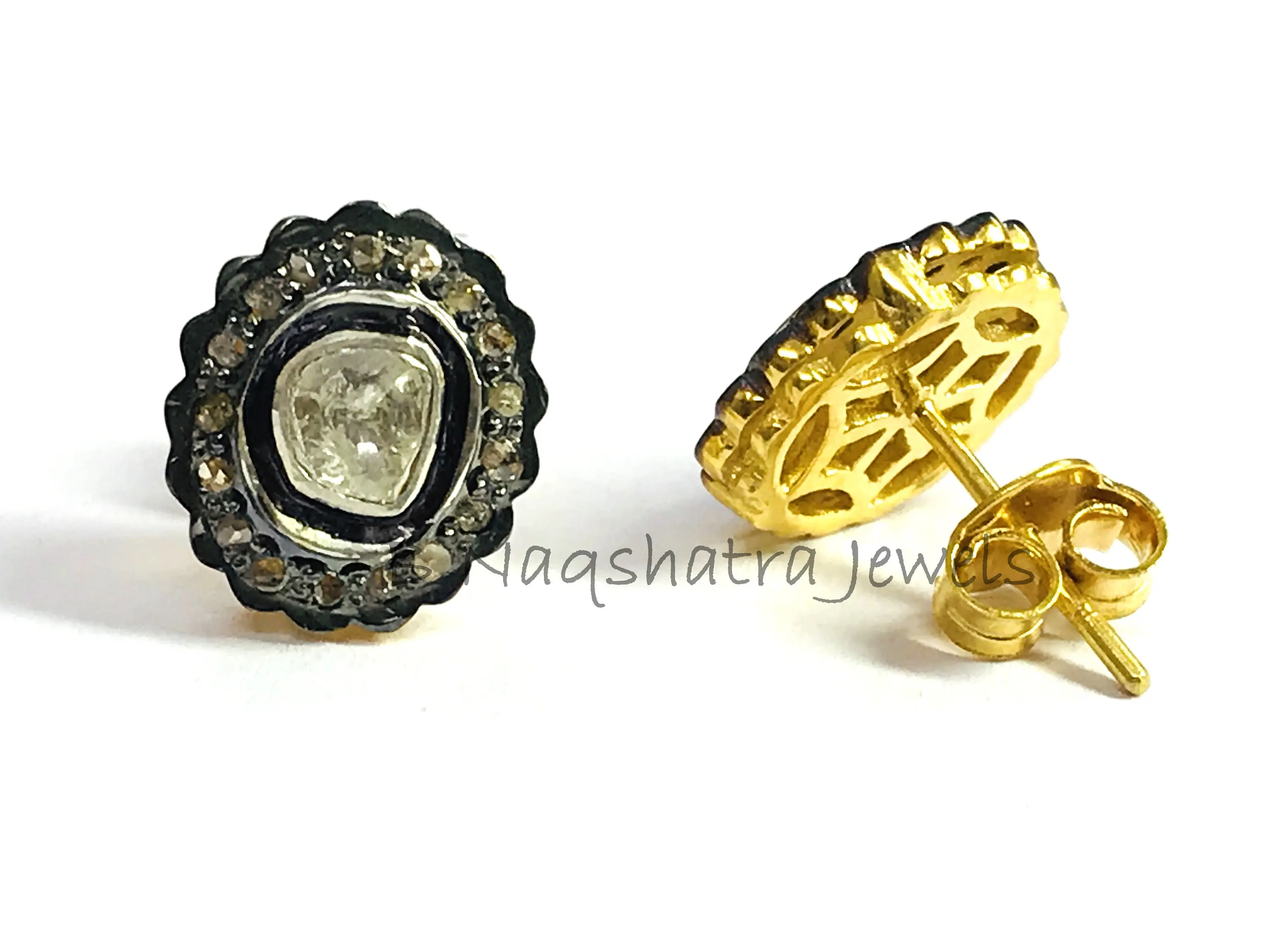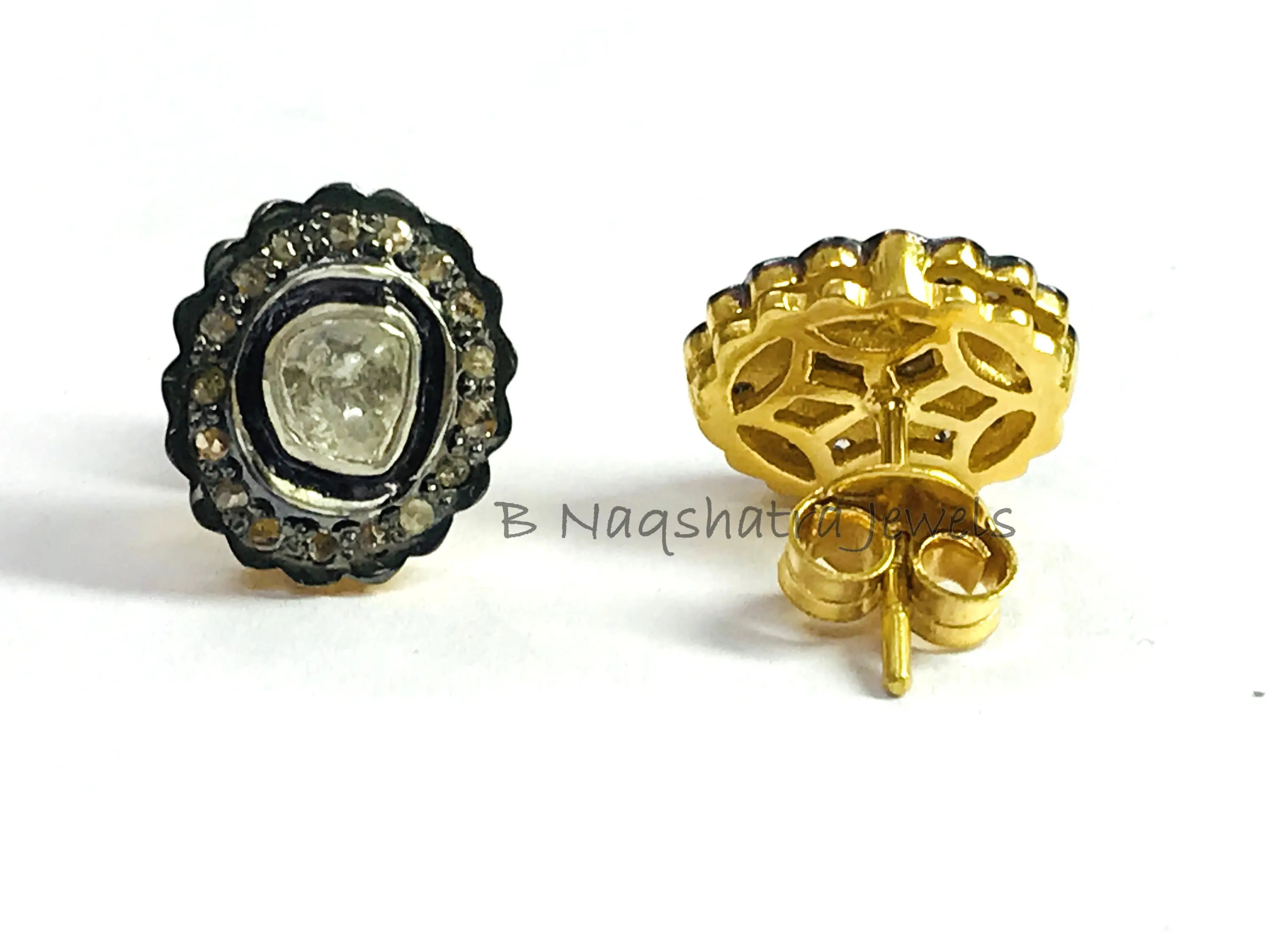 Fine Art , ROSE CUT DIAMONDS stud Earrings ,Handmade ,Polki Diamonds,Antique look , Valentine gift , Enhance your Beauty....