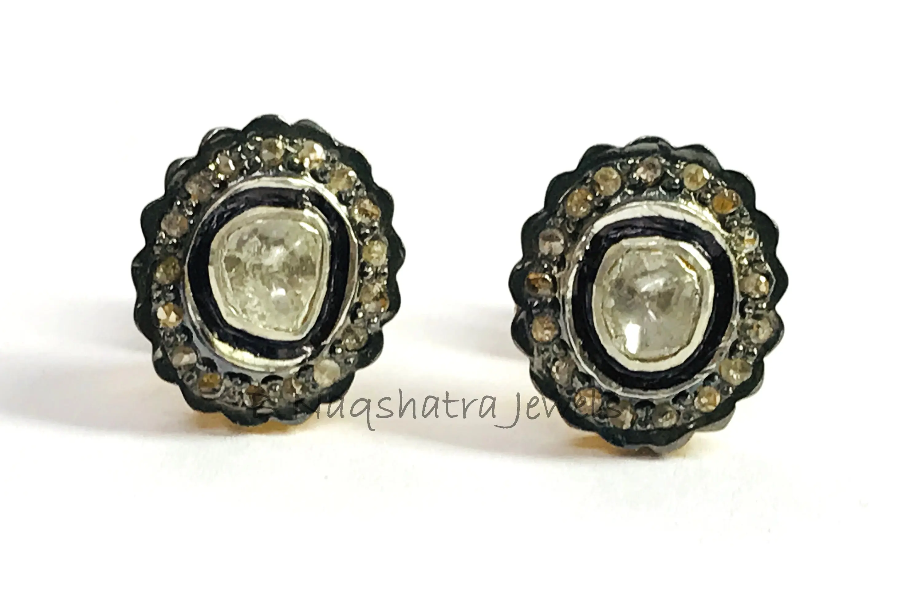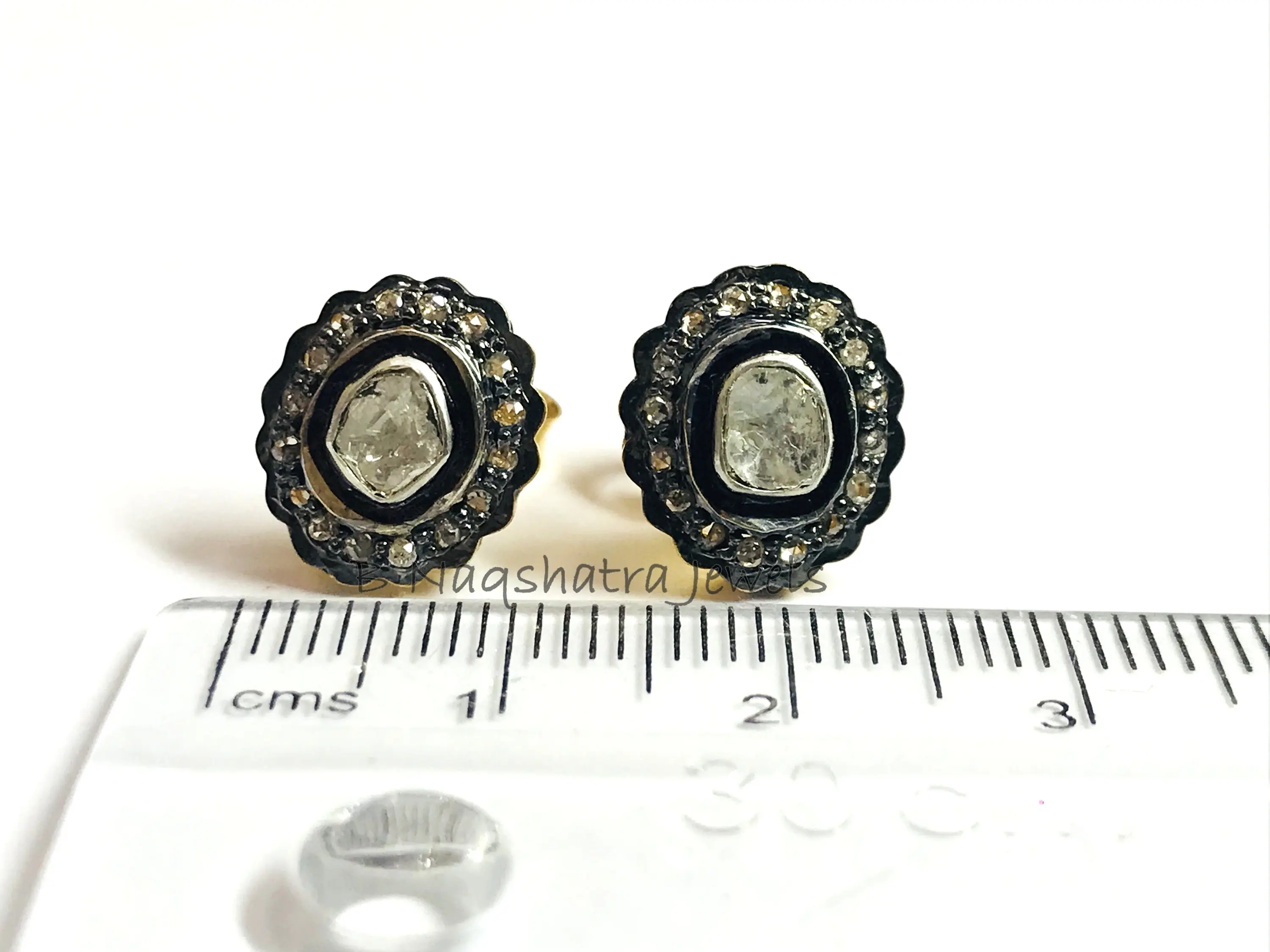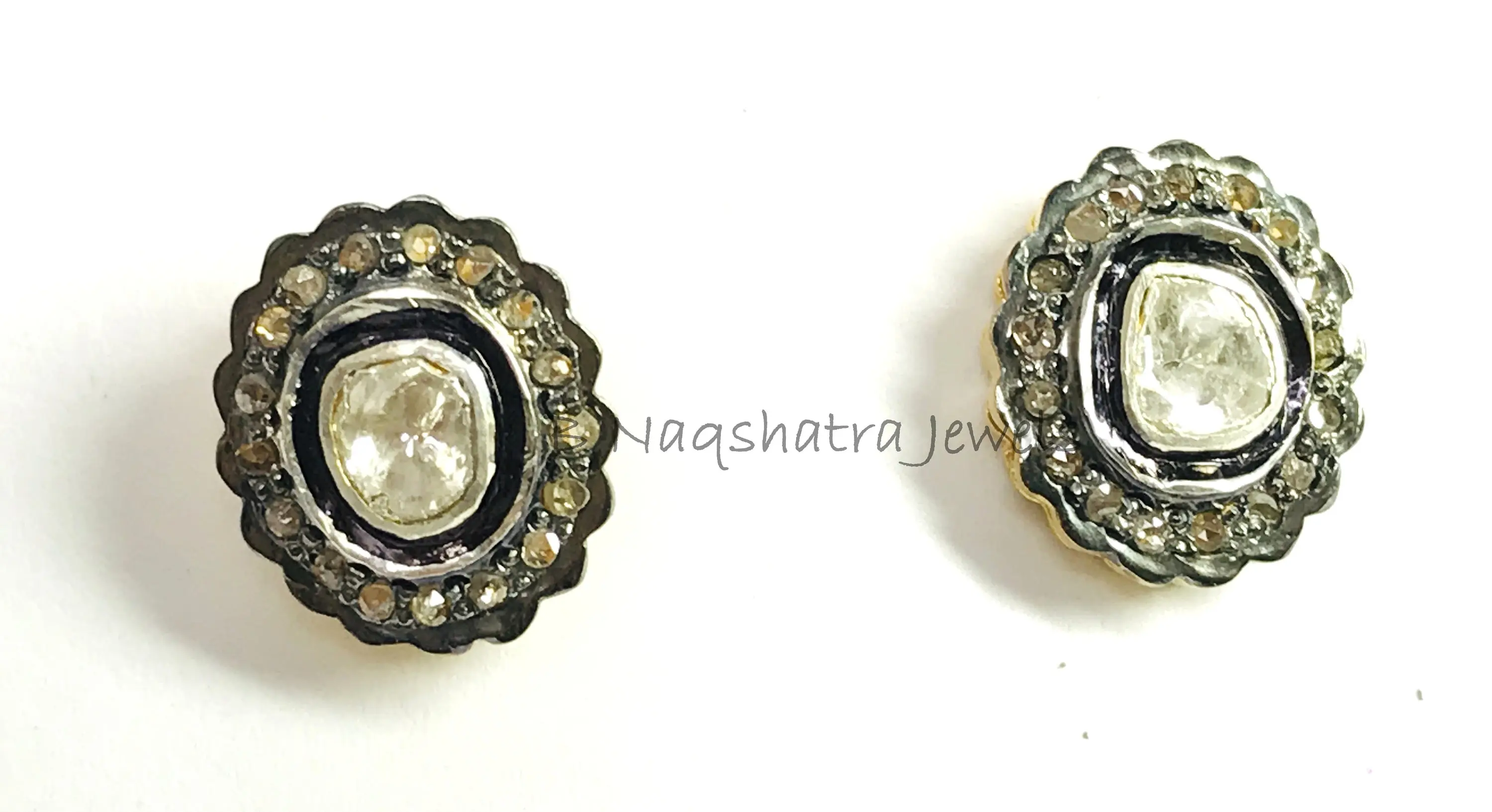 Fine Art , ROSE CUT DIAMONDS stud Earrings ,Handmade ,Polki Diamonds,Antique look , Valentine gift , Enhance your Beauty....