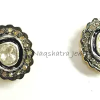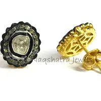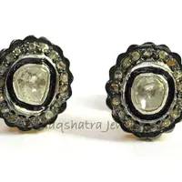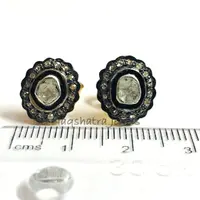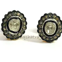 single solitaire hand cut diamond earring studded with 100% natural Rose cut diamonds in bezel and pave set......and black rhodium and gold plated plated......................