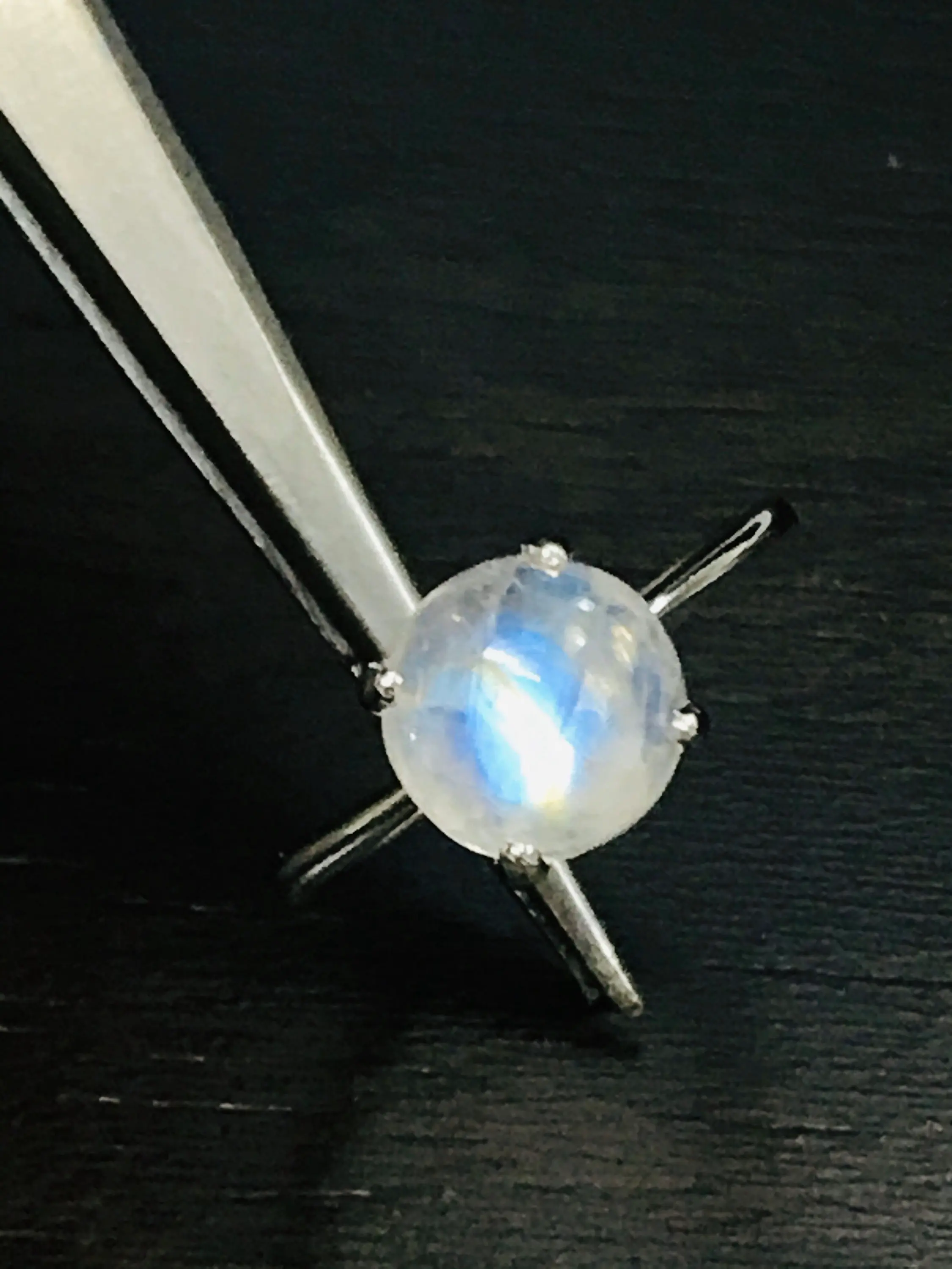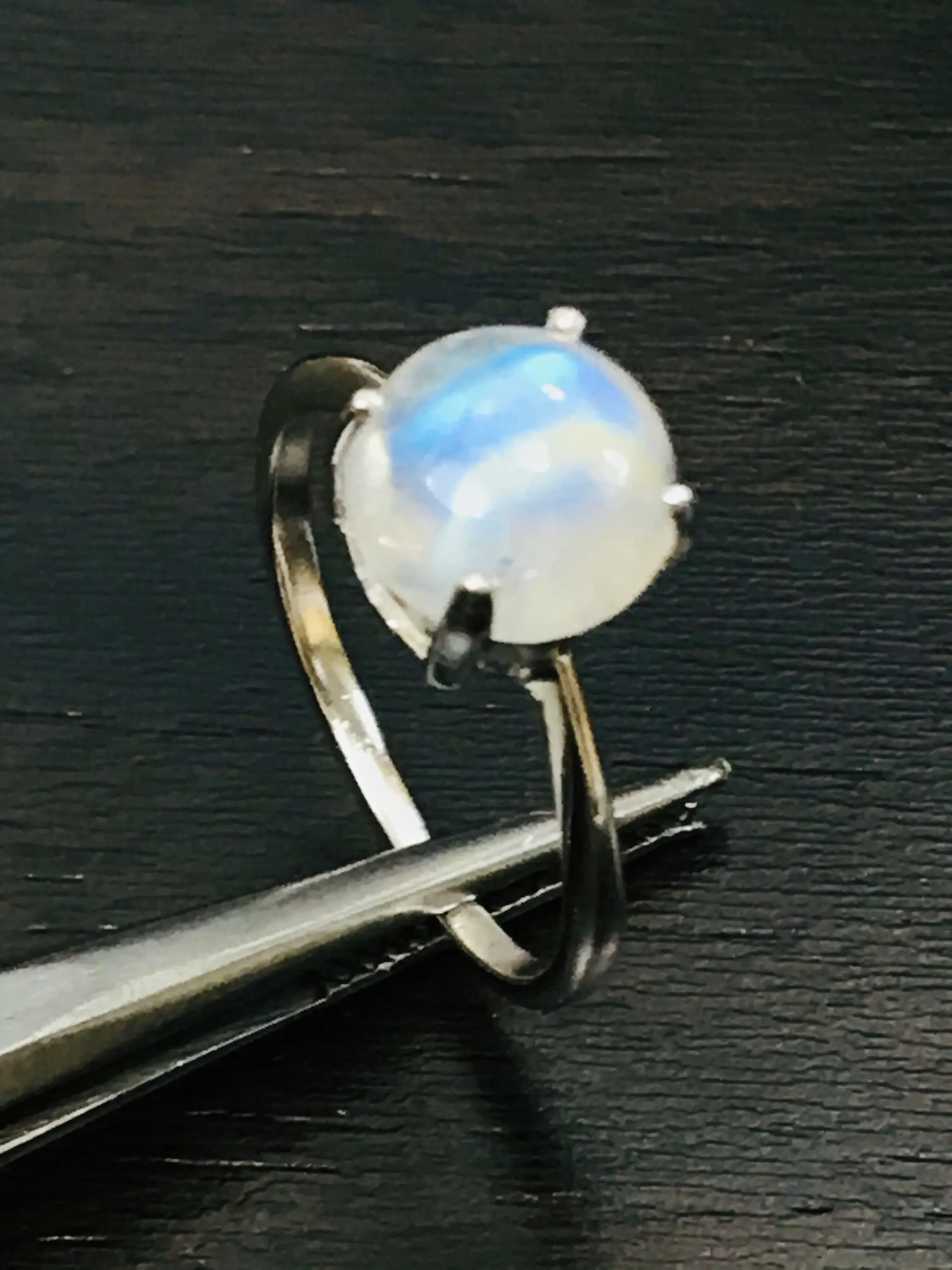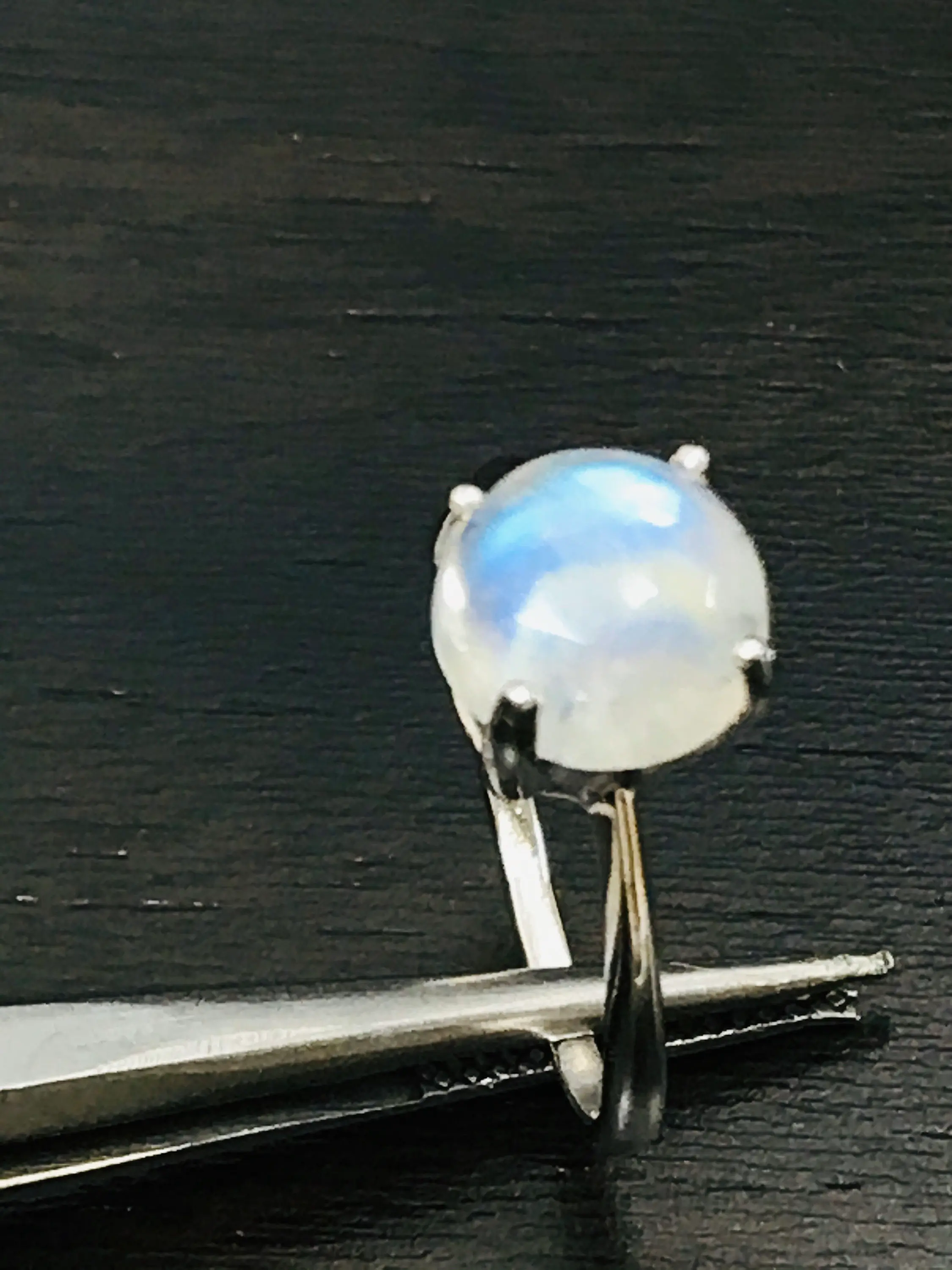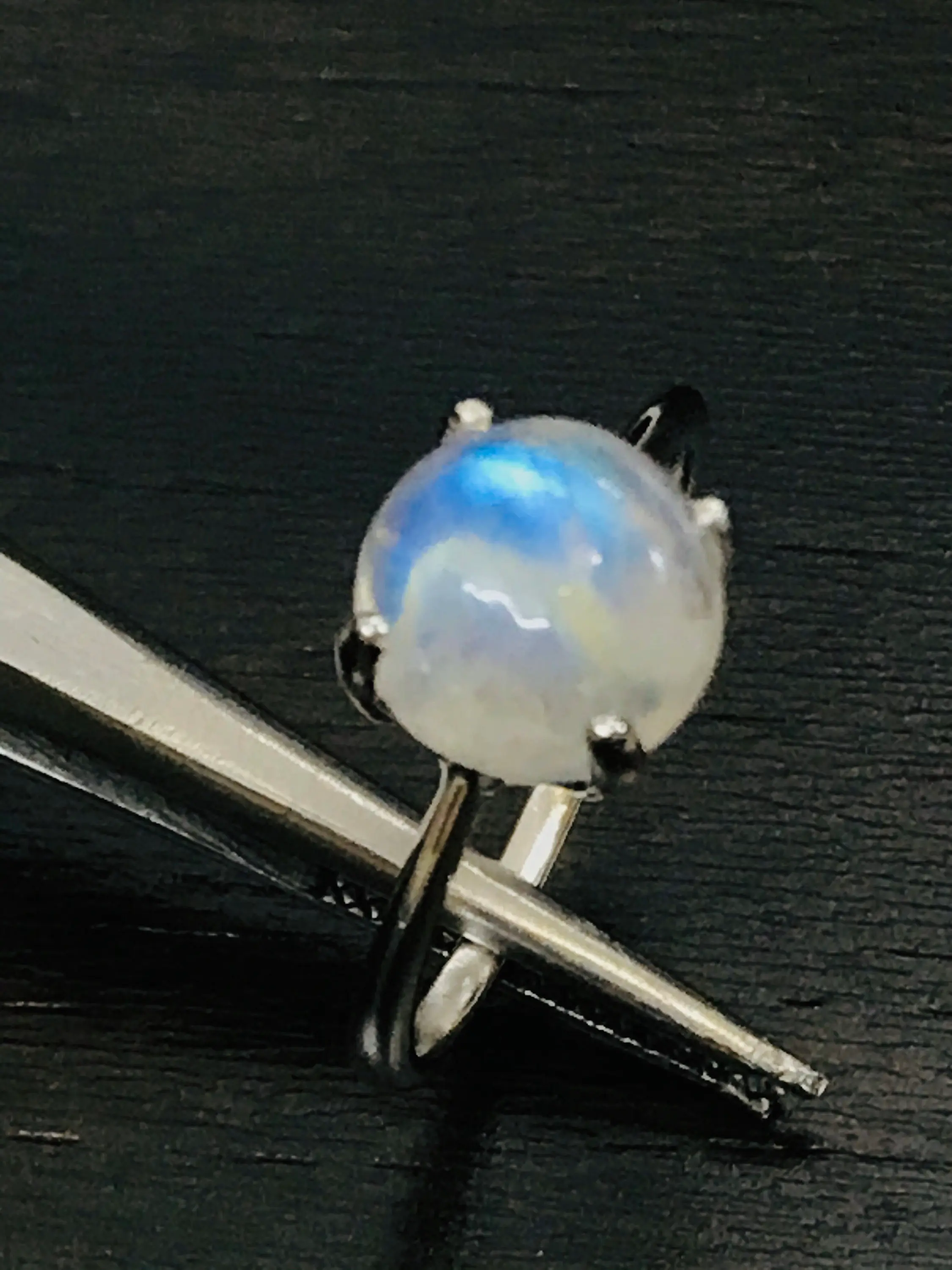 super fine quality of RAINBOW CABOCHON silver ring , perfect white color rainbow , 8 mm round , sterling silver rainbow ring ,