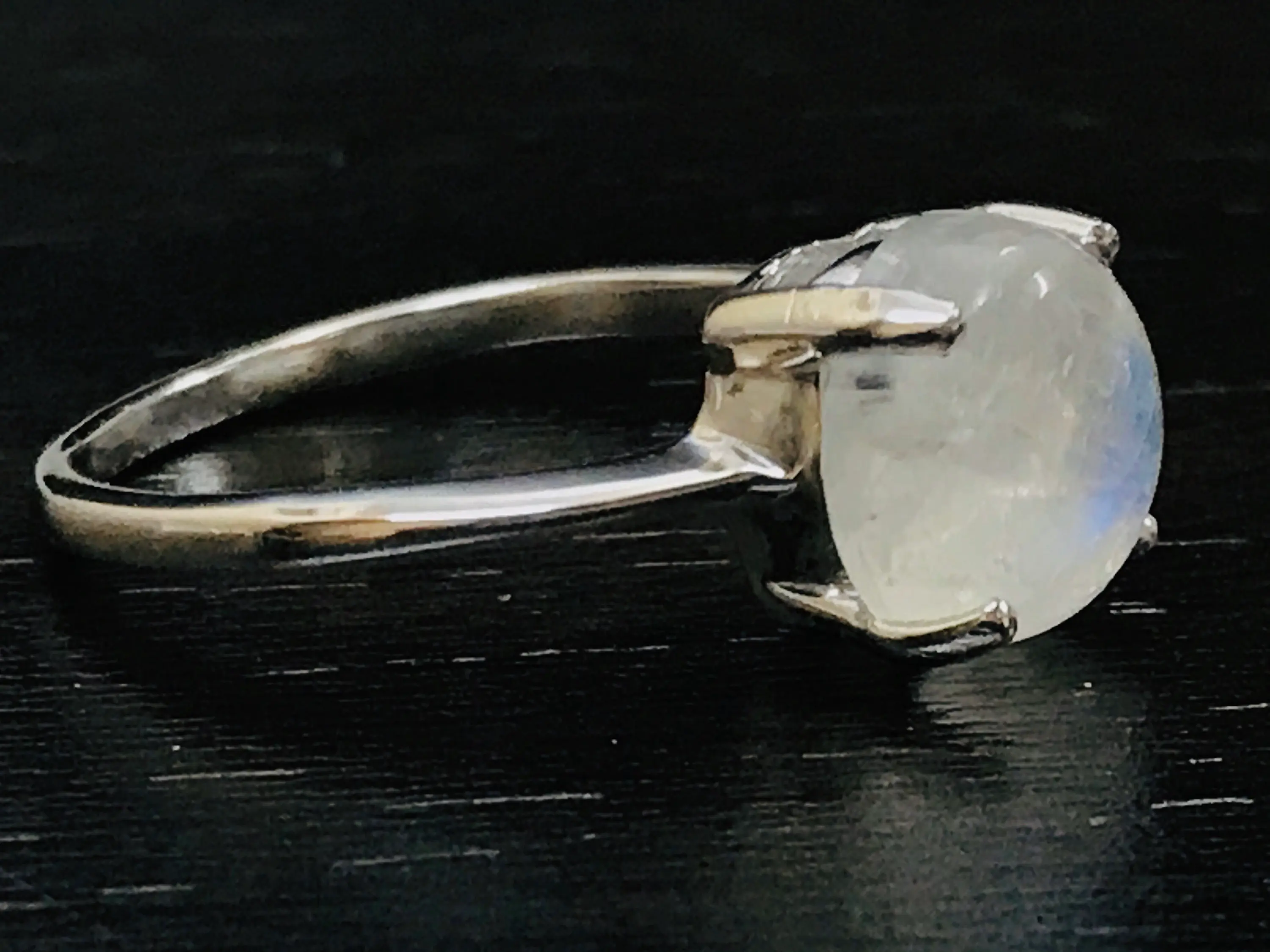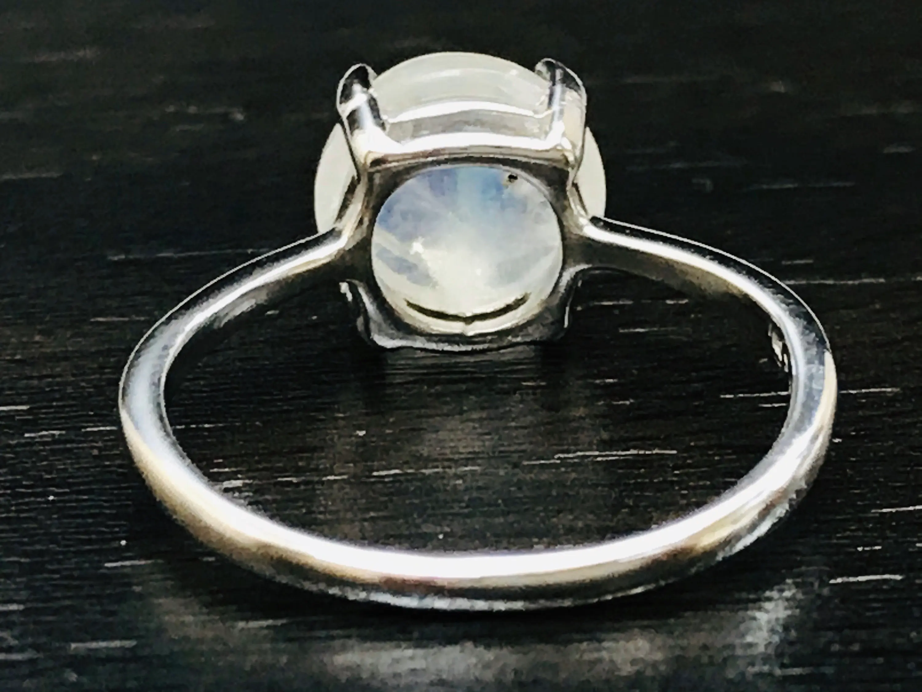 RAINBOW Moonstone CABOCHON silver ring , perfect white color rainbow , sterling silver rainbow ring , Gift for her