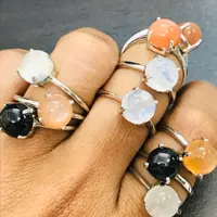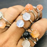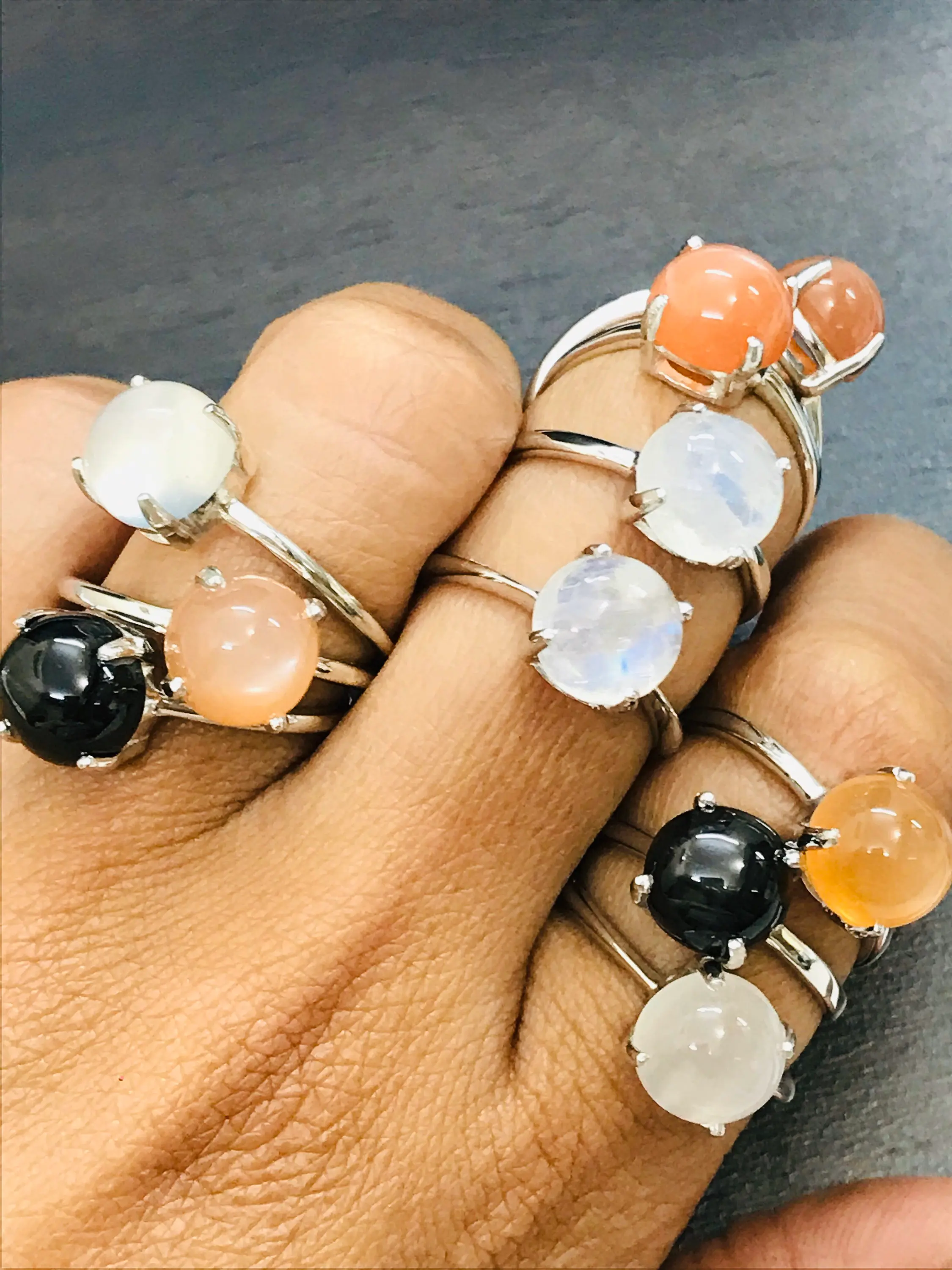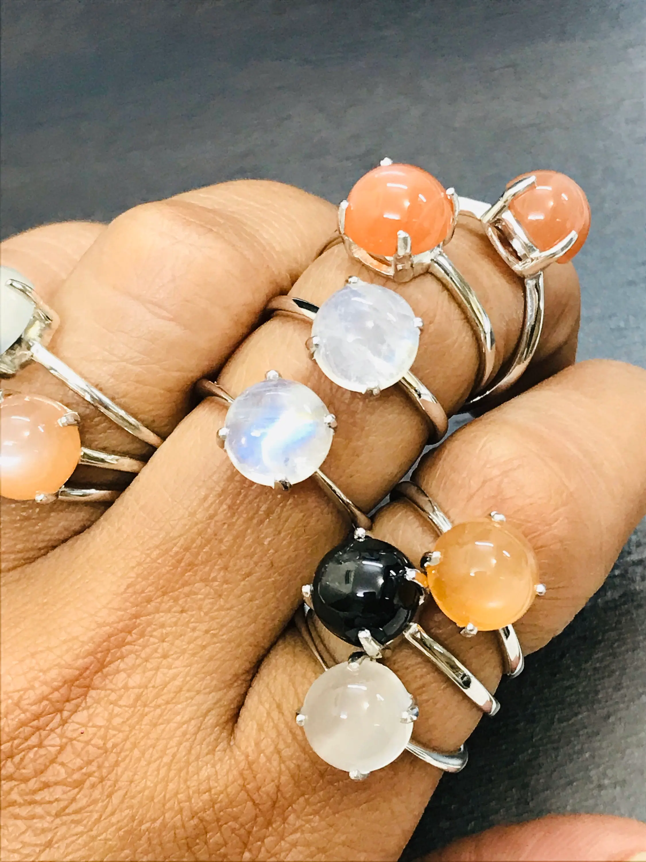92.5 sterling sliver with rhodium plated rings studded with semi - precious stone as white rainbow