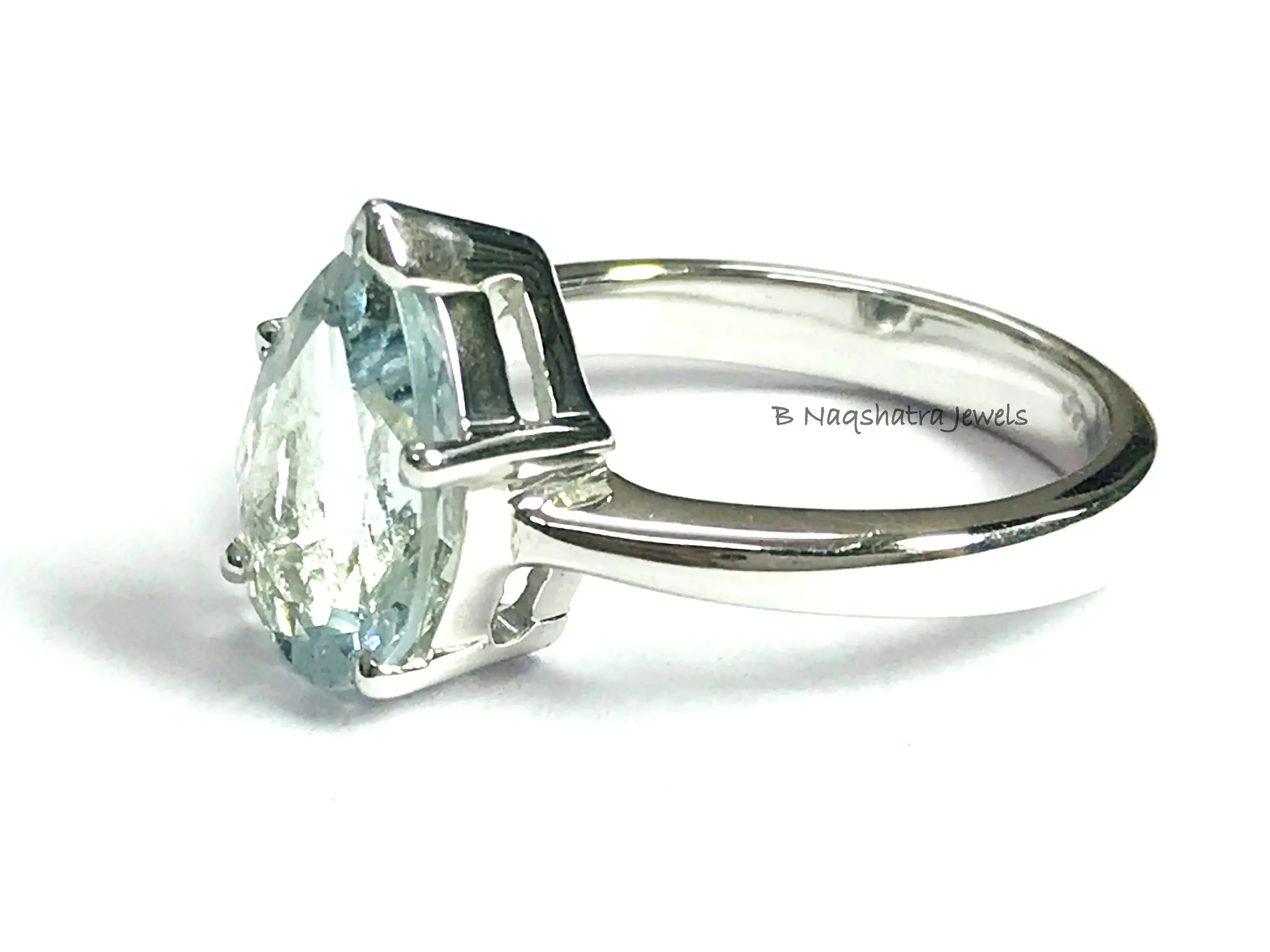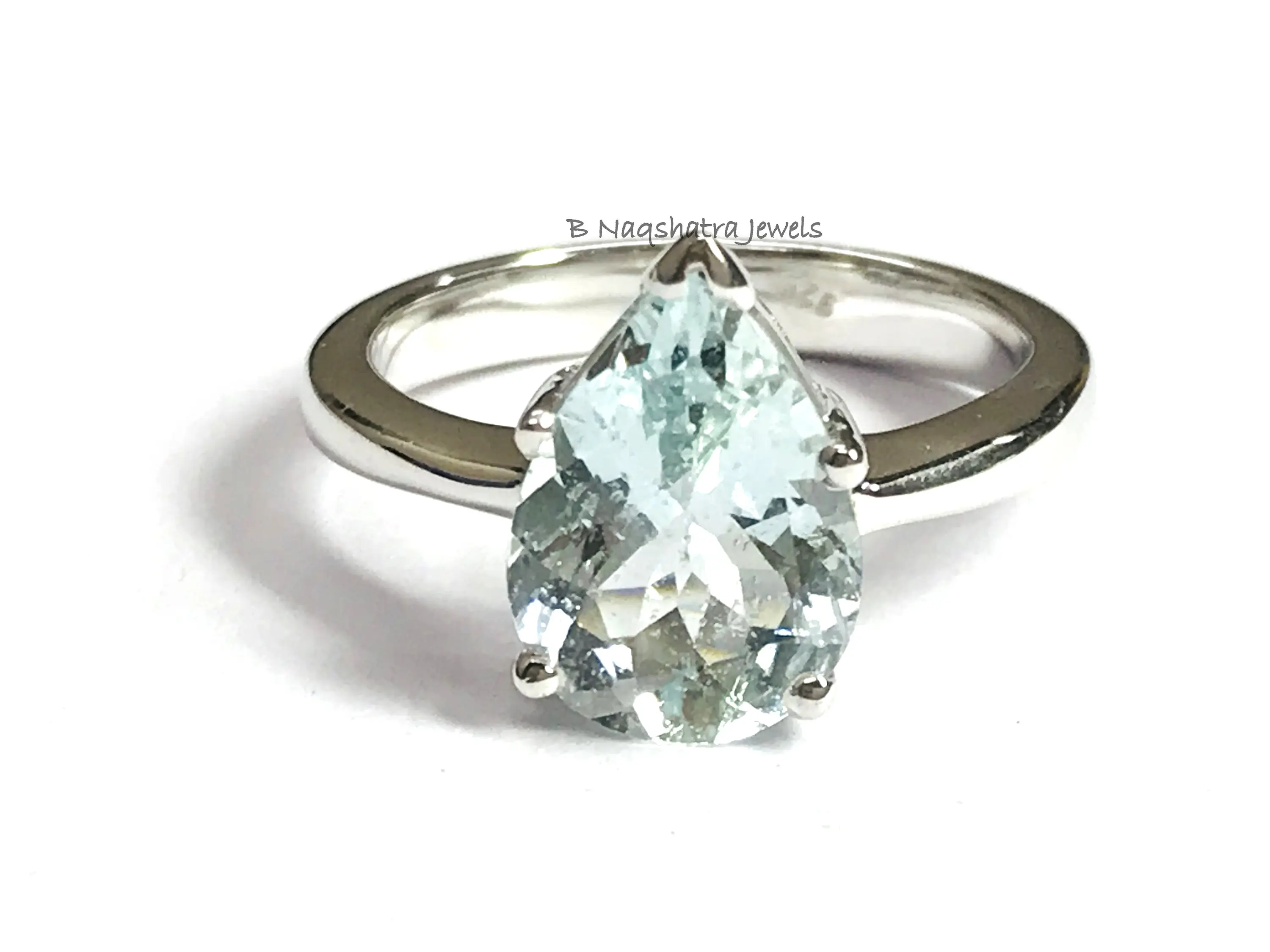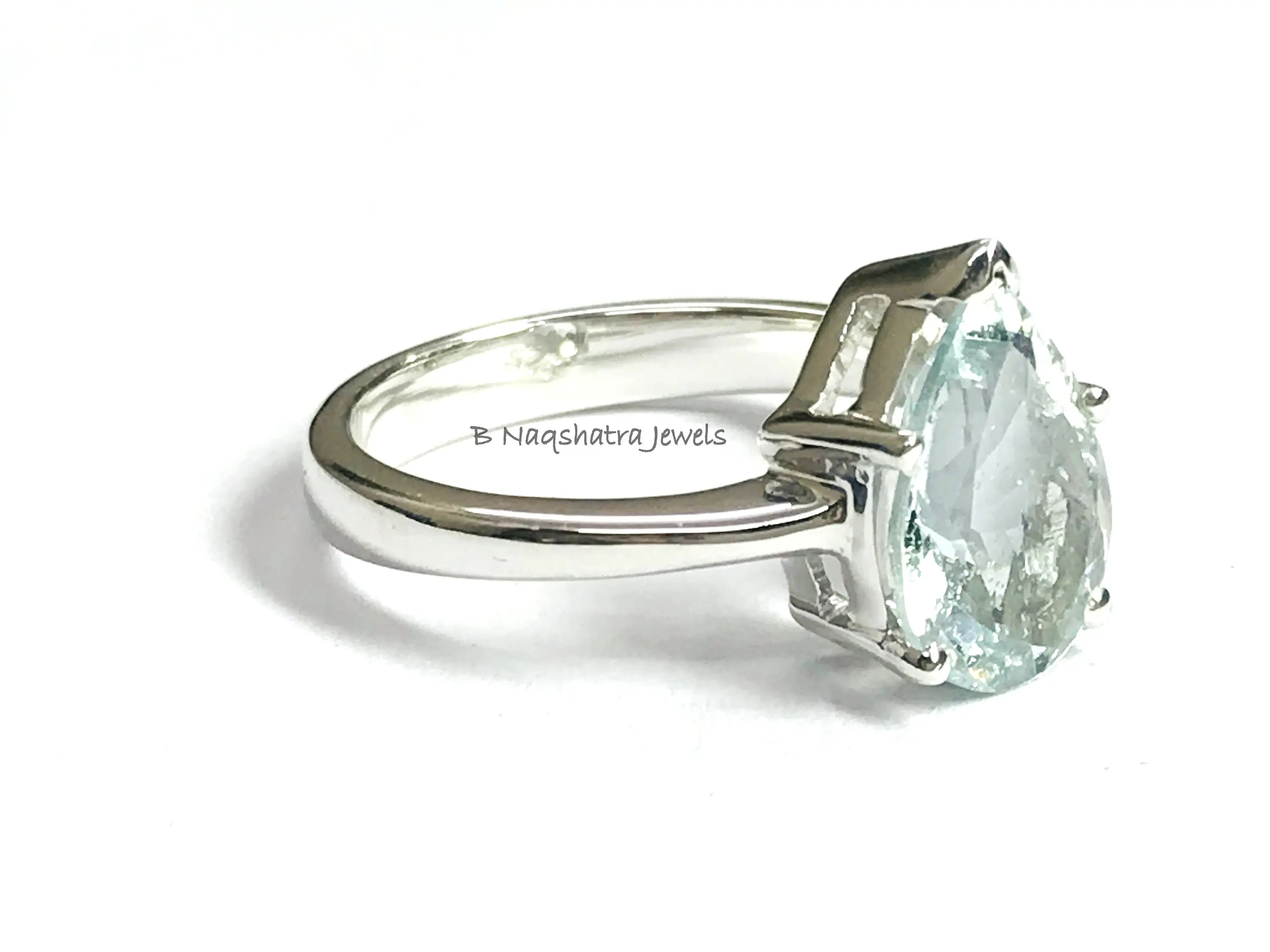 NATURAL AQUAMARINE Sterling Silver Ring ,March Birthstone,Valentine Gift,Promise Ring for Her,Lovely gift for Loved ones ..........