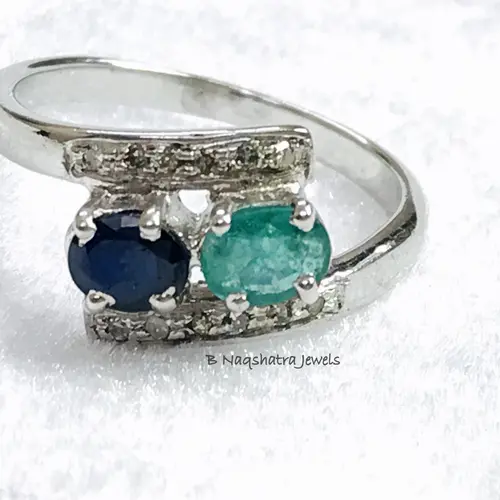 EMERALD SAPPHIRE DIAMONDS Ring ,Bypass style, Promise ring for her,Engagement ring ,oval shape,Gift for her